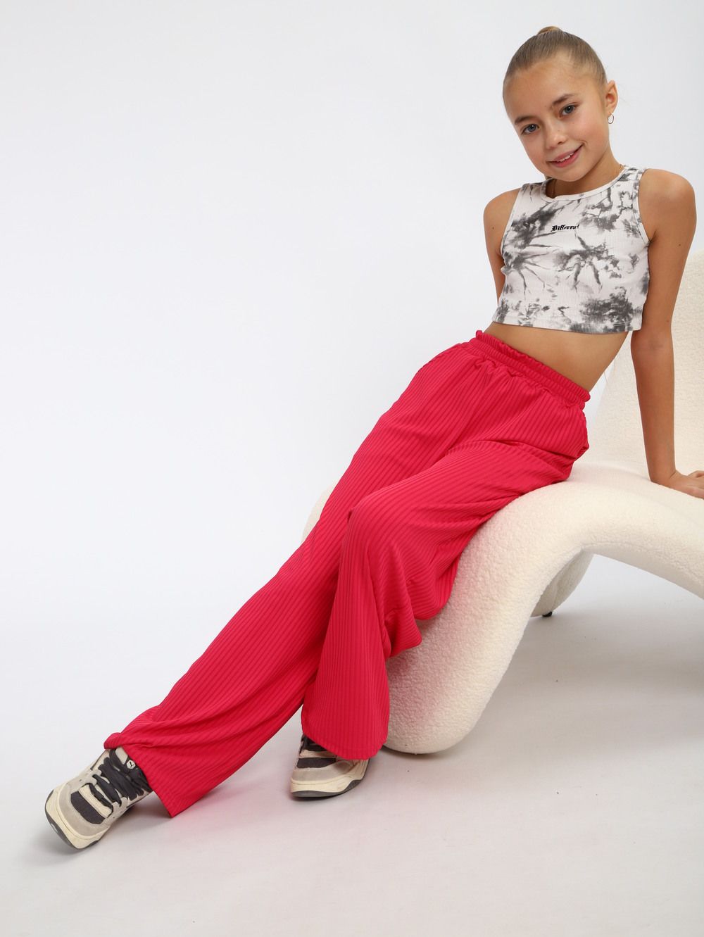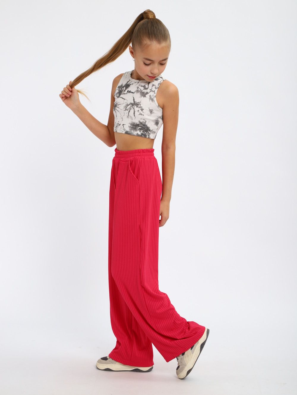 Легкие трикотажные штаны будут активно использоваться в летний, весенний и осенний период. Под такой низ не составит труда подобрать подходящую блузку, рубашку, футболку или кофту. Уместна как классика, так и как популярная трендовая одежда, вещи в спортивном стиле. Расклешенные внизу брюки с удобной посадкой сшиты из мягкого трикотажа. В составе материала вискоза и полиэстер. Штаны оснащены боковыми вместительными карманами, резинкой на поясе, станут отличным решением для отдыха дома и дачи, танцев, фотосессии, туристического похода, повседневной носки, школу и на улицу. Модель свободного кроя всегда будет в моде идеальна на каждый день весной и осенью. При желании брючки для девочки можно укоротить и носить как кюлоты.