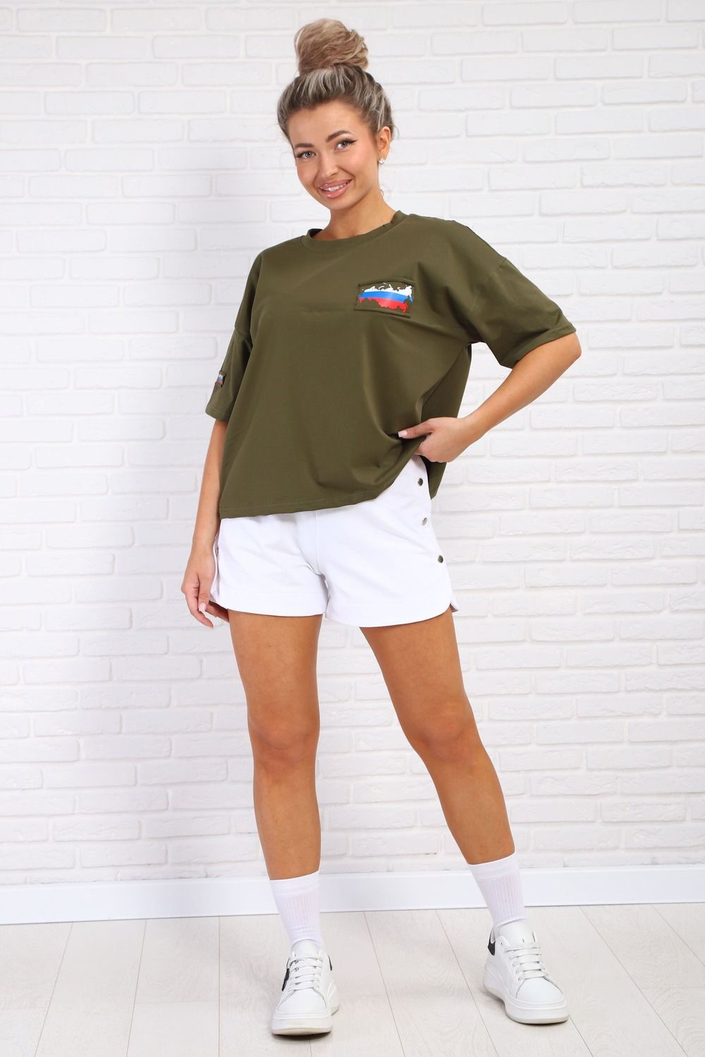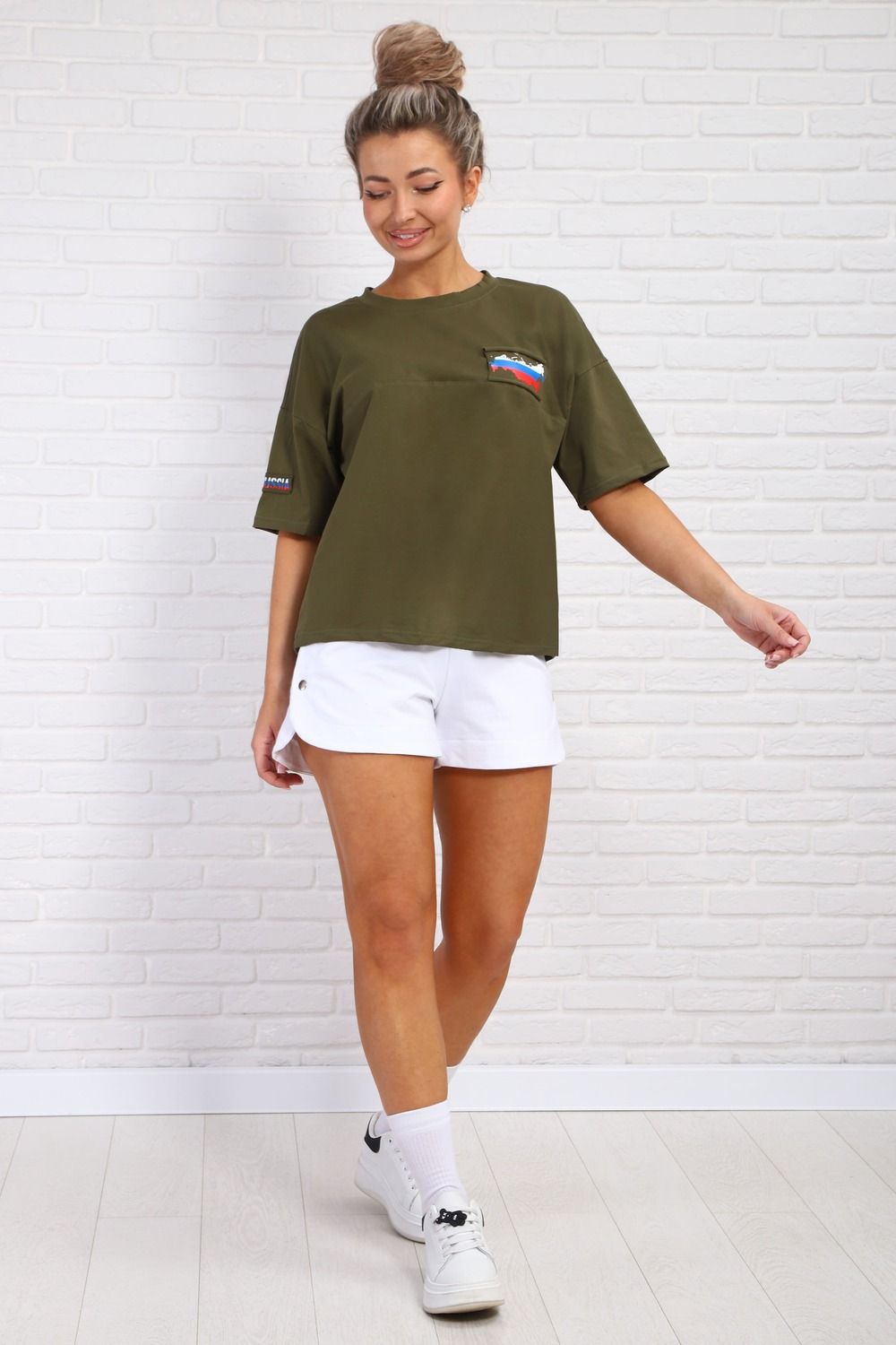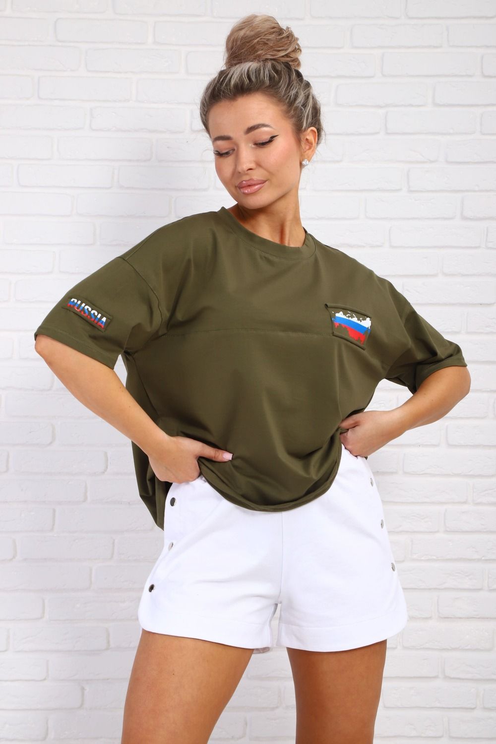 Футболка женская , спортивного кроя, свободного прилегания. С печатью военно-патриотической темы. Все швы усилены дополнительной строчкой .