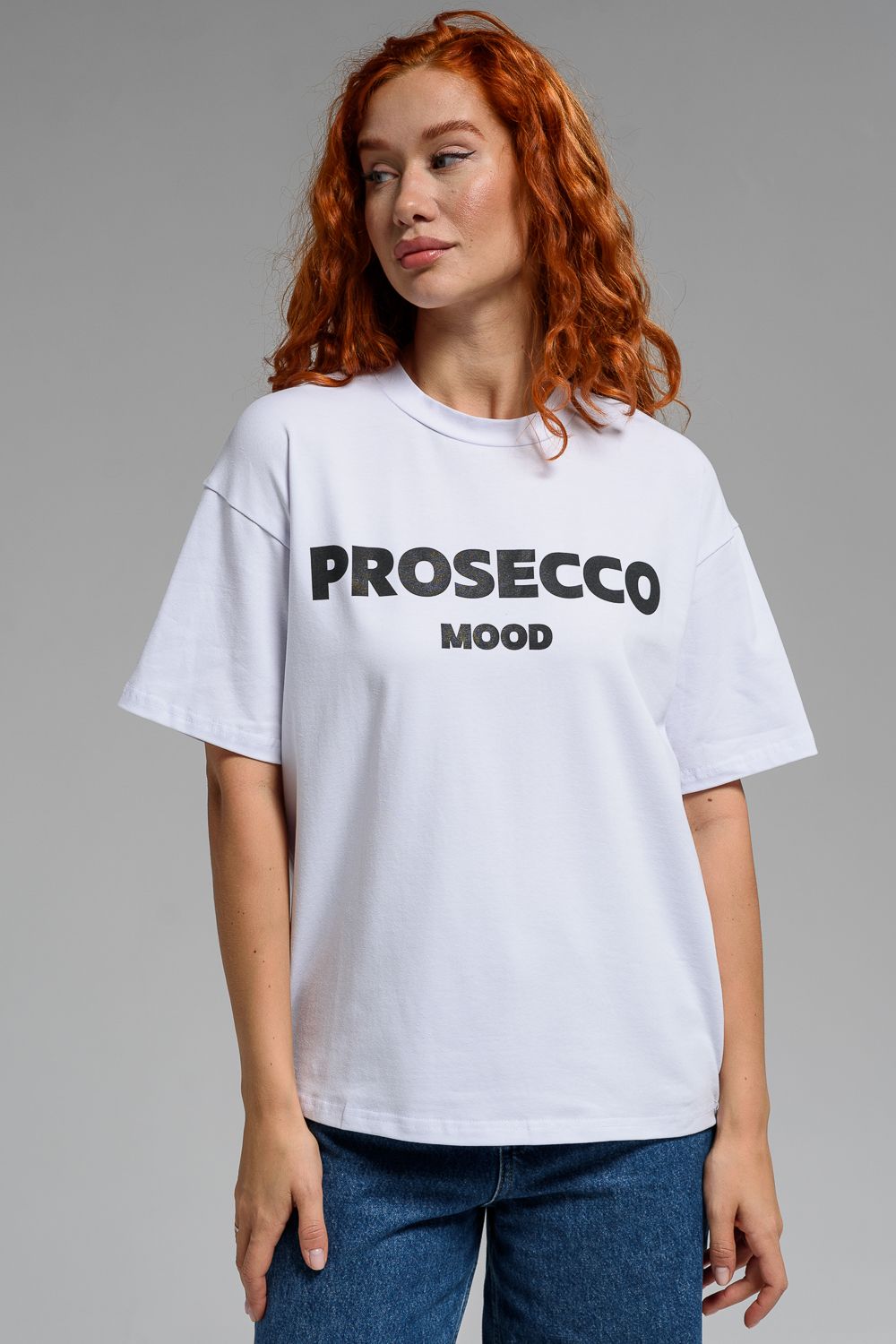 8506/1 Футболка женская оверсайз - белый+PROSECCO