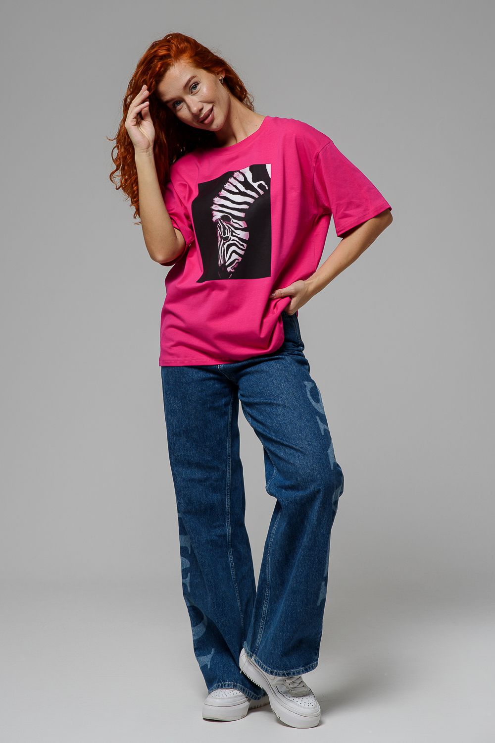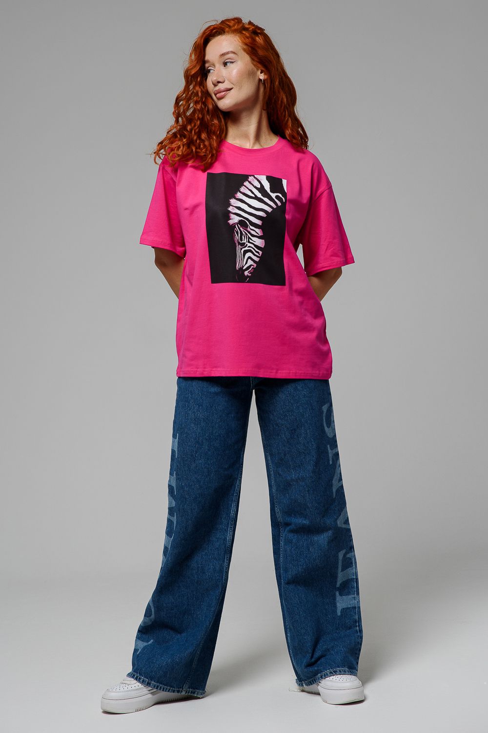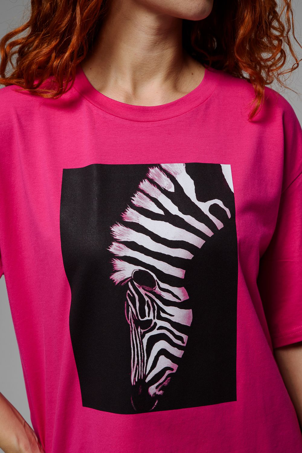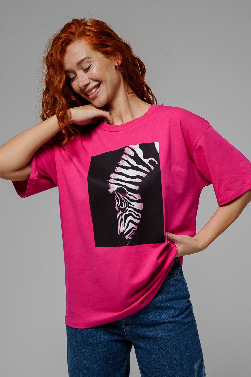 8506/1 Футболка женская оверсайз - фуксия+Зебра