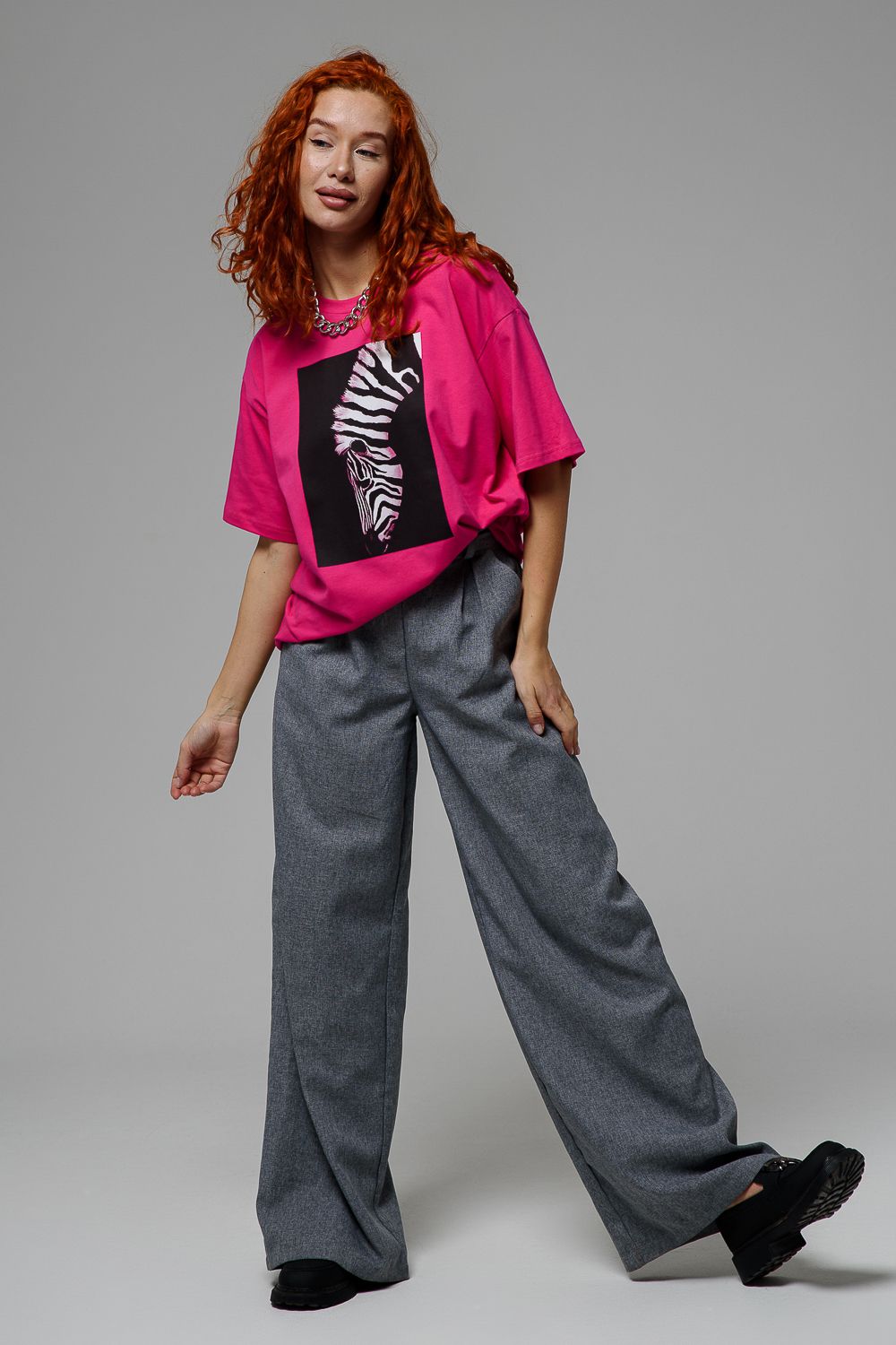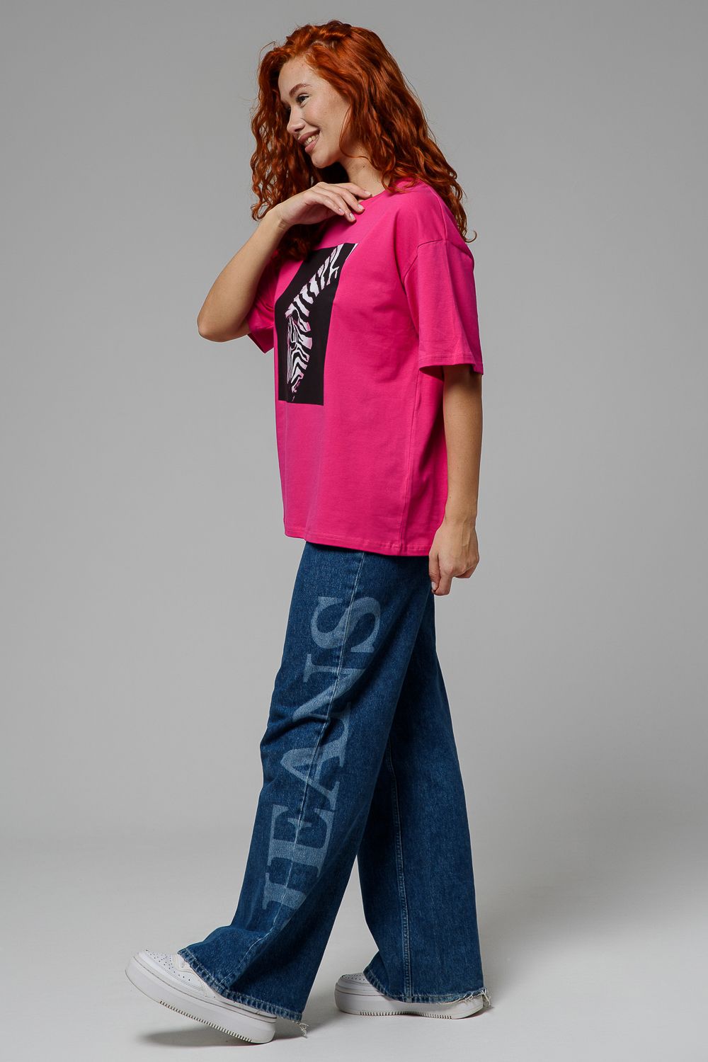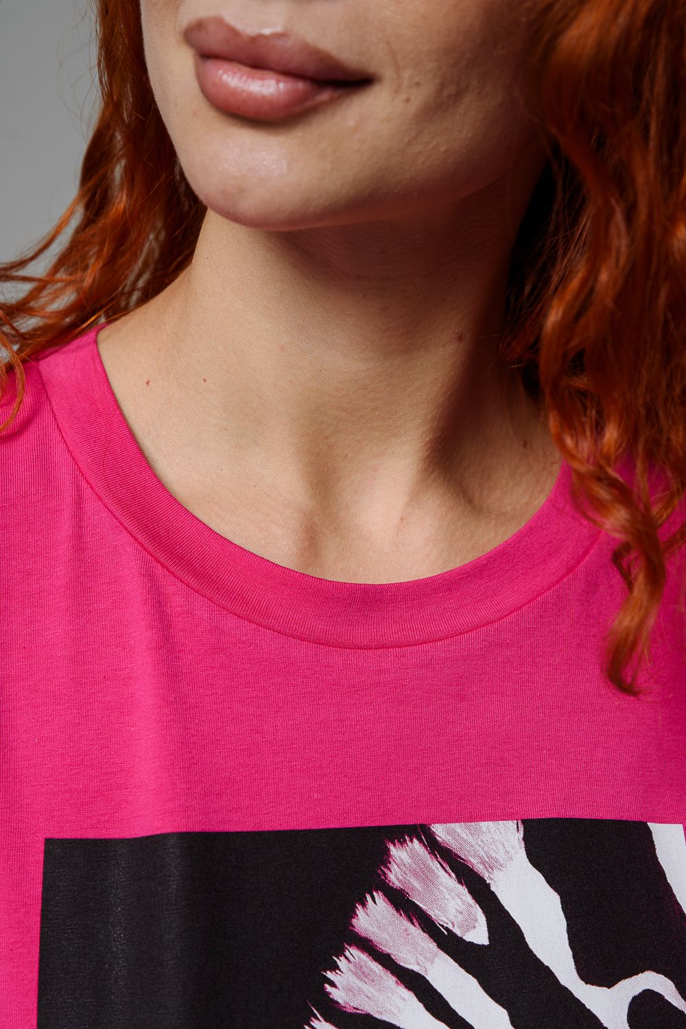 8506/1 Футболка женская оверсайз - фуксия+Зебра