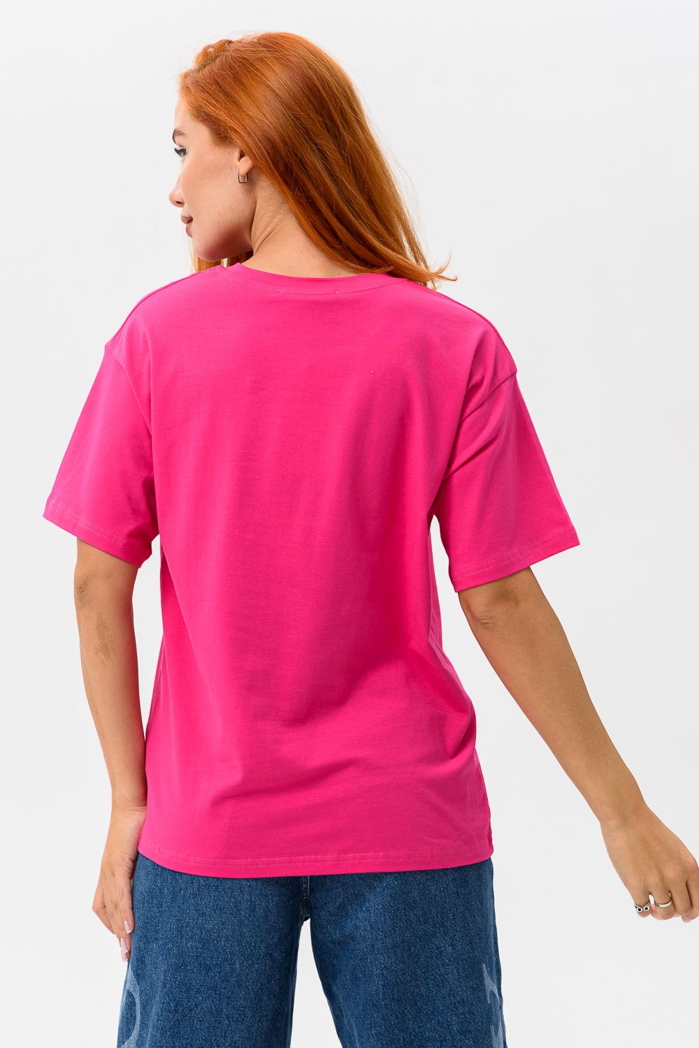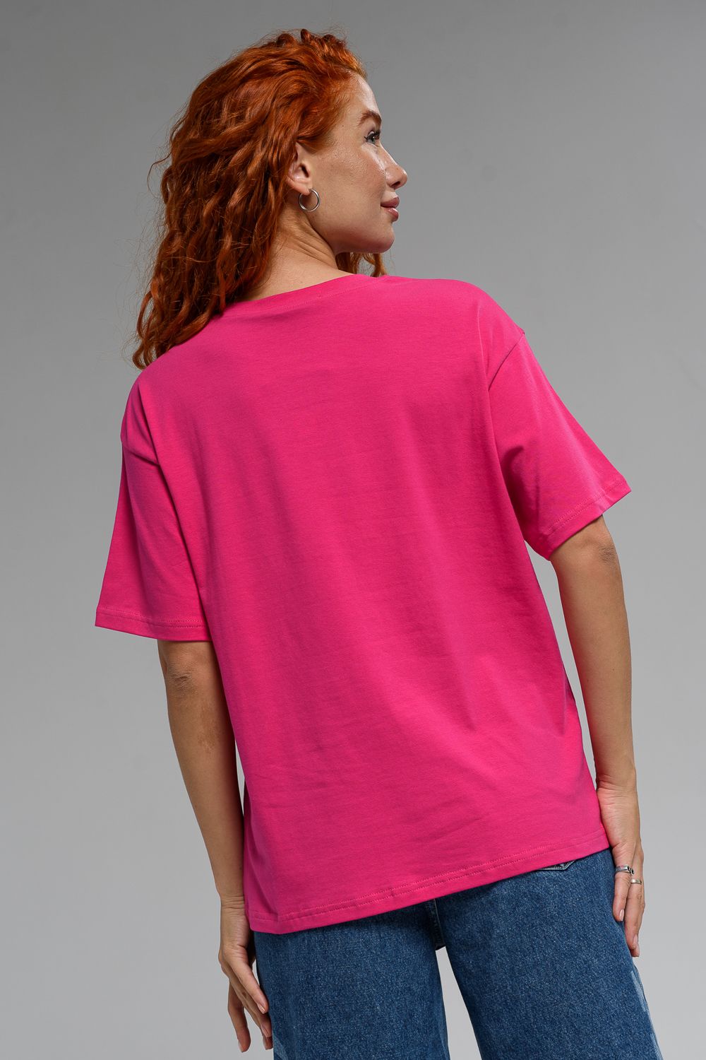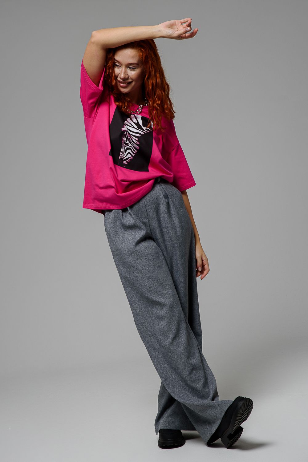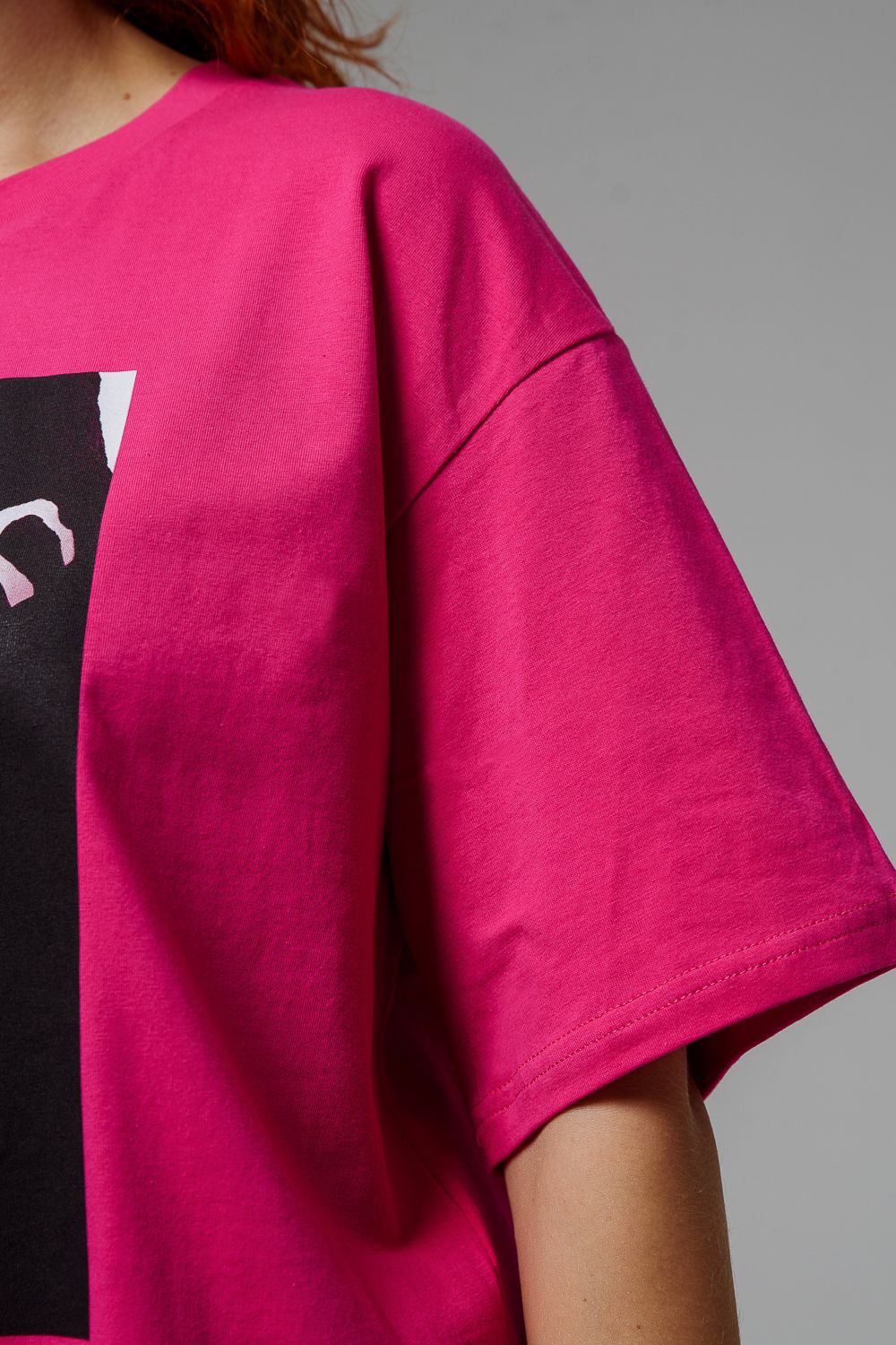 8506/1 Футболка женская оверсайз - фуксия+Зебра