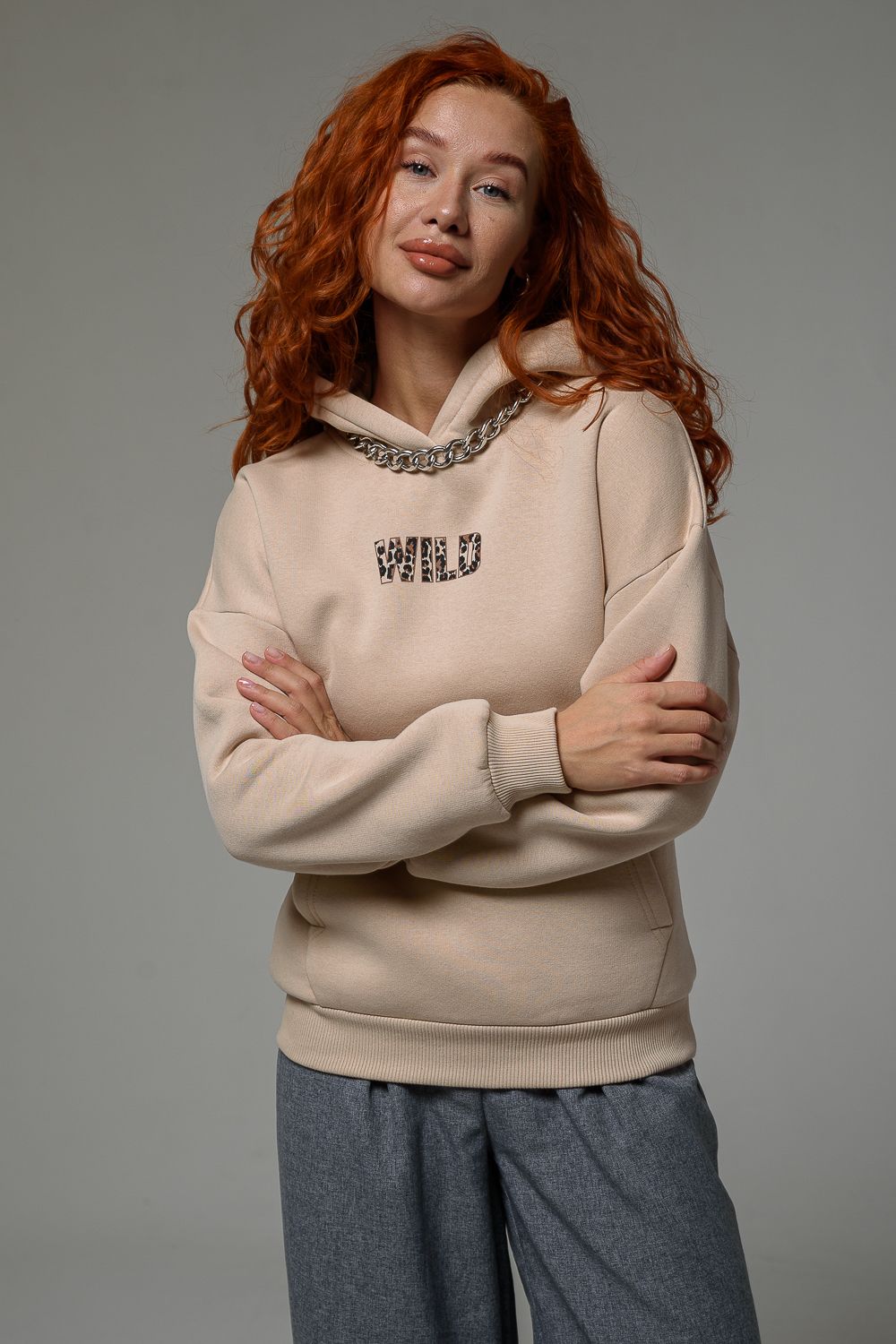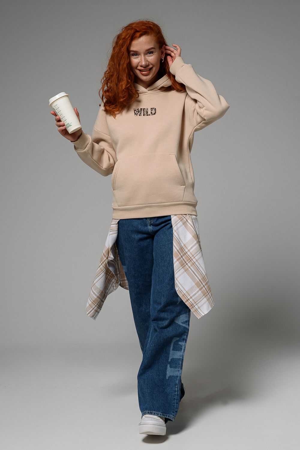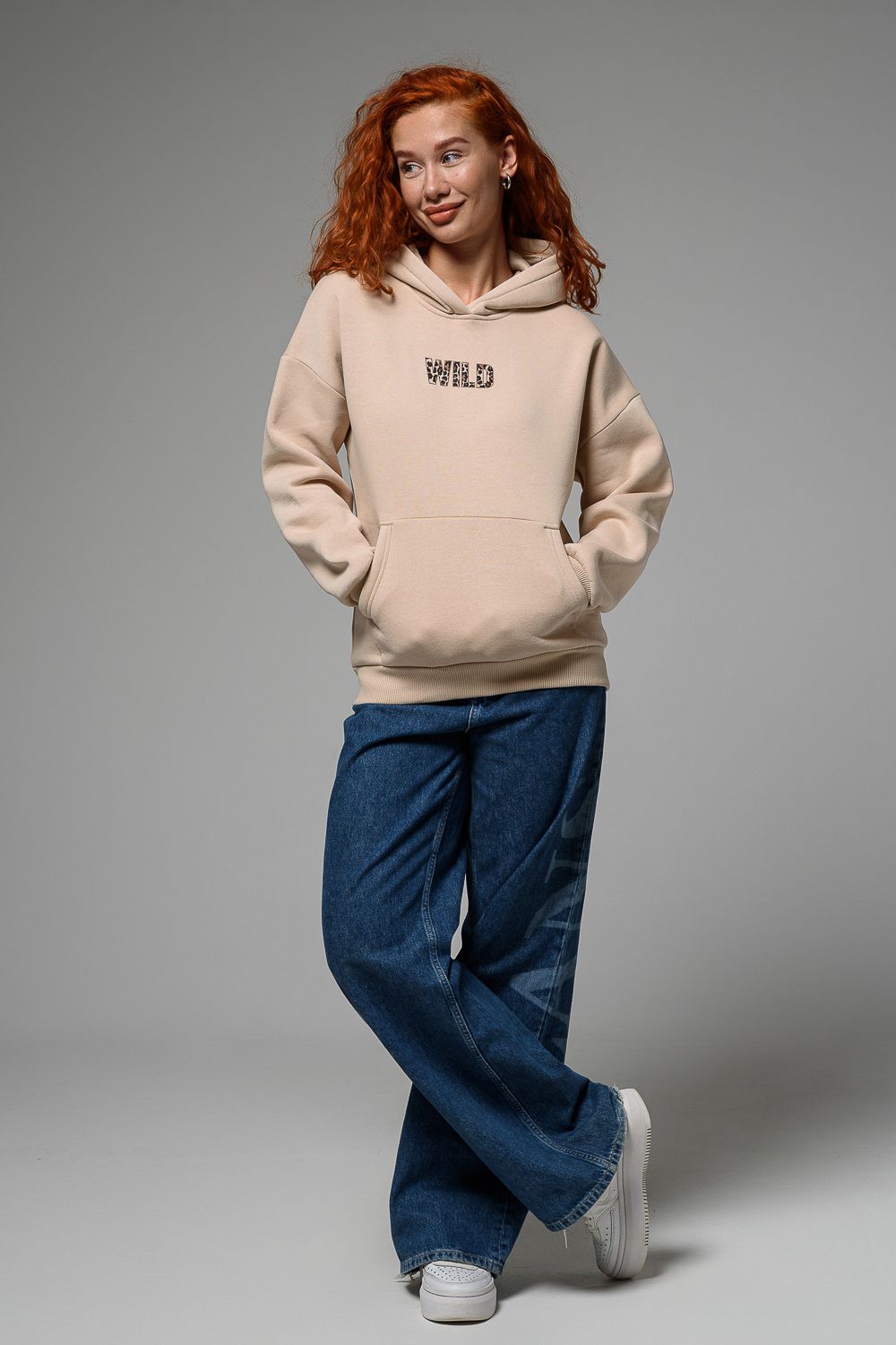 8518 Толстовка женская оверсайз - бежевый+Wild