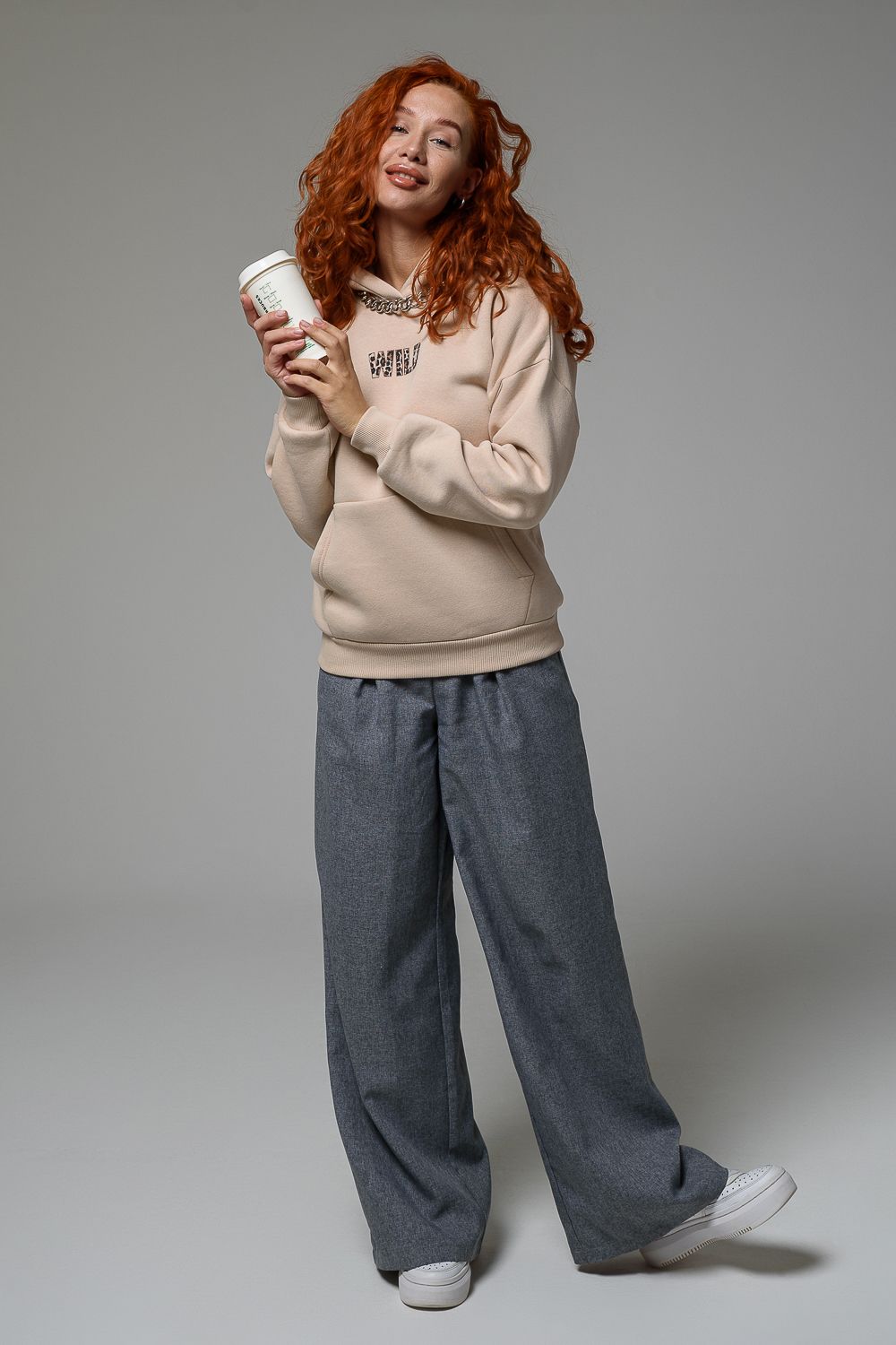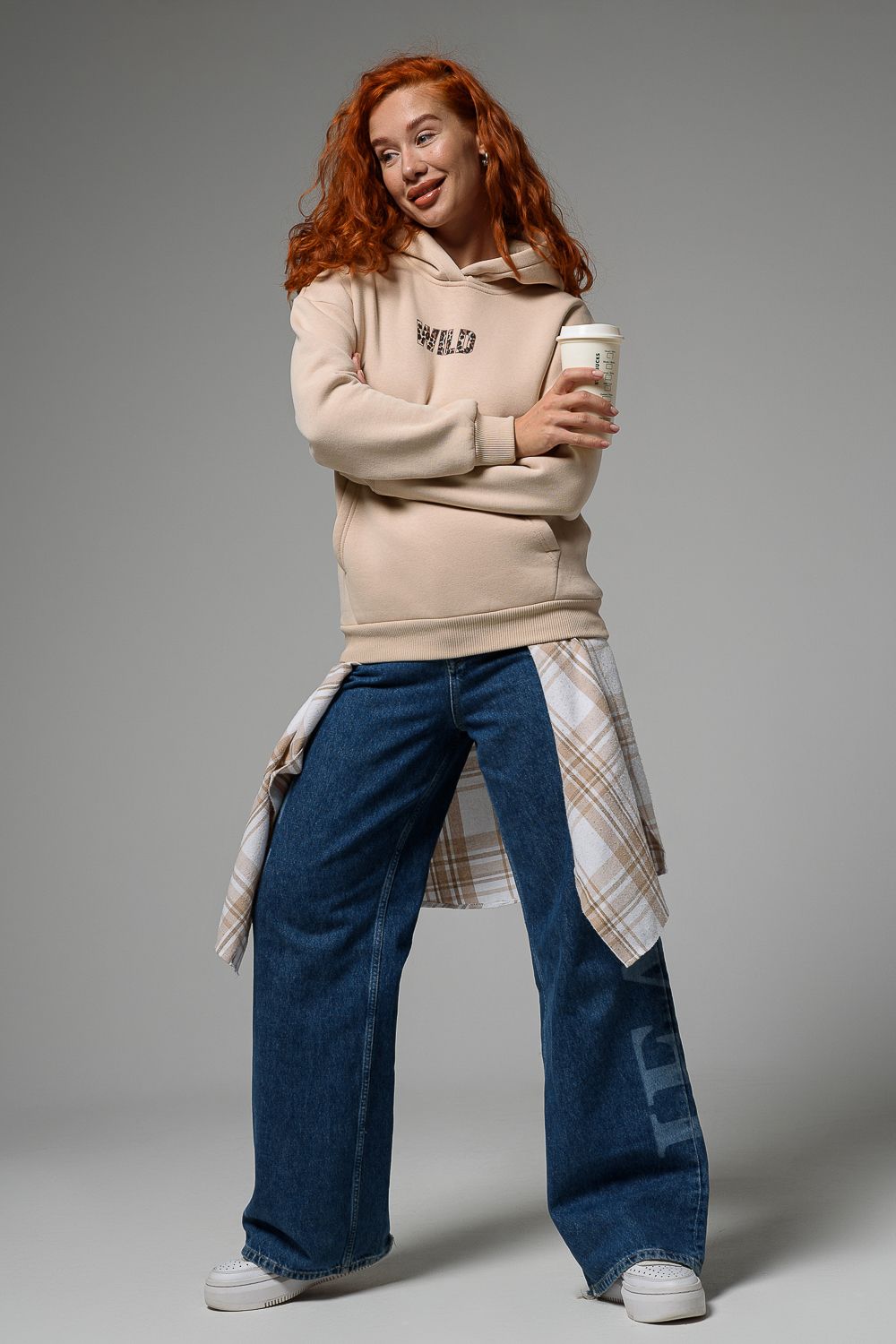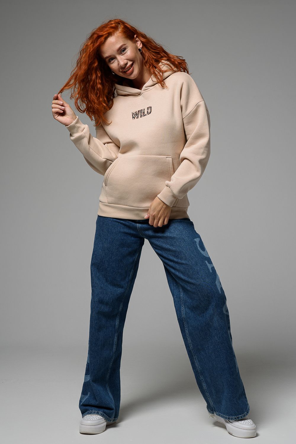 8518 Толстовка женская оверсайз - бежевый+Wild