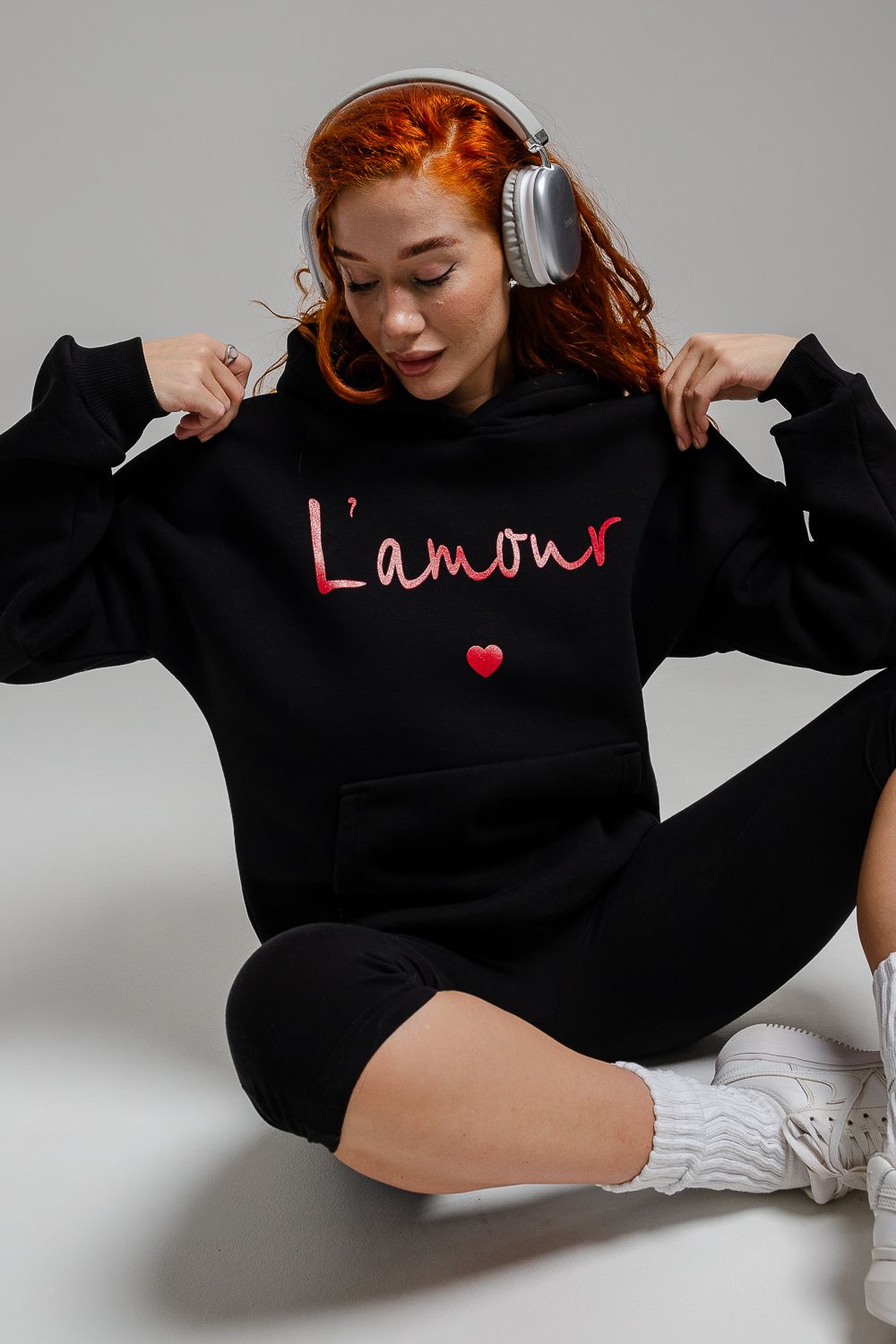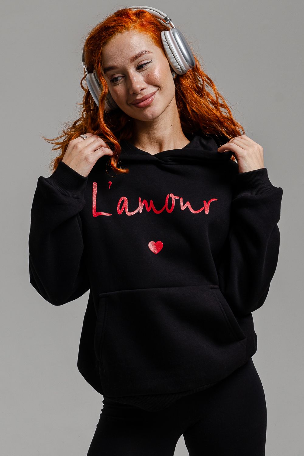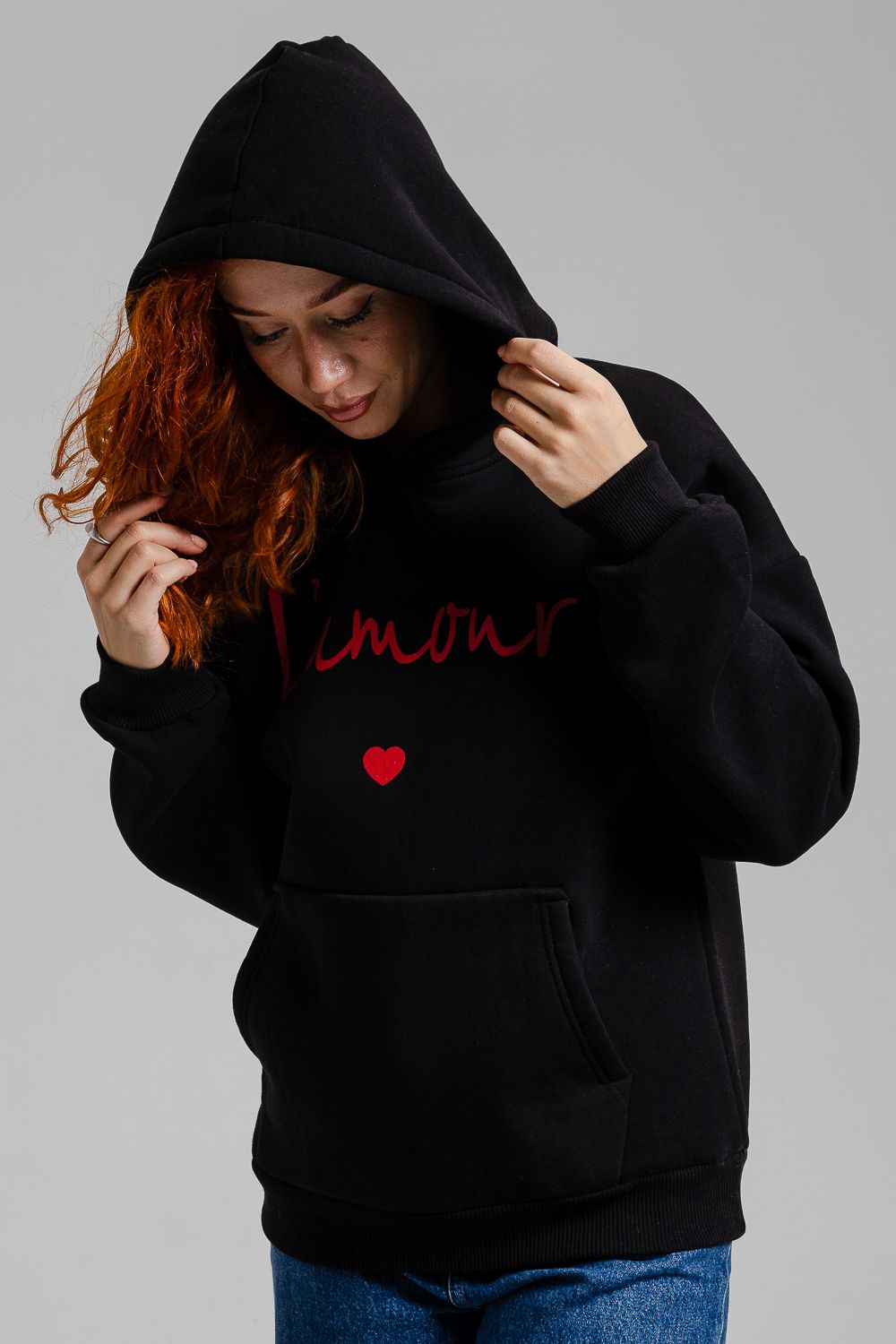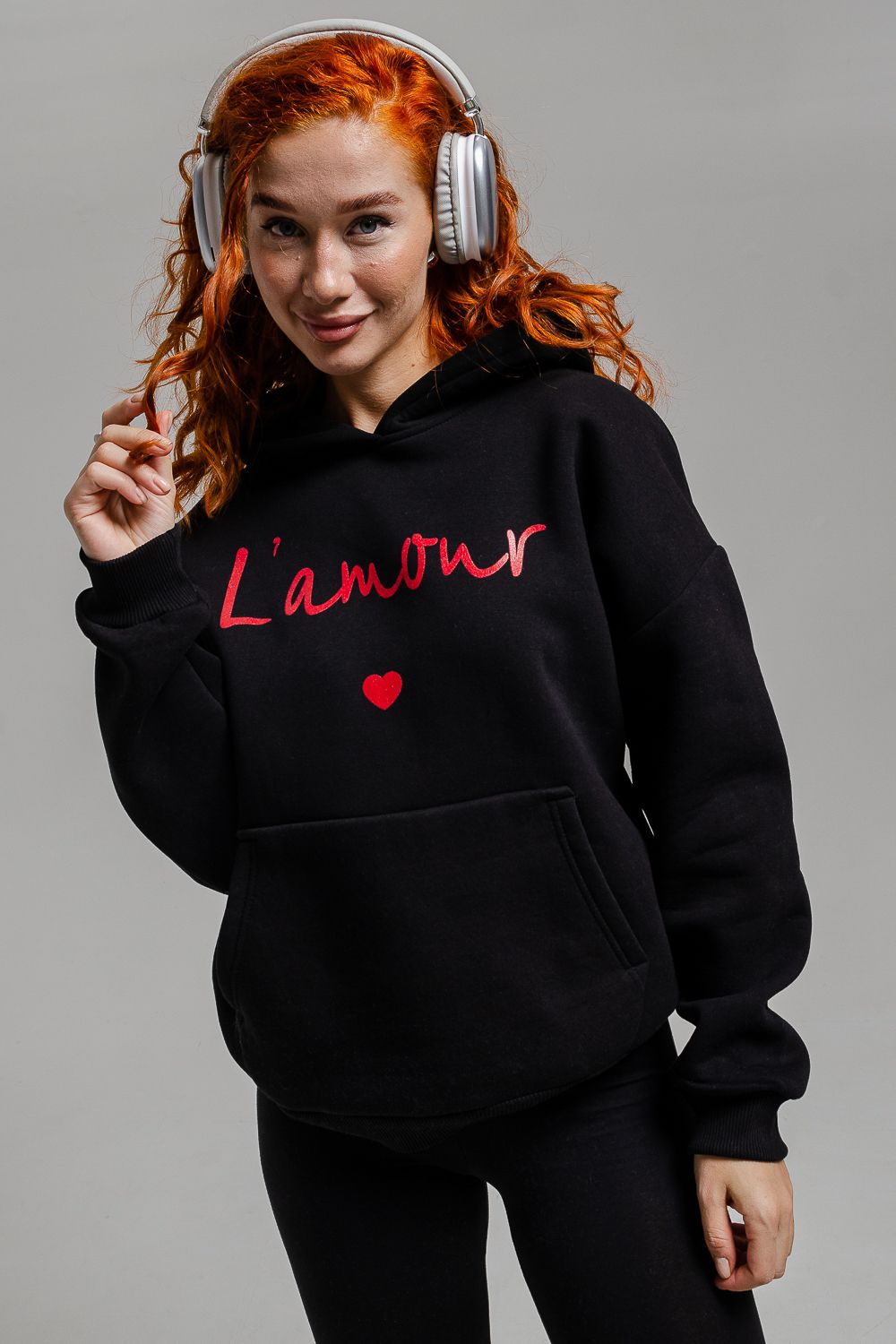 8518 Толстовка женская оверсайз - черный+Лямур