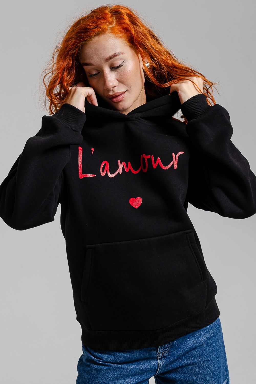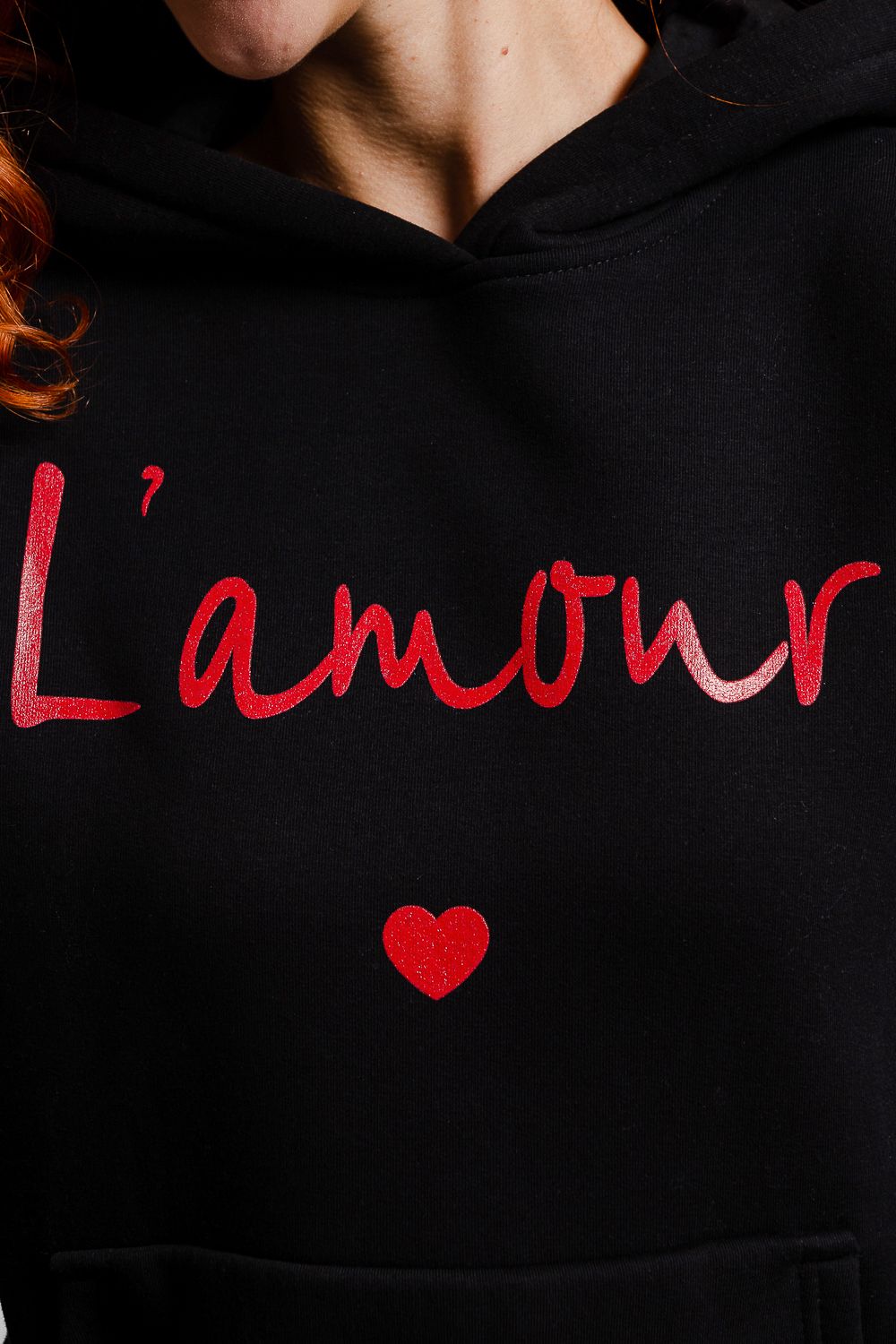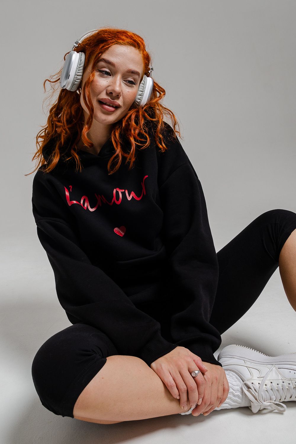 8518 Толстовка женская оверсайз - черный+Лямур