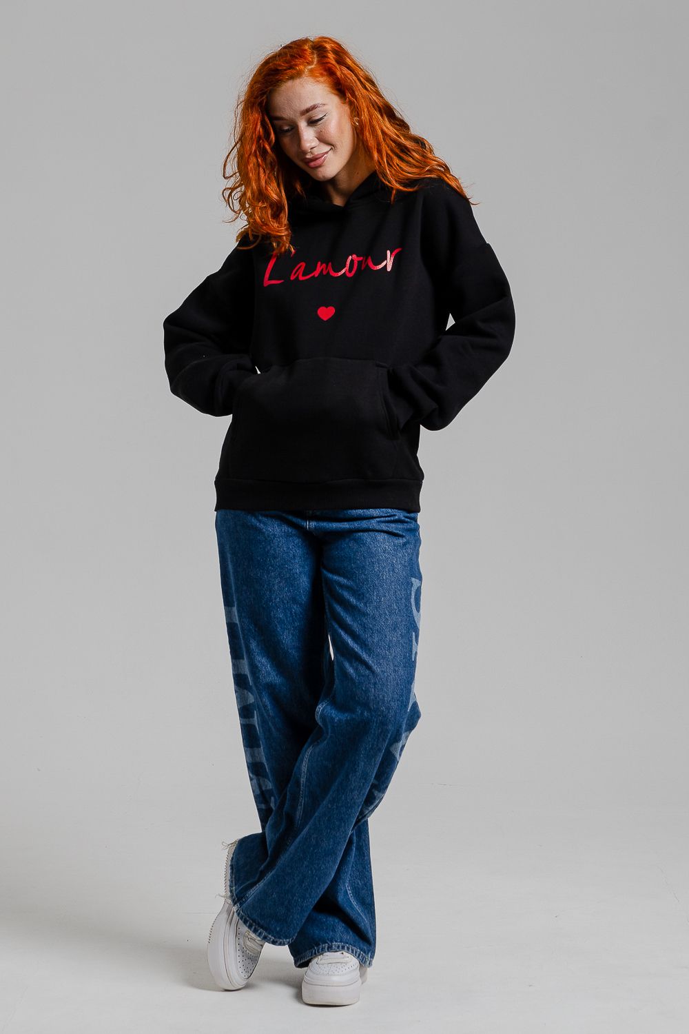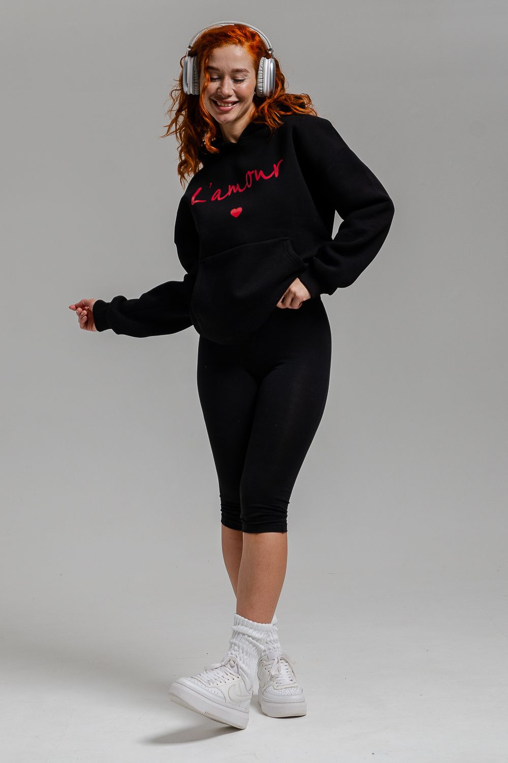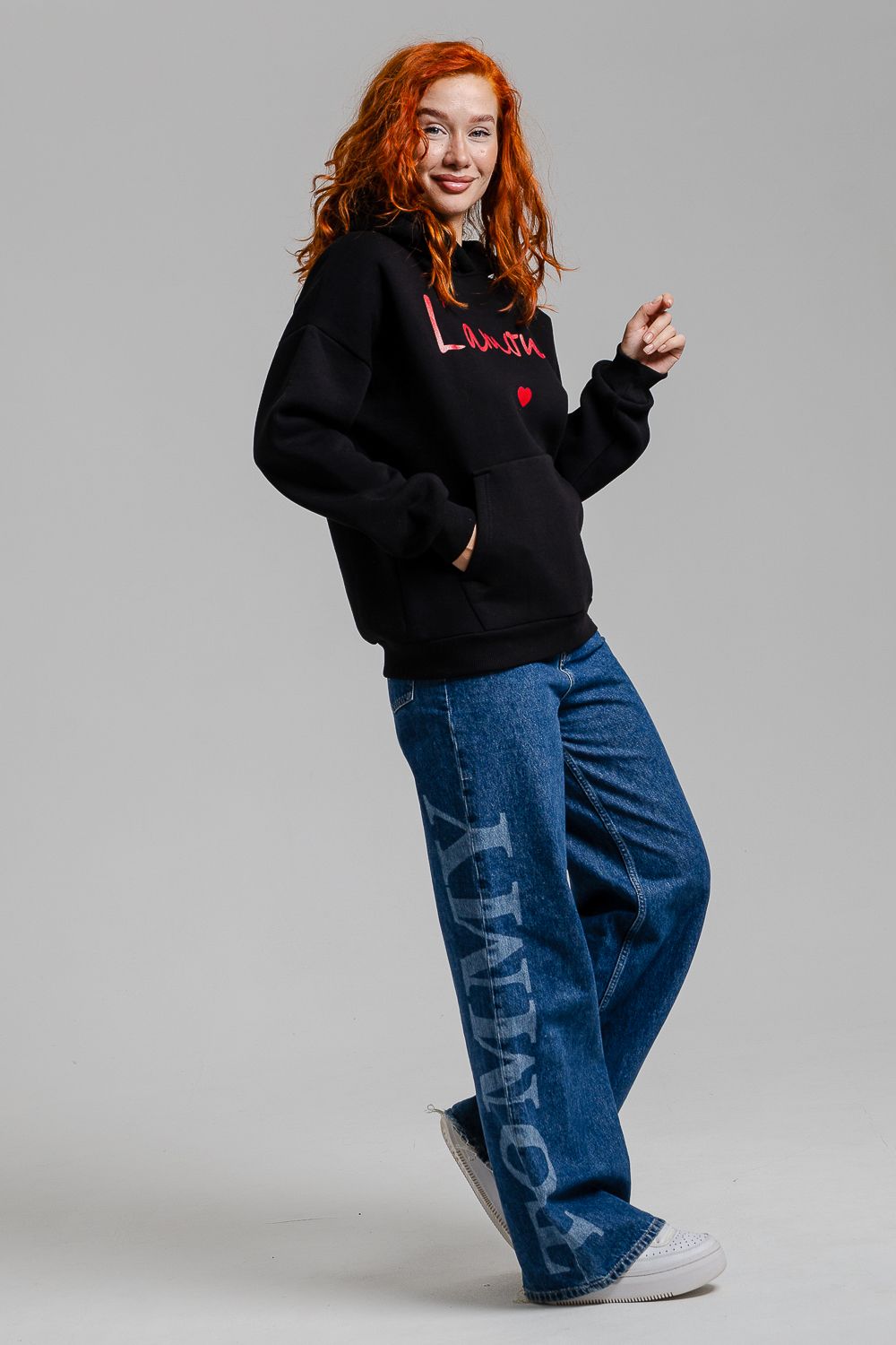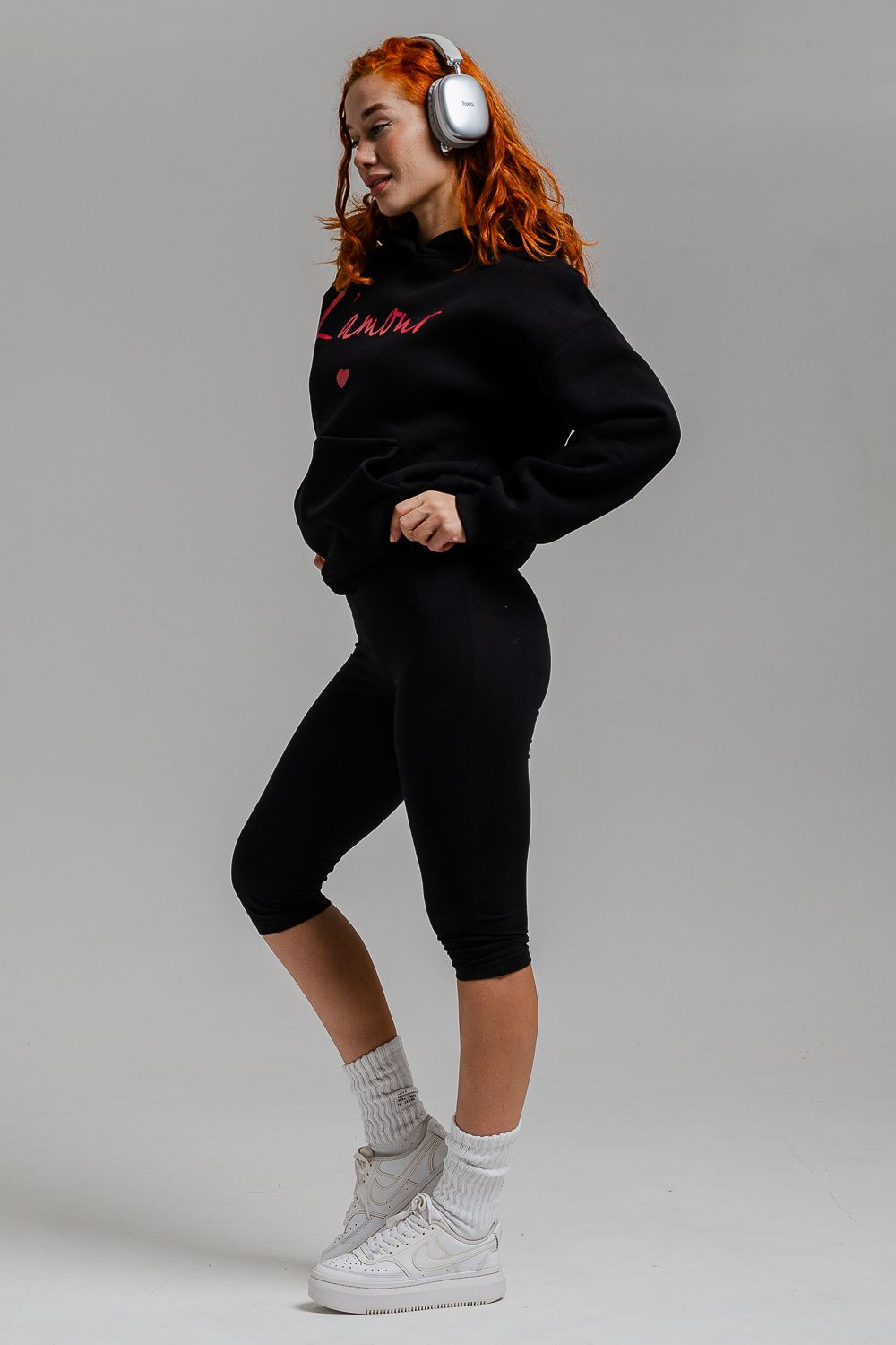 8518 Толстовка женская оверсайз - черный+Лямур