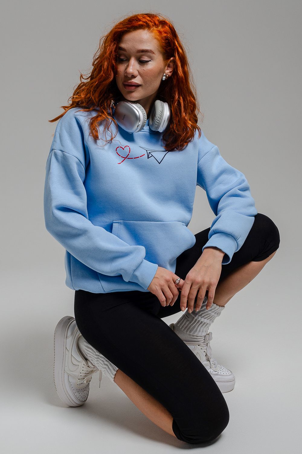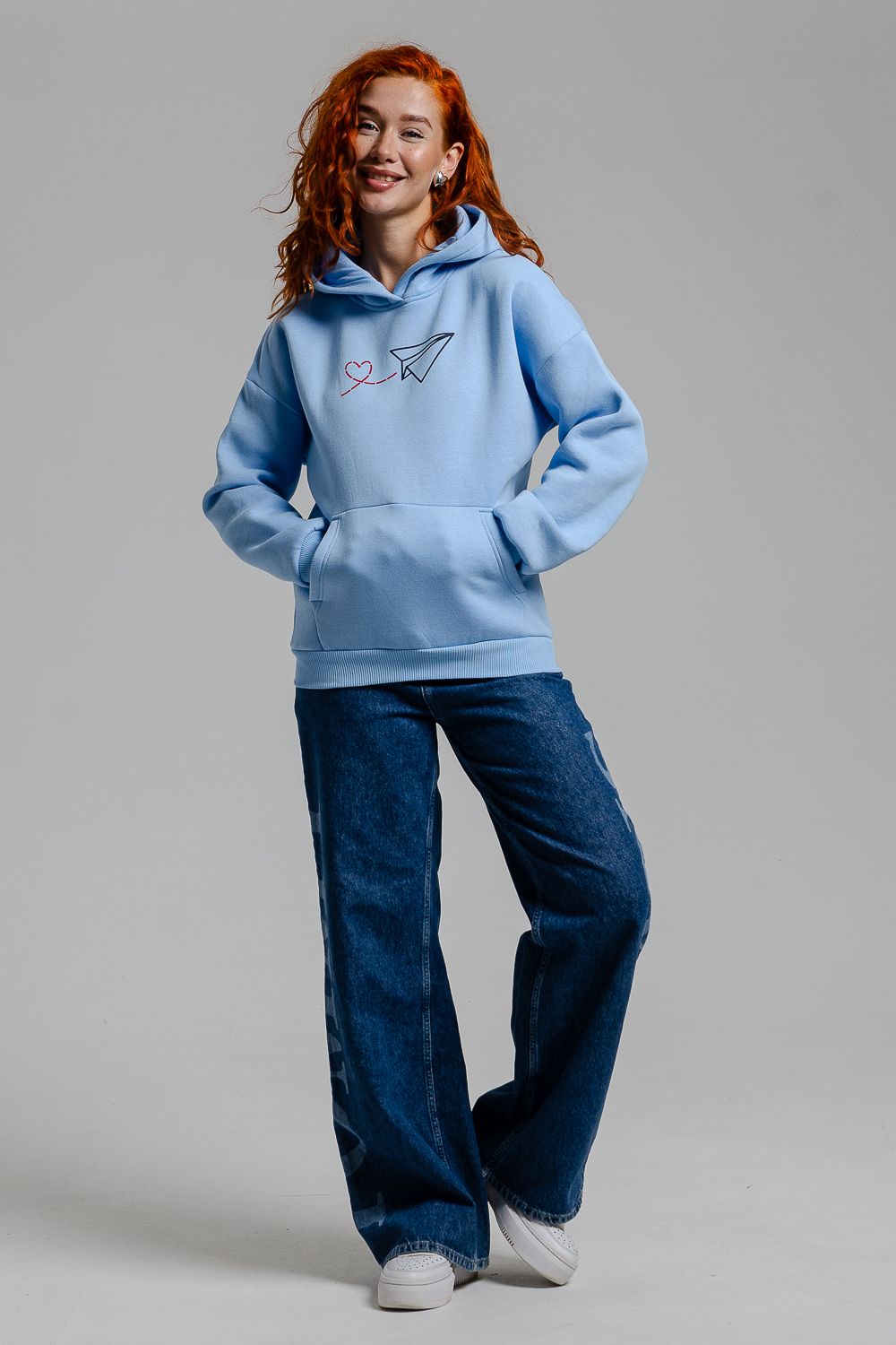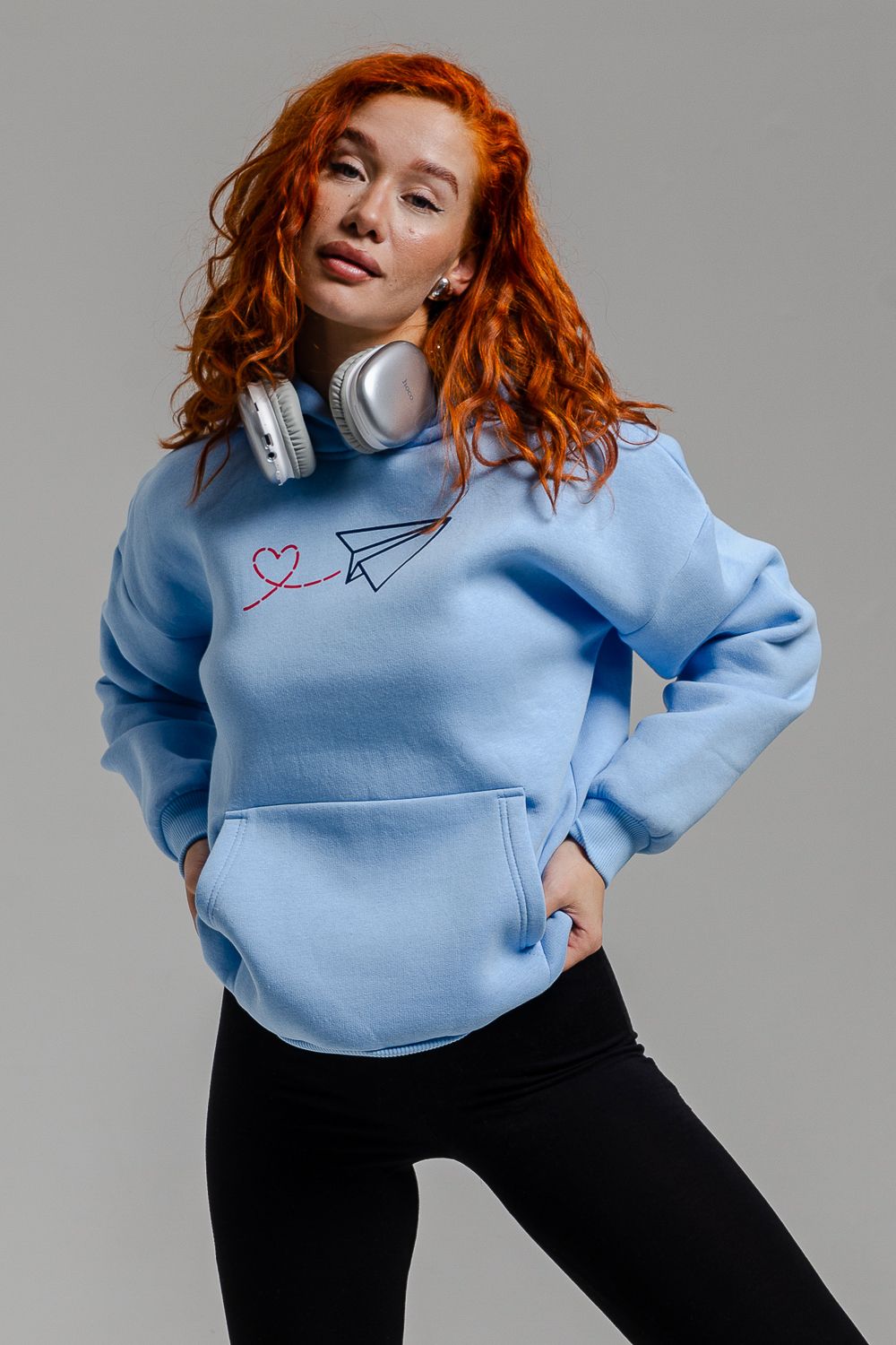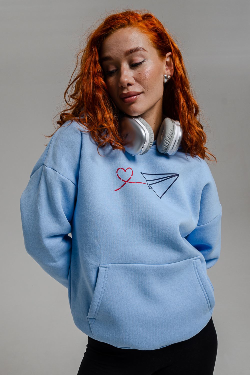 8518 Толстовка женская оверсайз - голубой+Самолетик