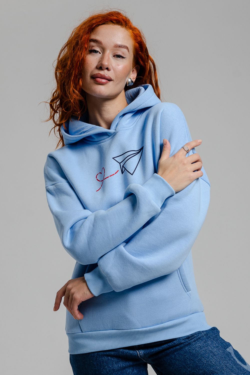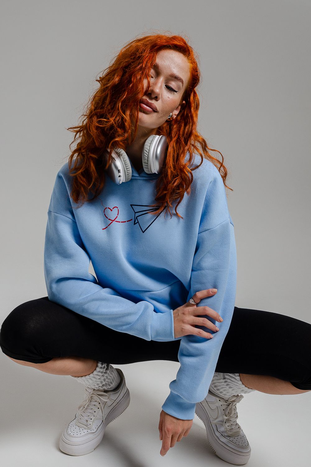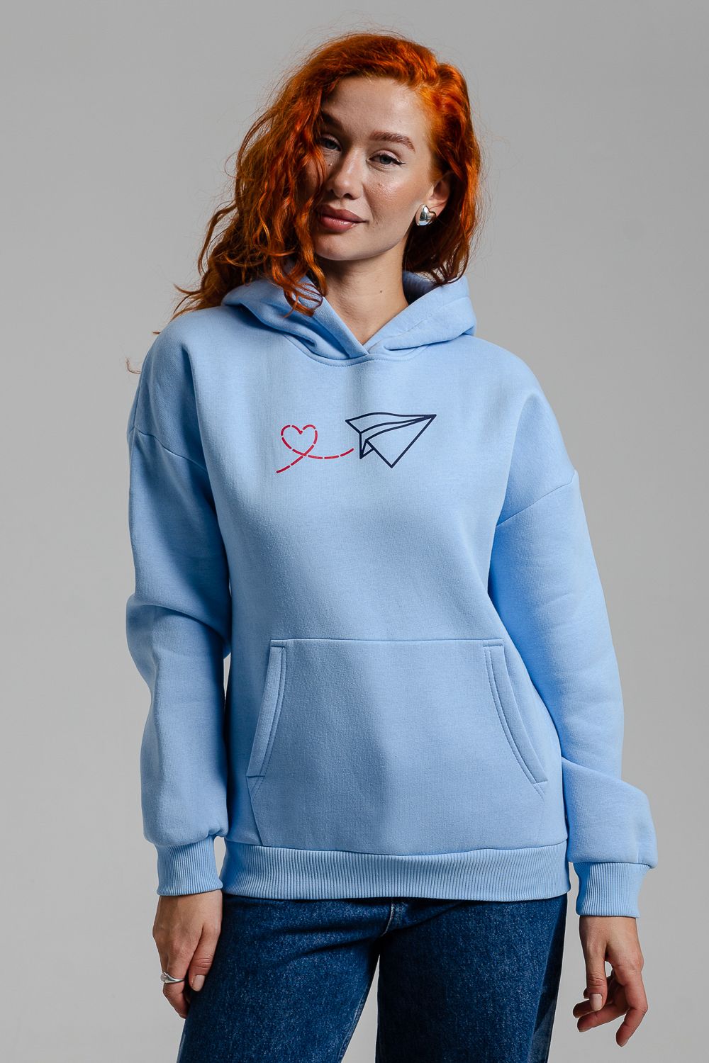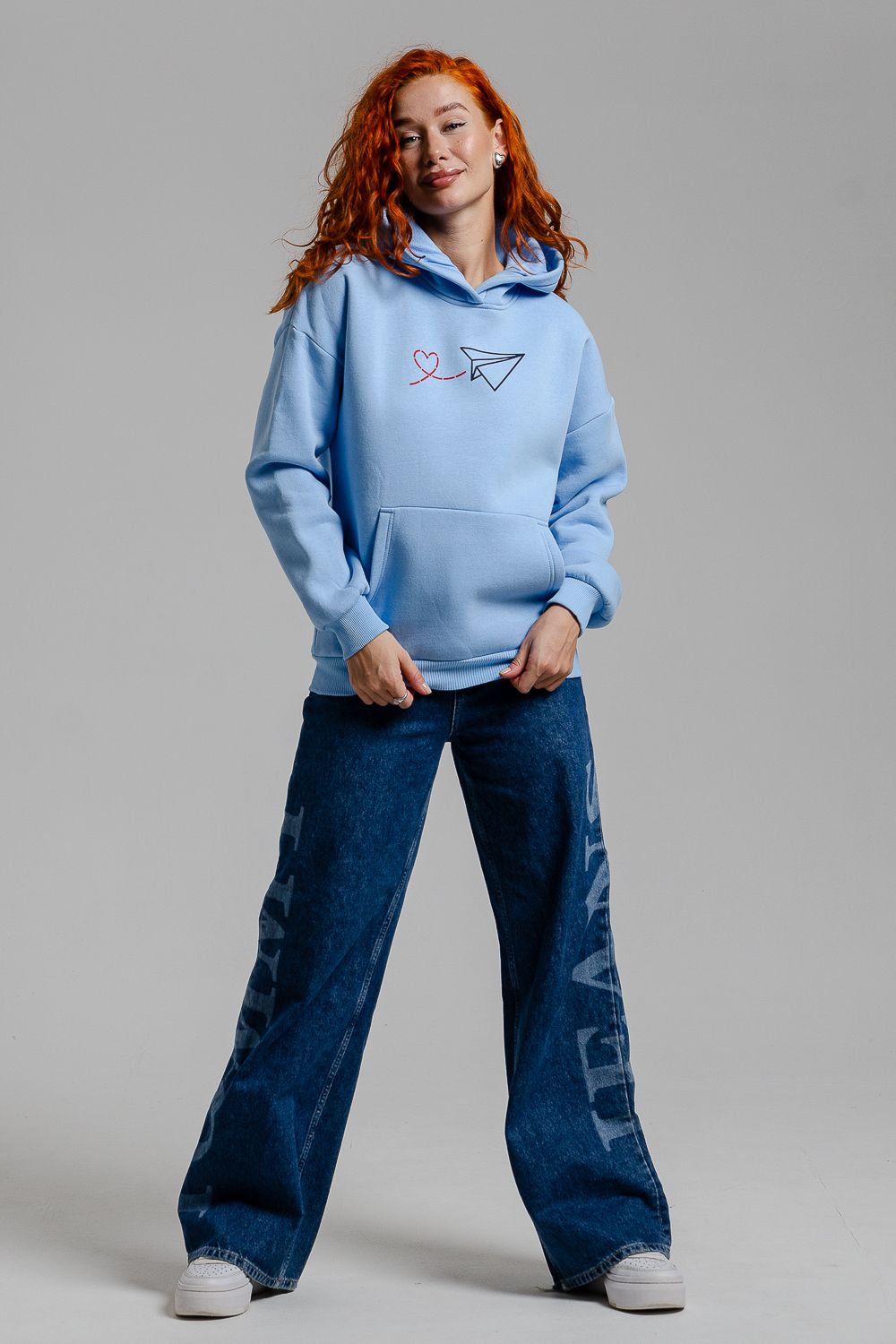 8518 Толстовка женская оверсайз - голубой+Самолетик