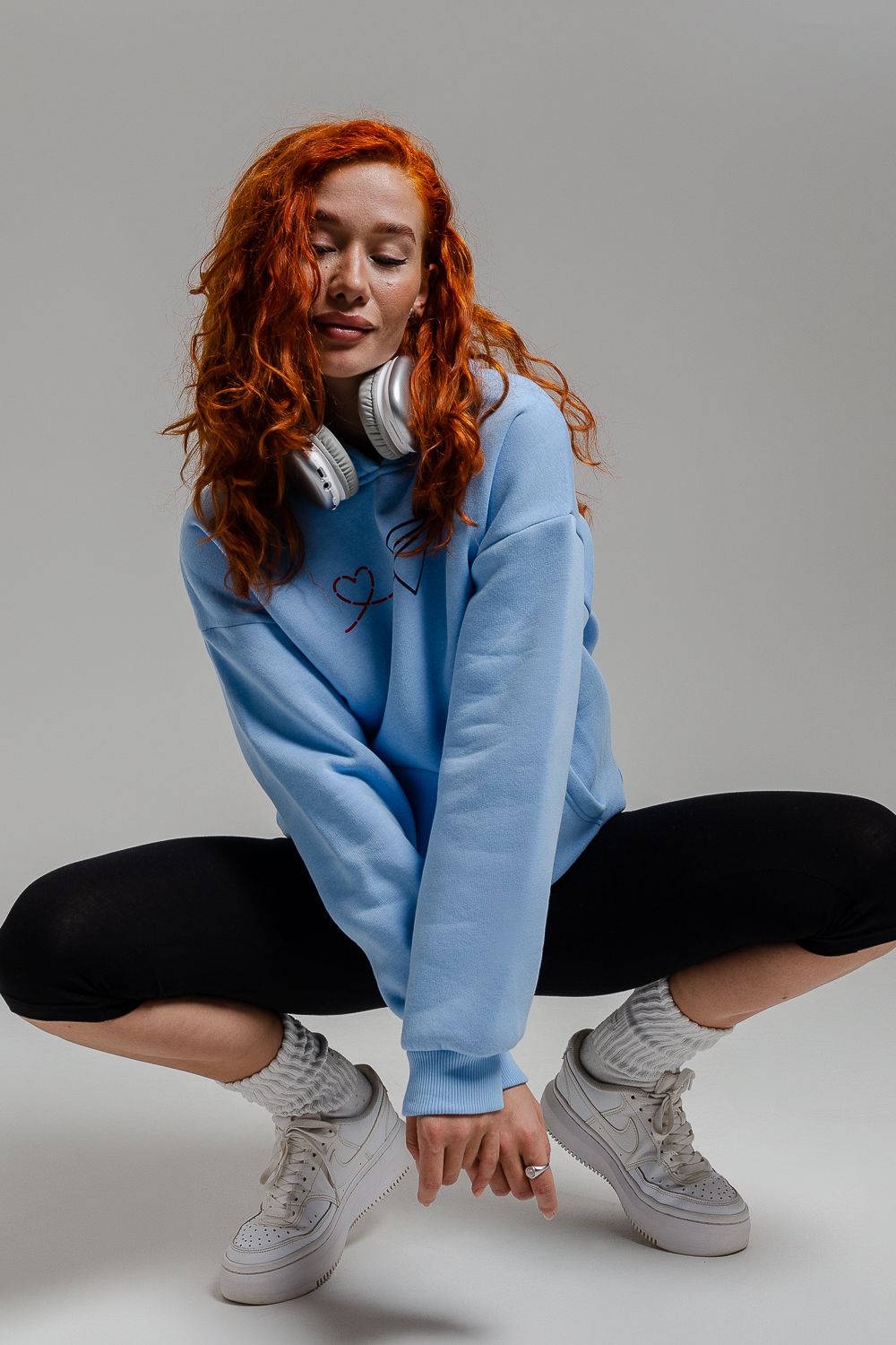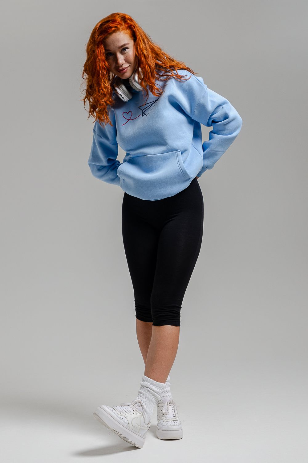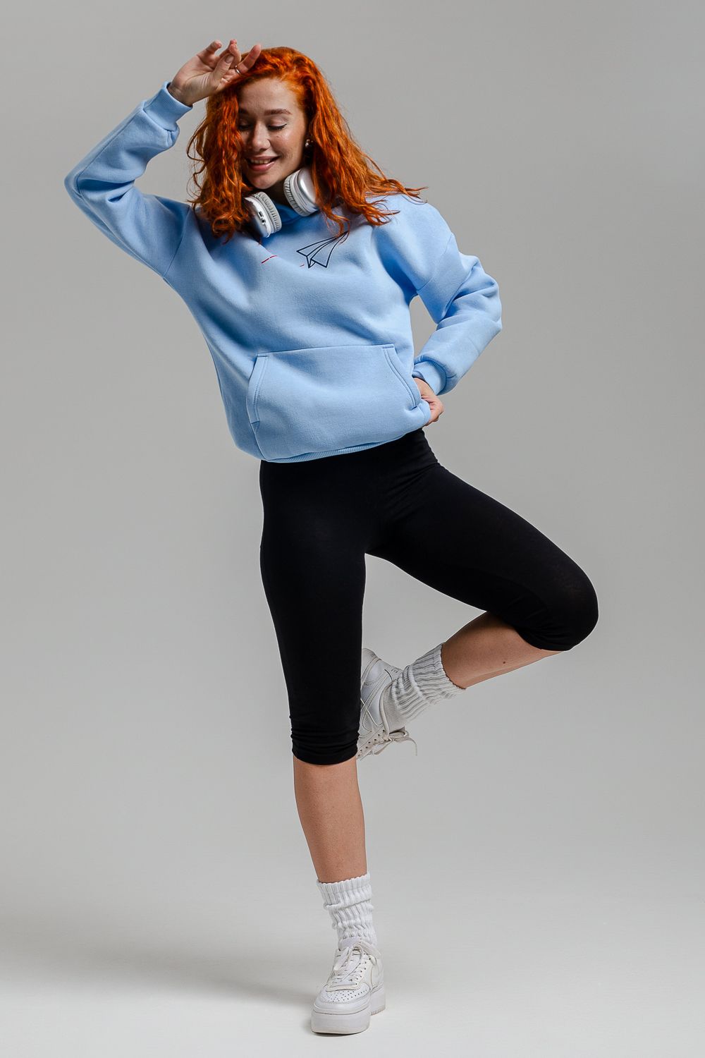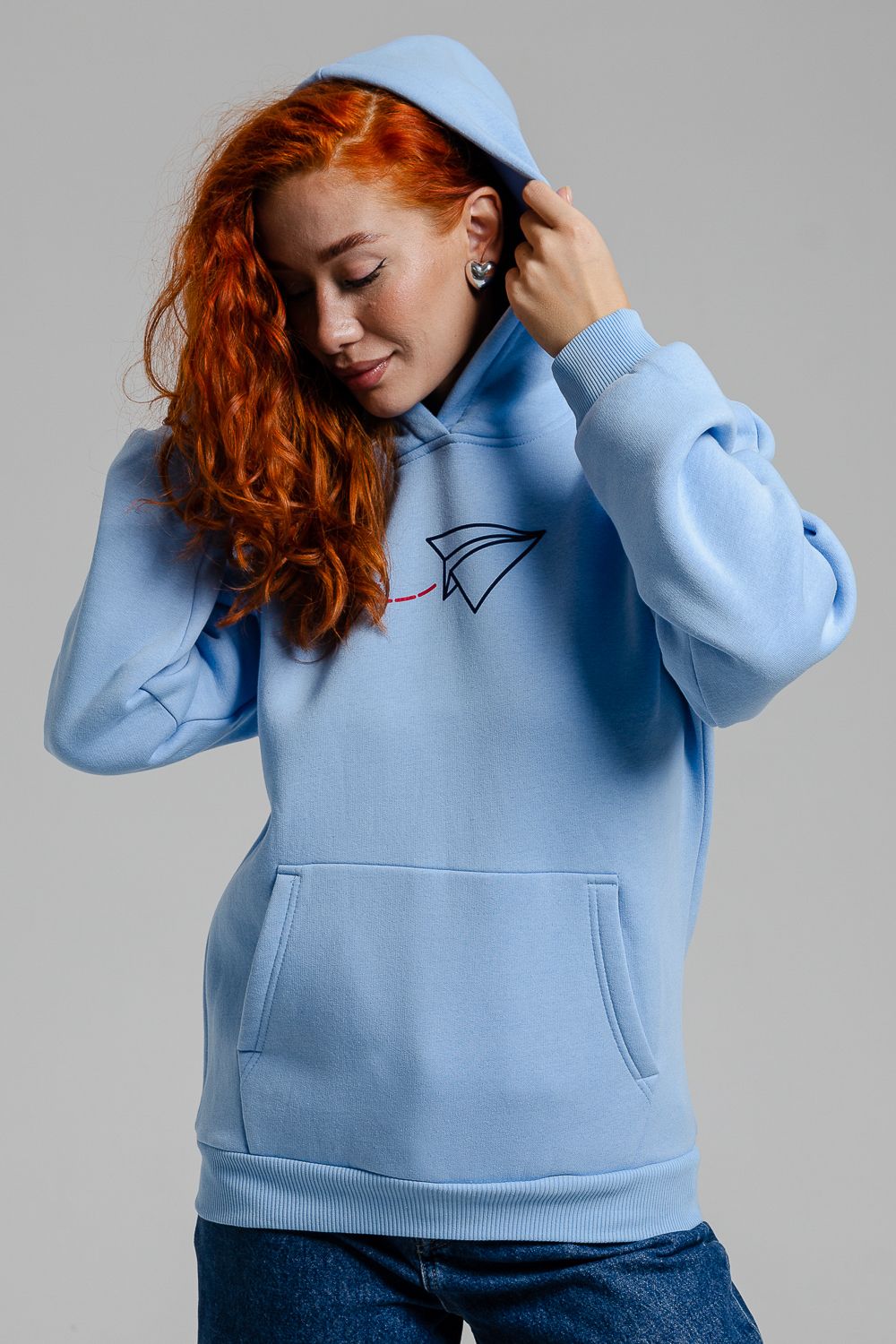 8518 Толстовка женская оверсайз - голубой+Самолетик