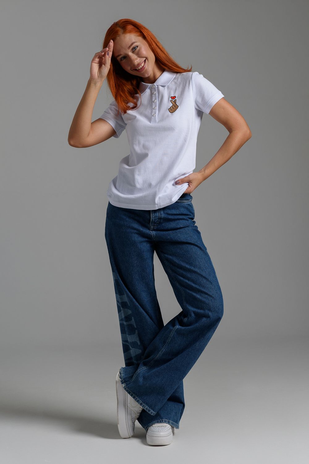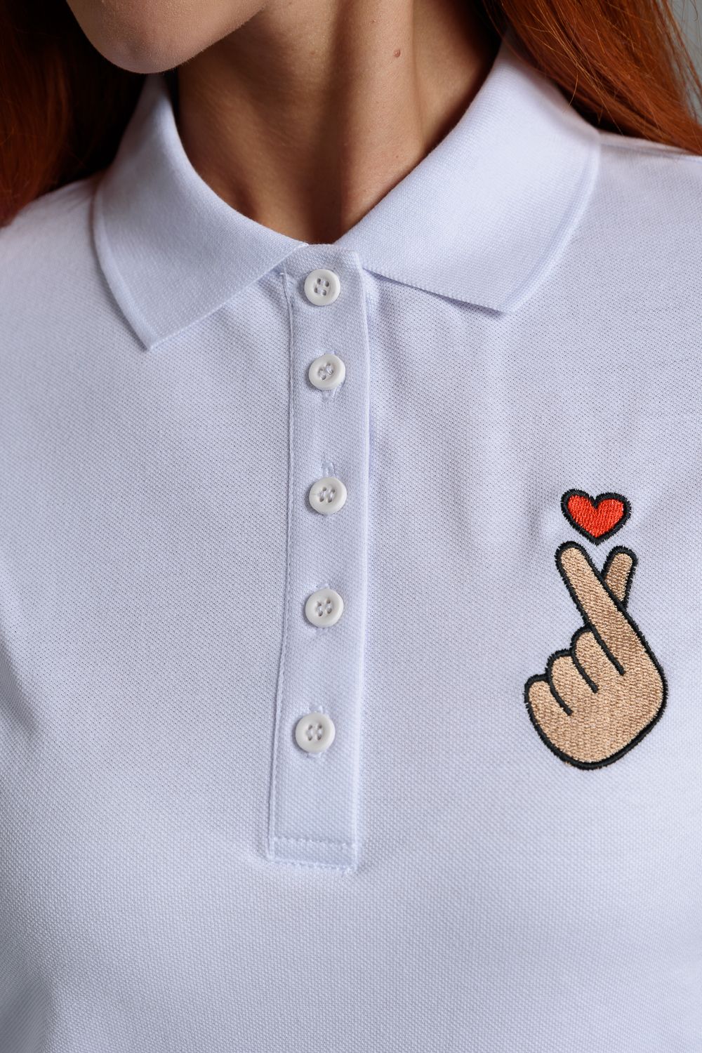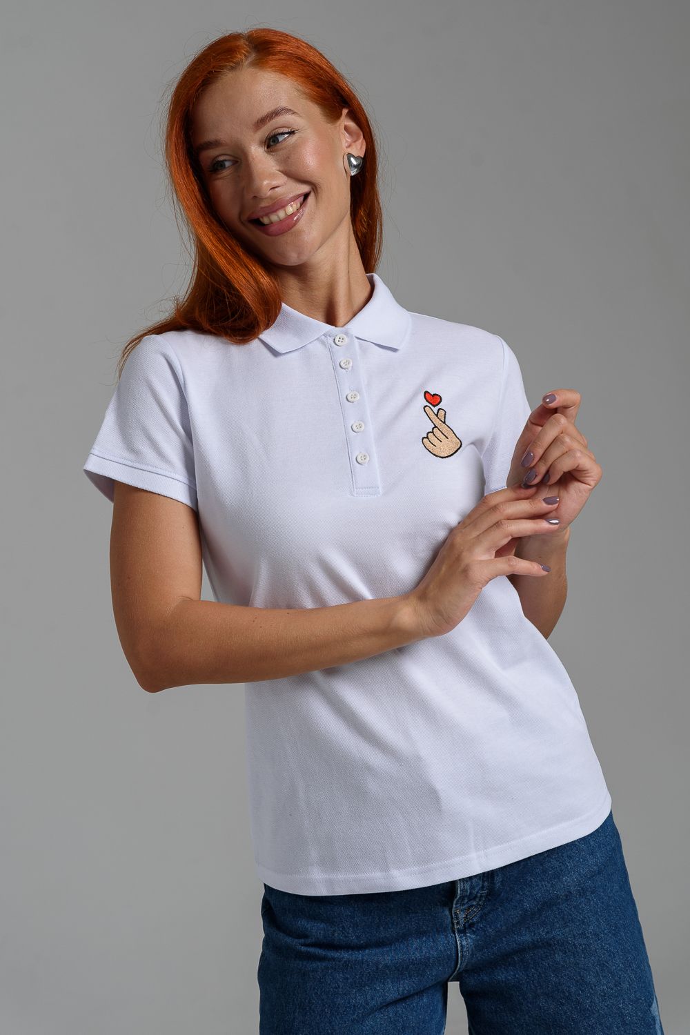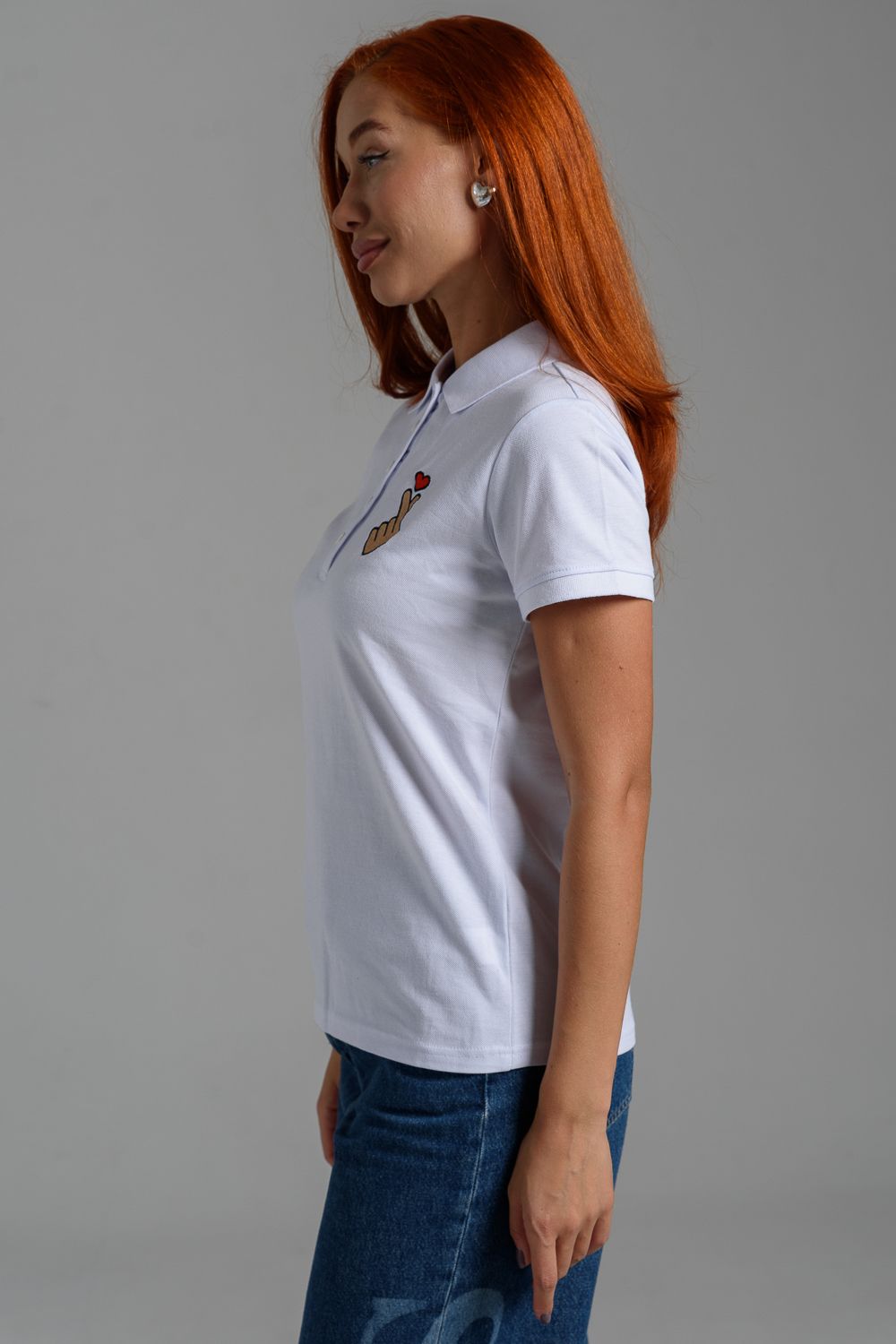 8524 футболка поло женская - белый+рука с сердцем