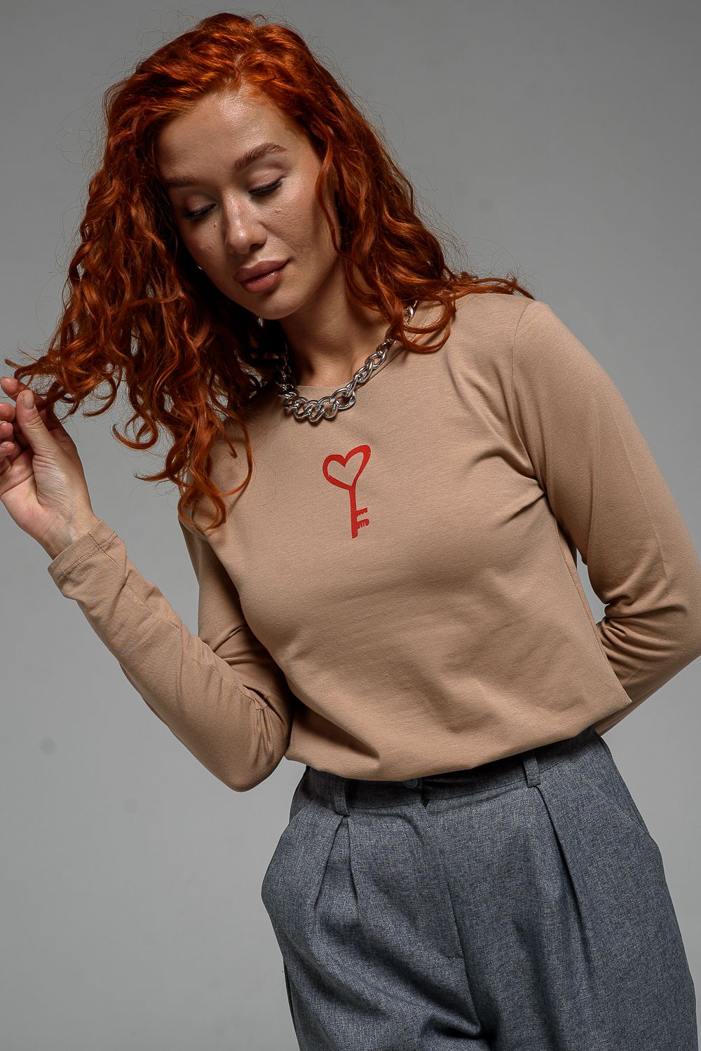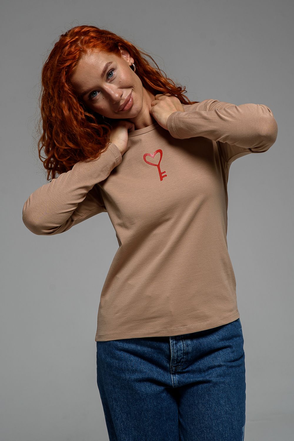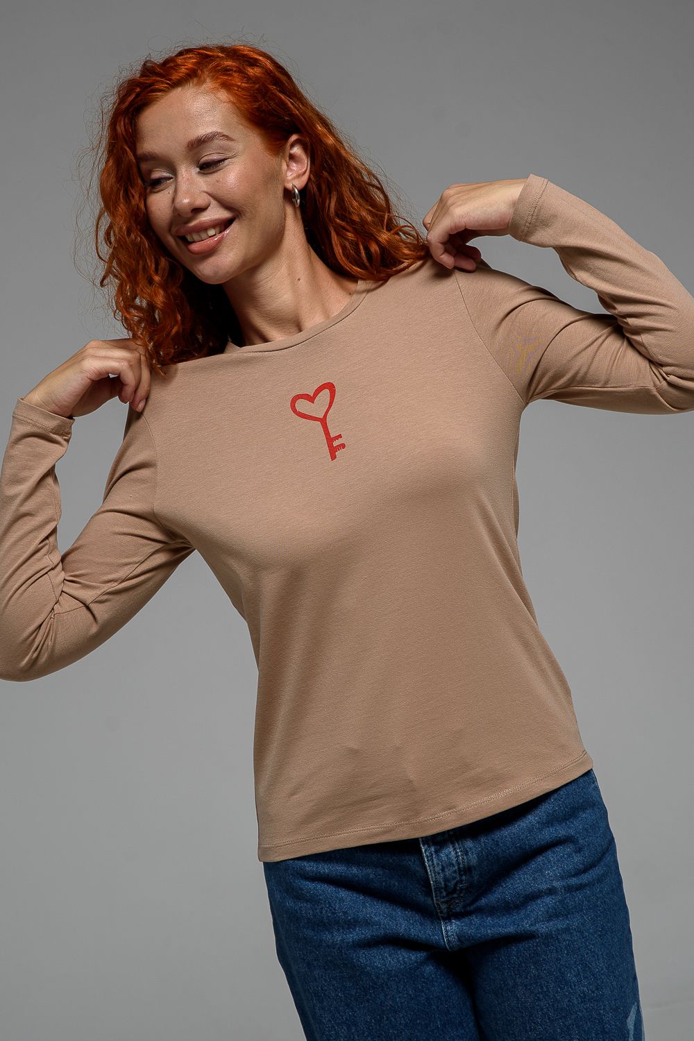 8529/1 футболка с дл.рукавом - бежевый+Ключик