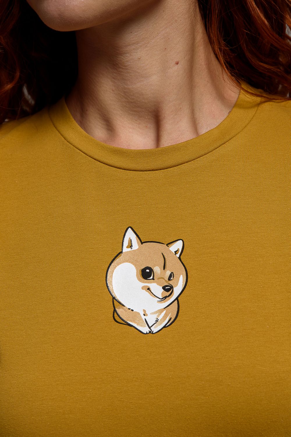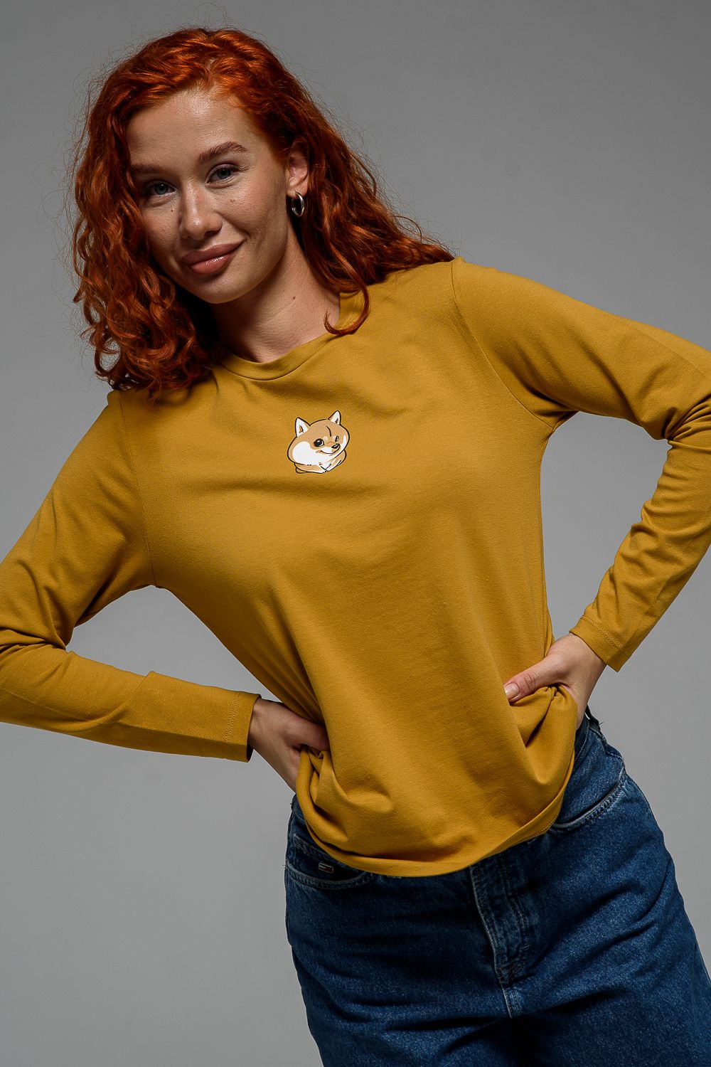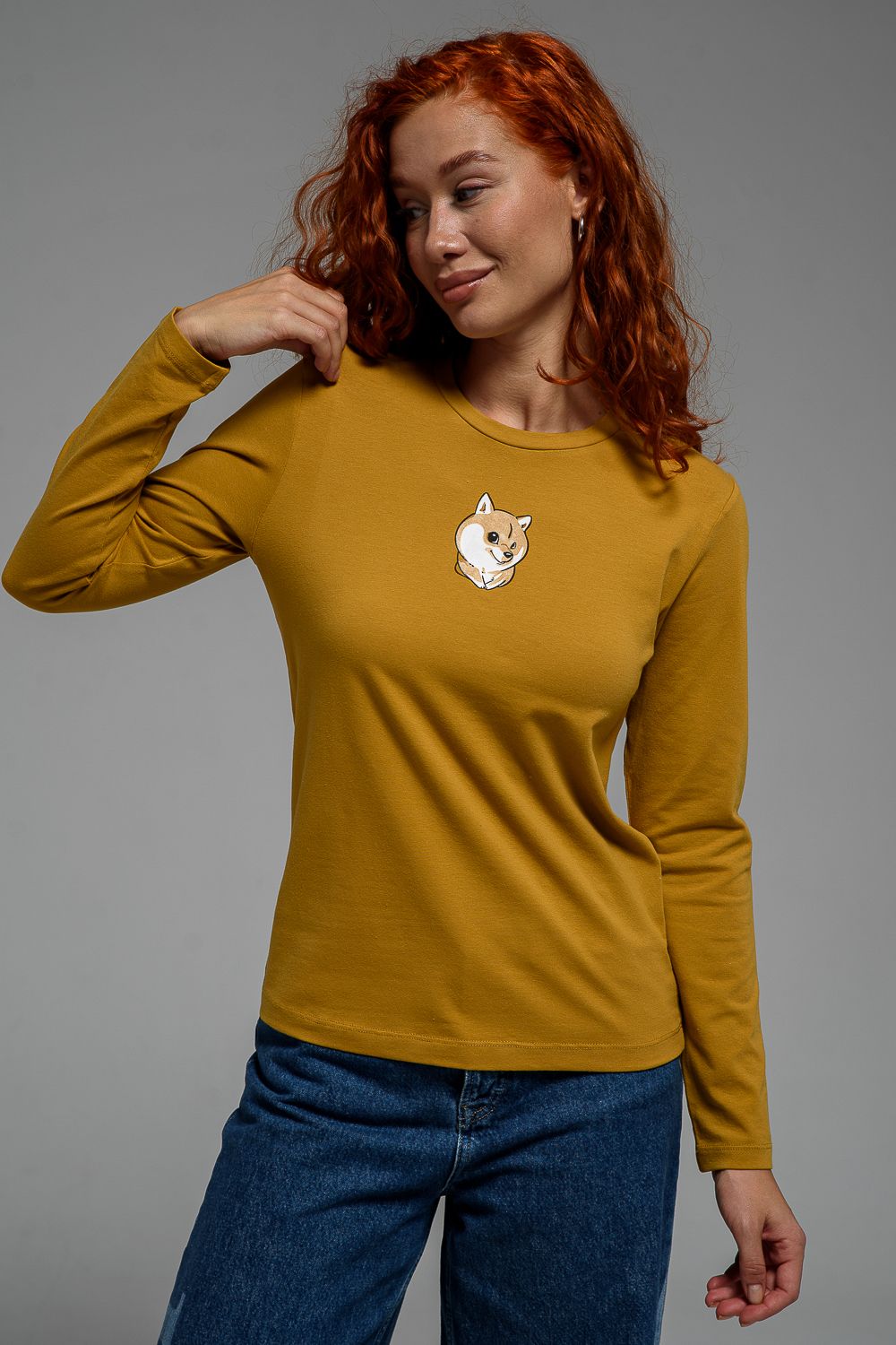 8529/1 футболка с дл.рукавом - горчичный+Сиба-ину