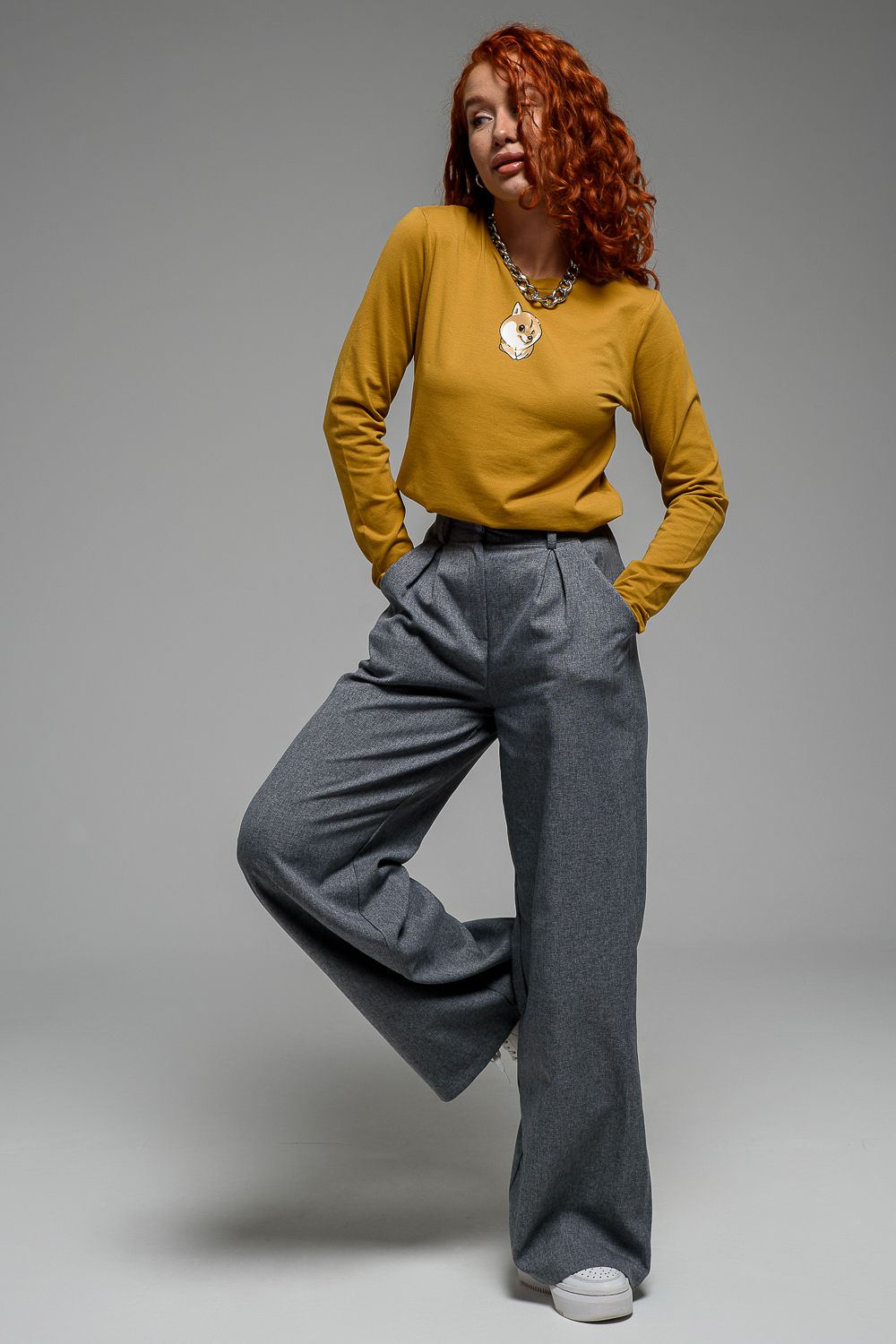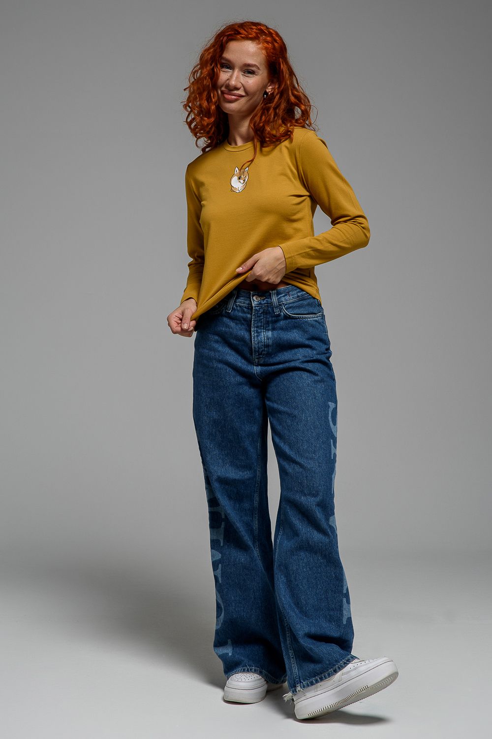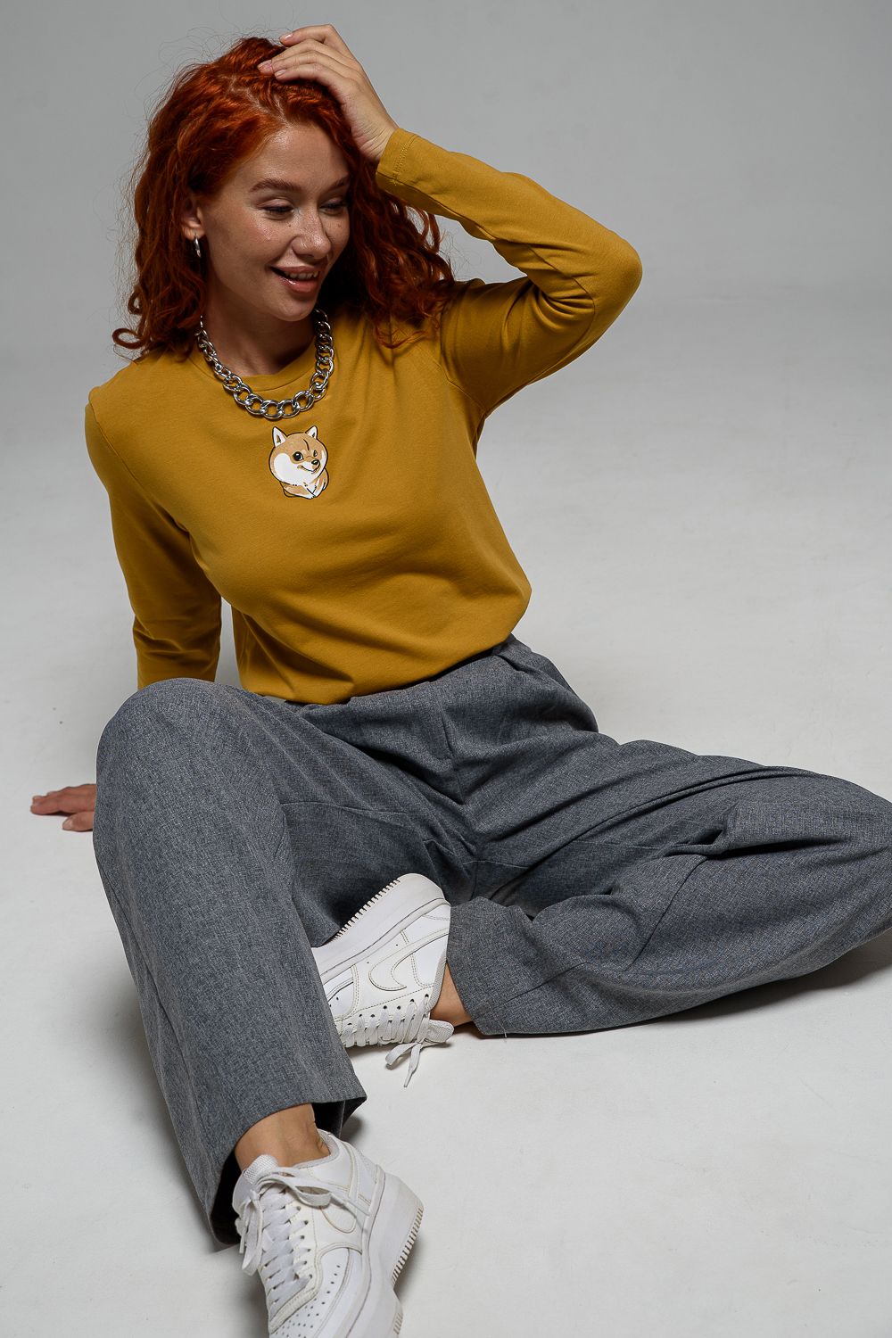 8529/1 футболка с дл.рукавом - горчичный+Сиба-ину