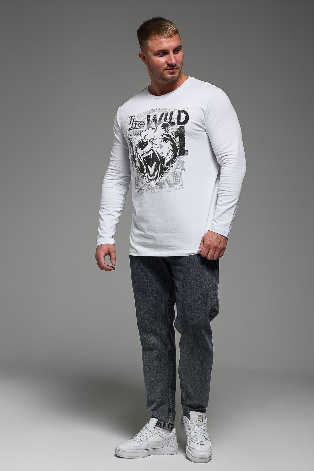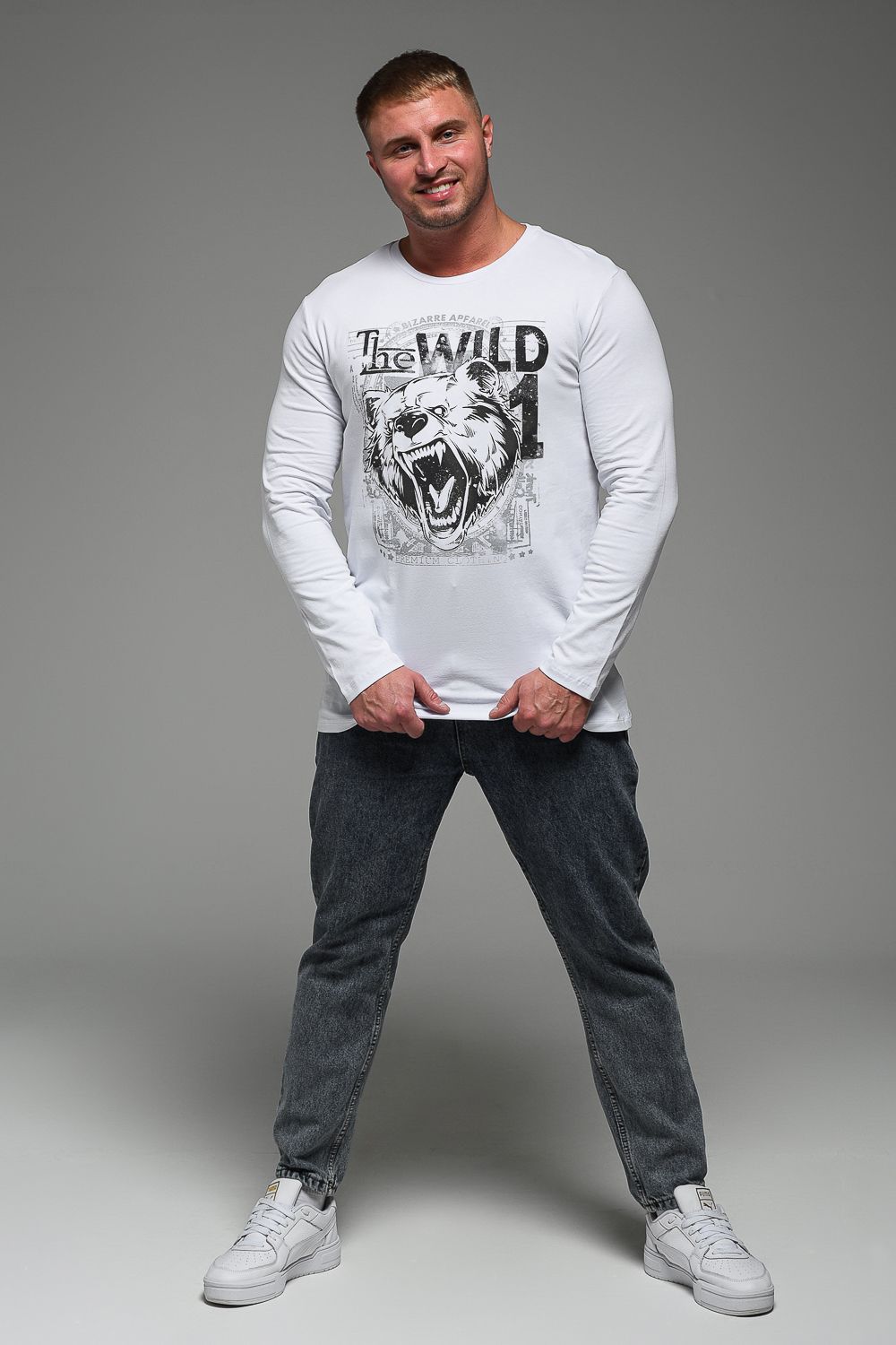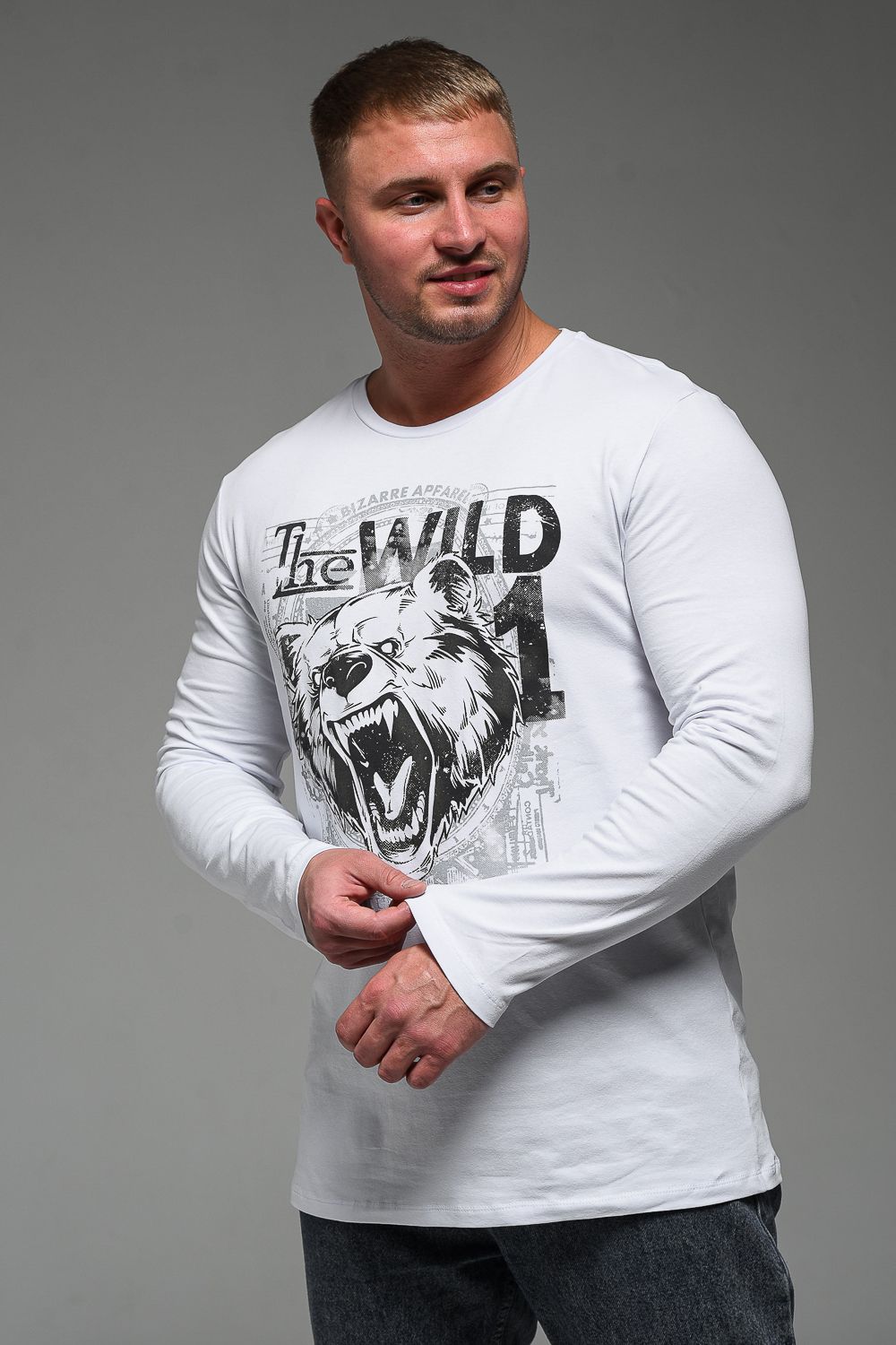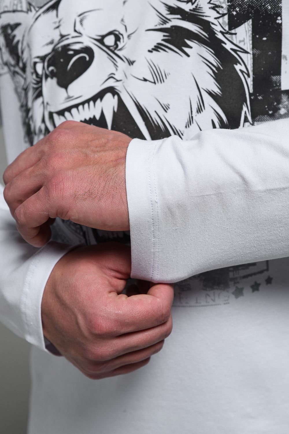 8534 Футболка с длинным рукавом мужская - белый+Дикий