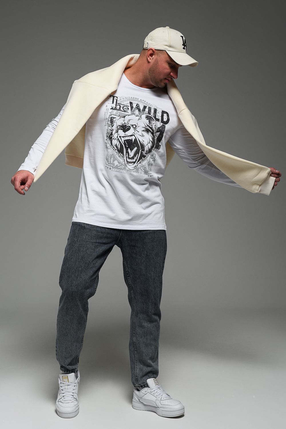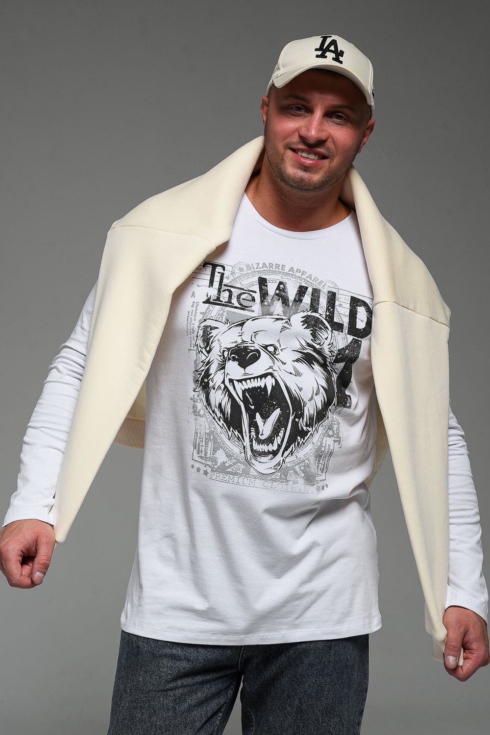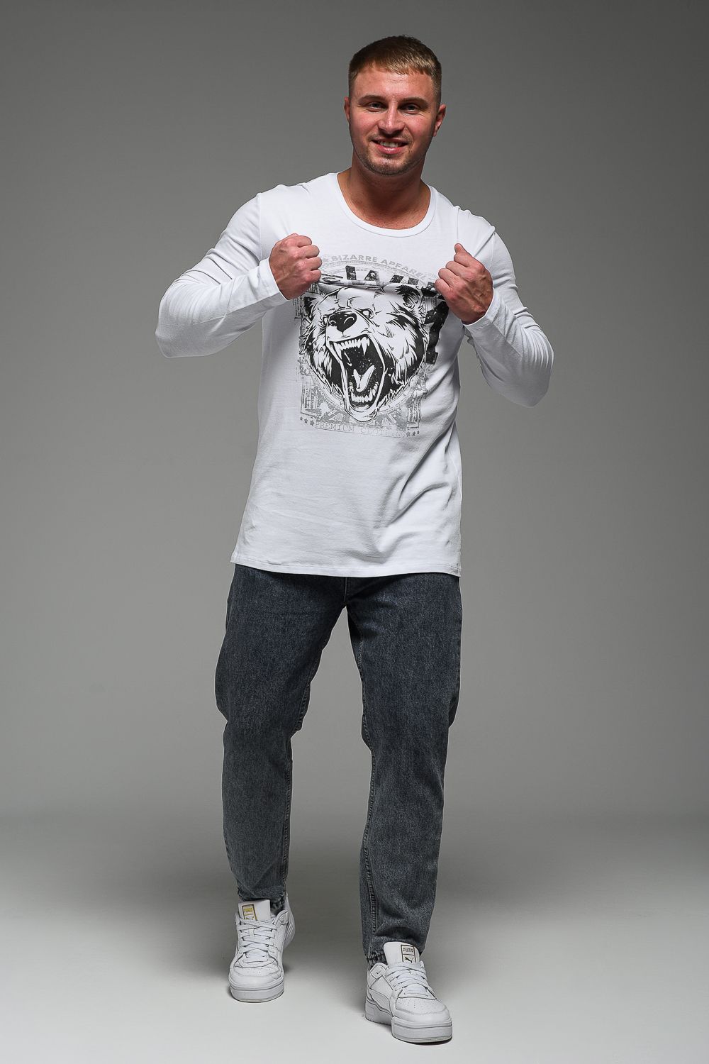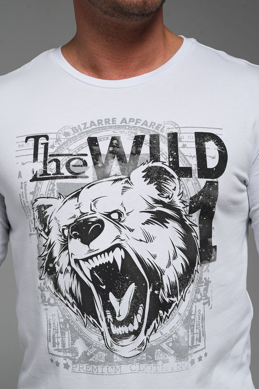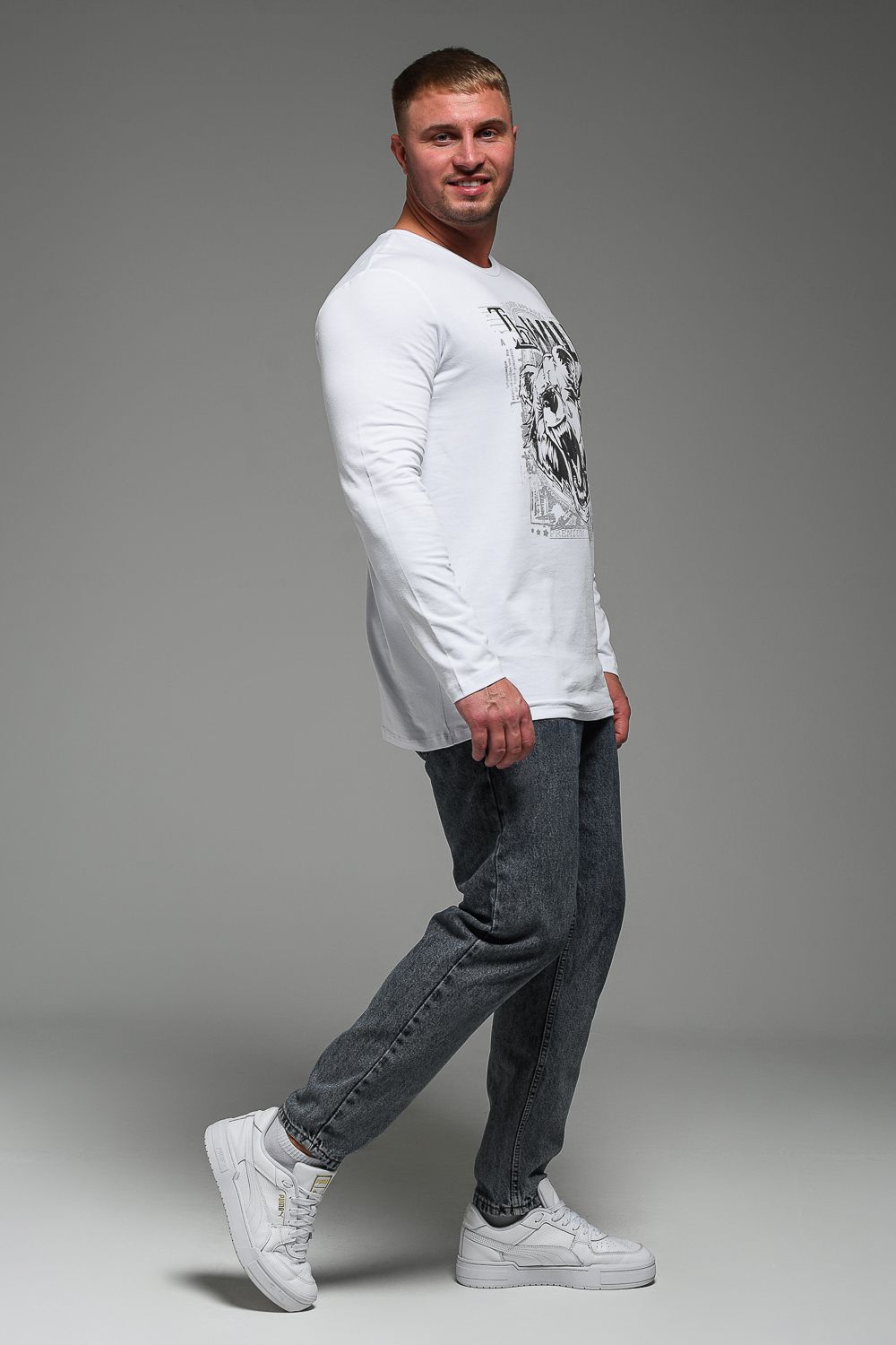 8534 Футболка с длинным рукавом мужская - белый+Дикий