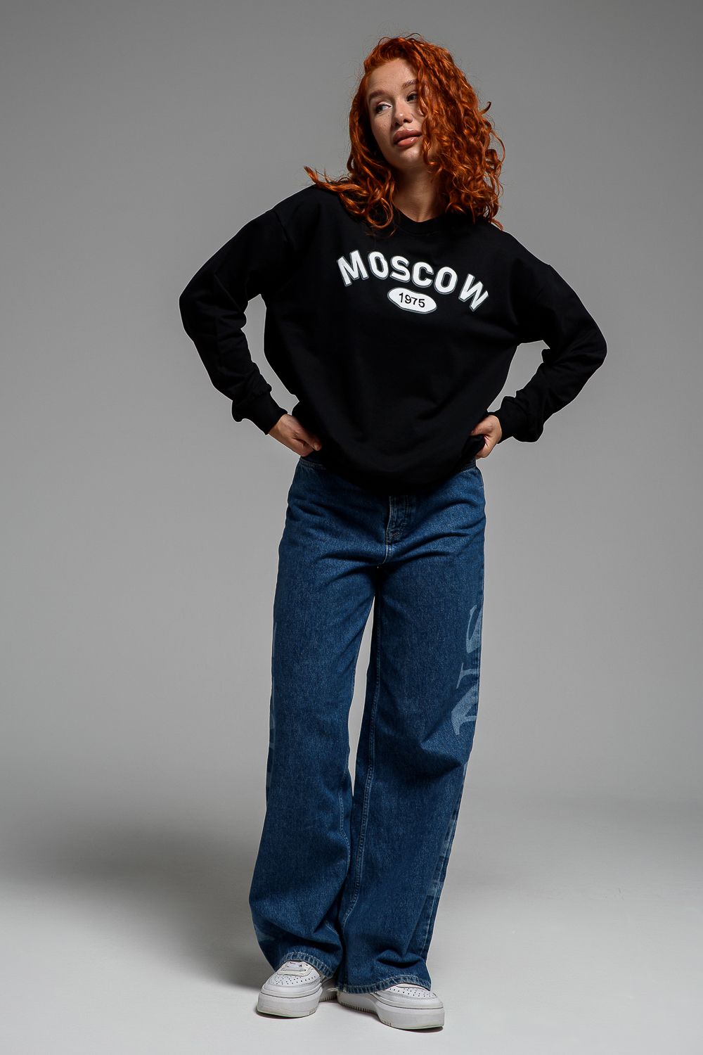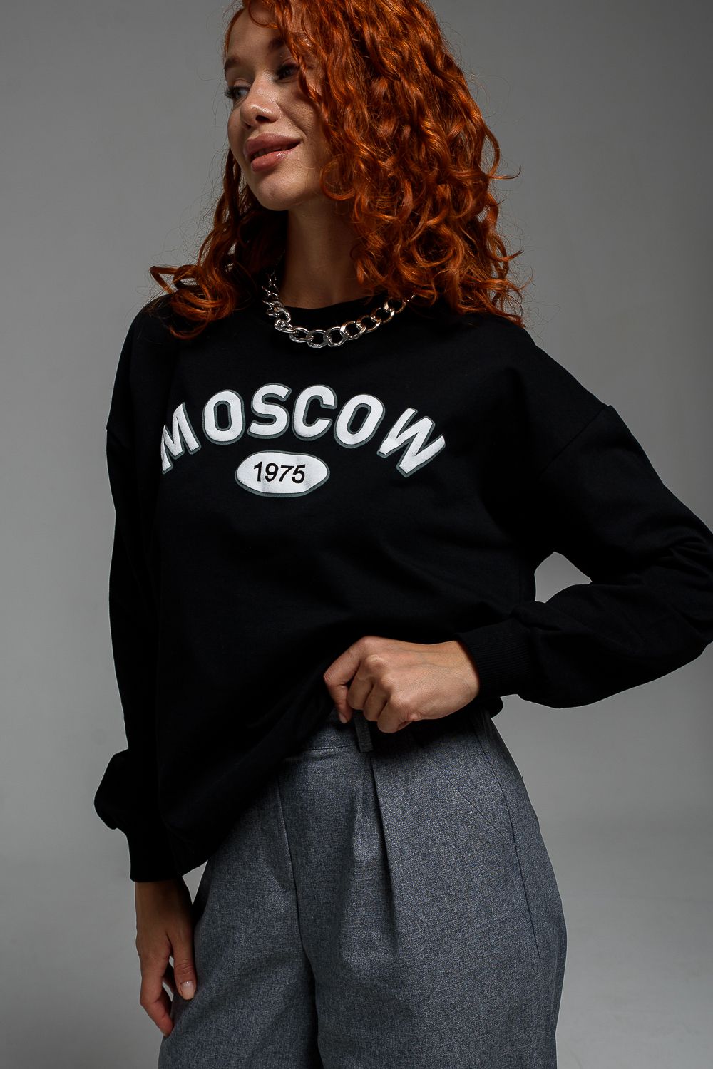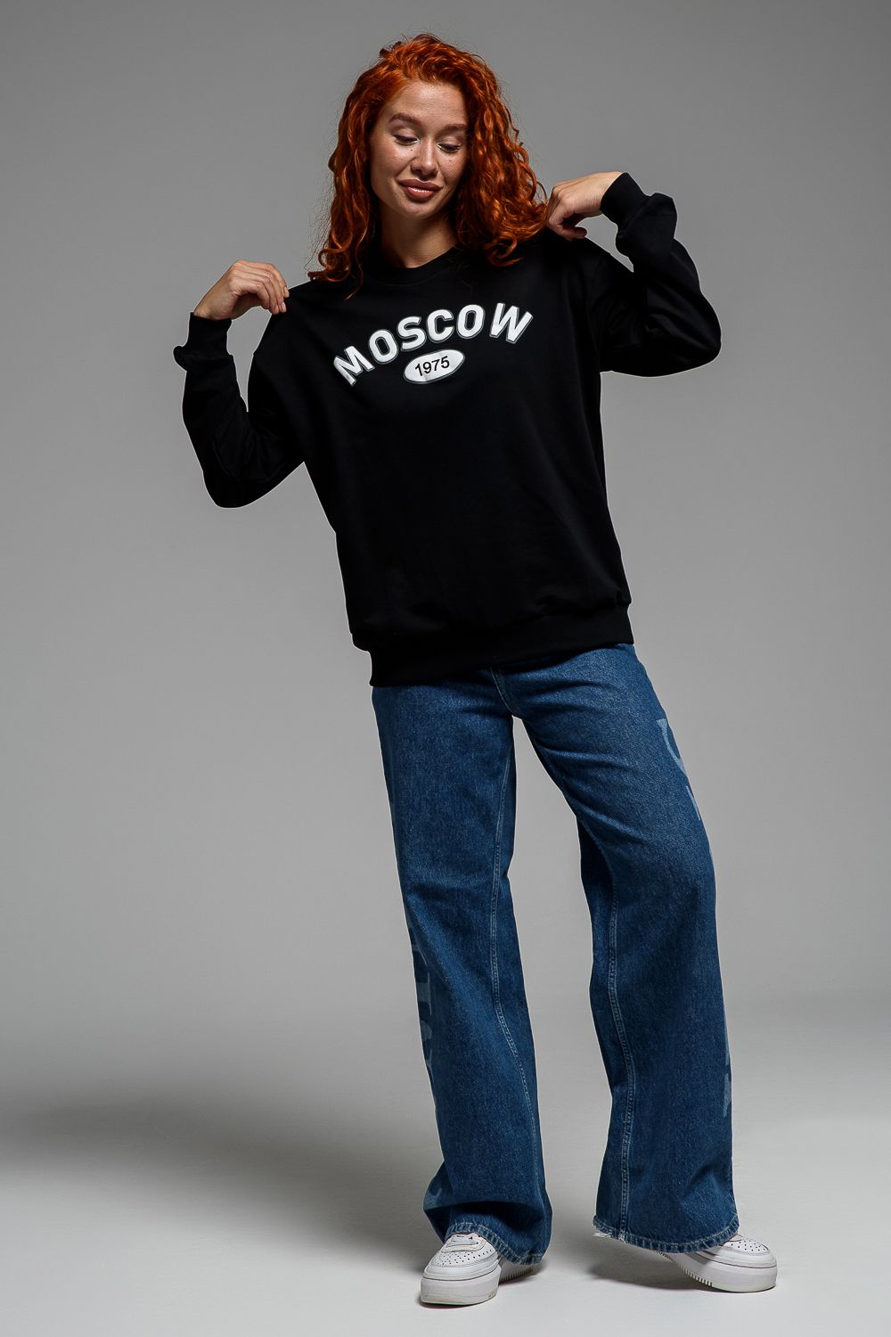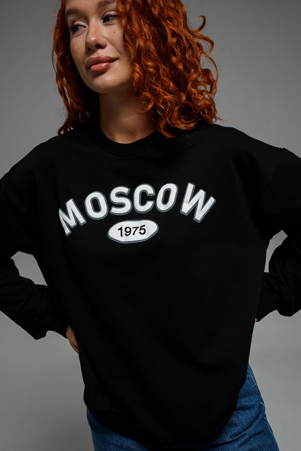 8536 Свитшот базовый женский - черный+Москва