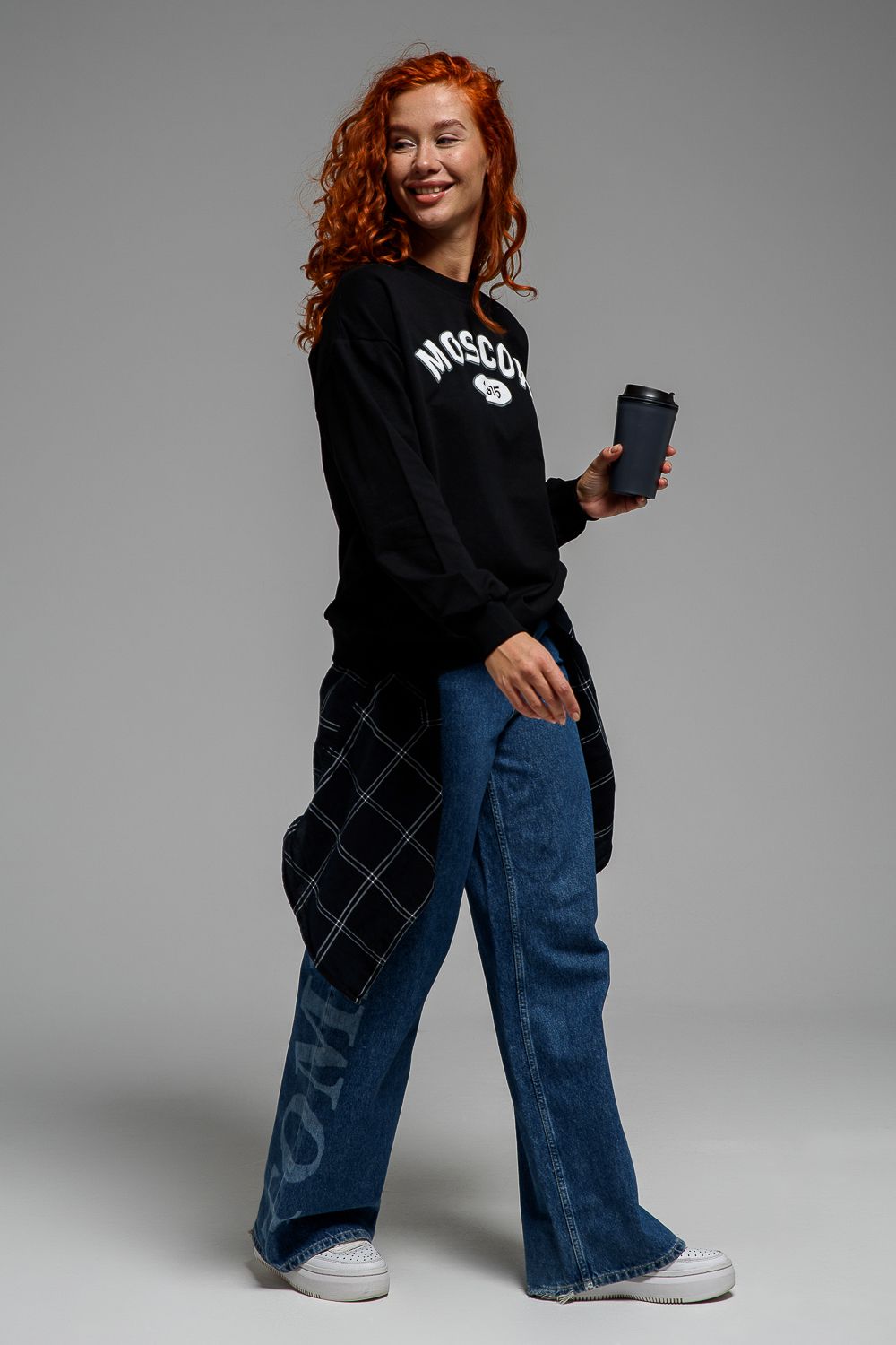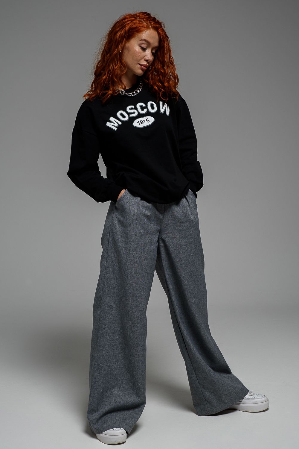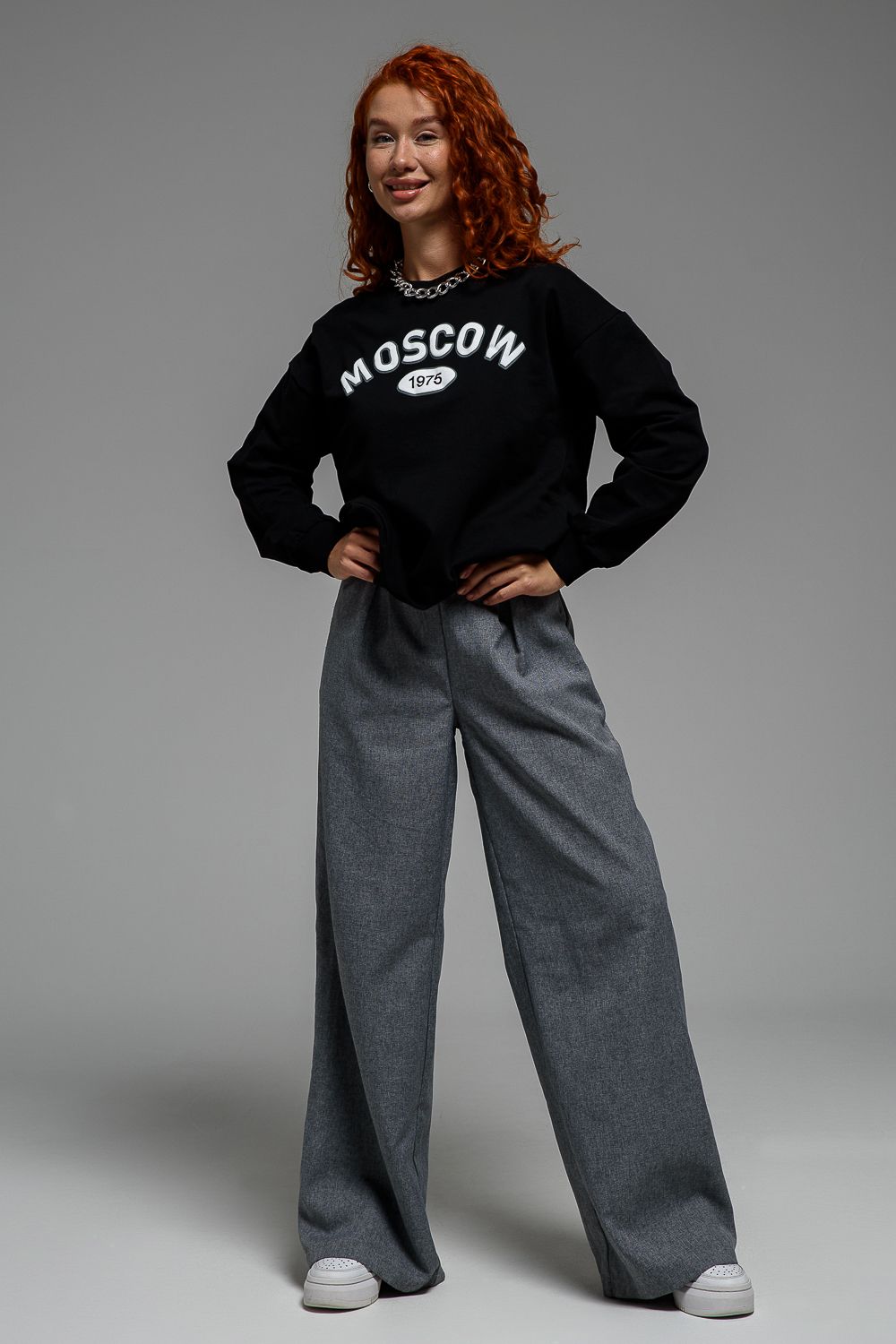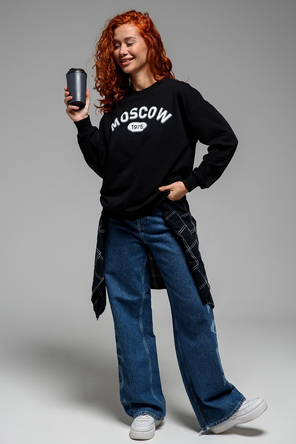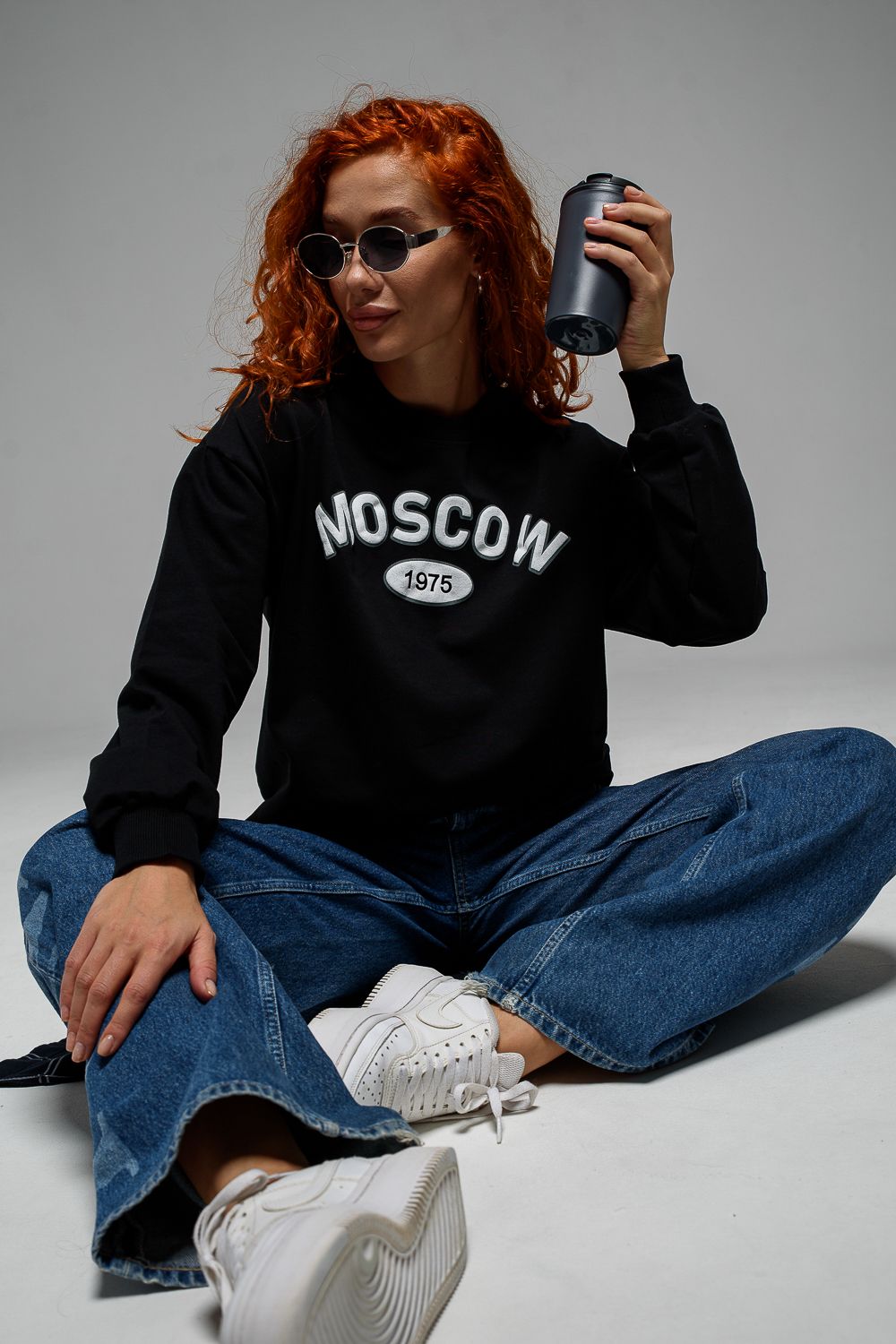 8536 Свитшот базовый женский - черный+Москва