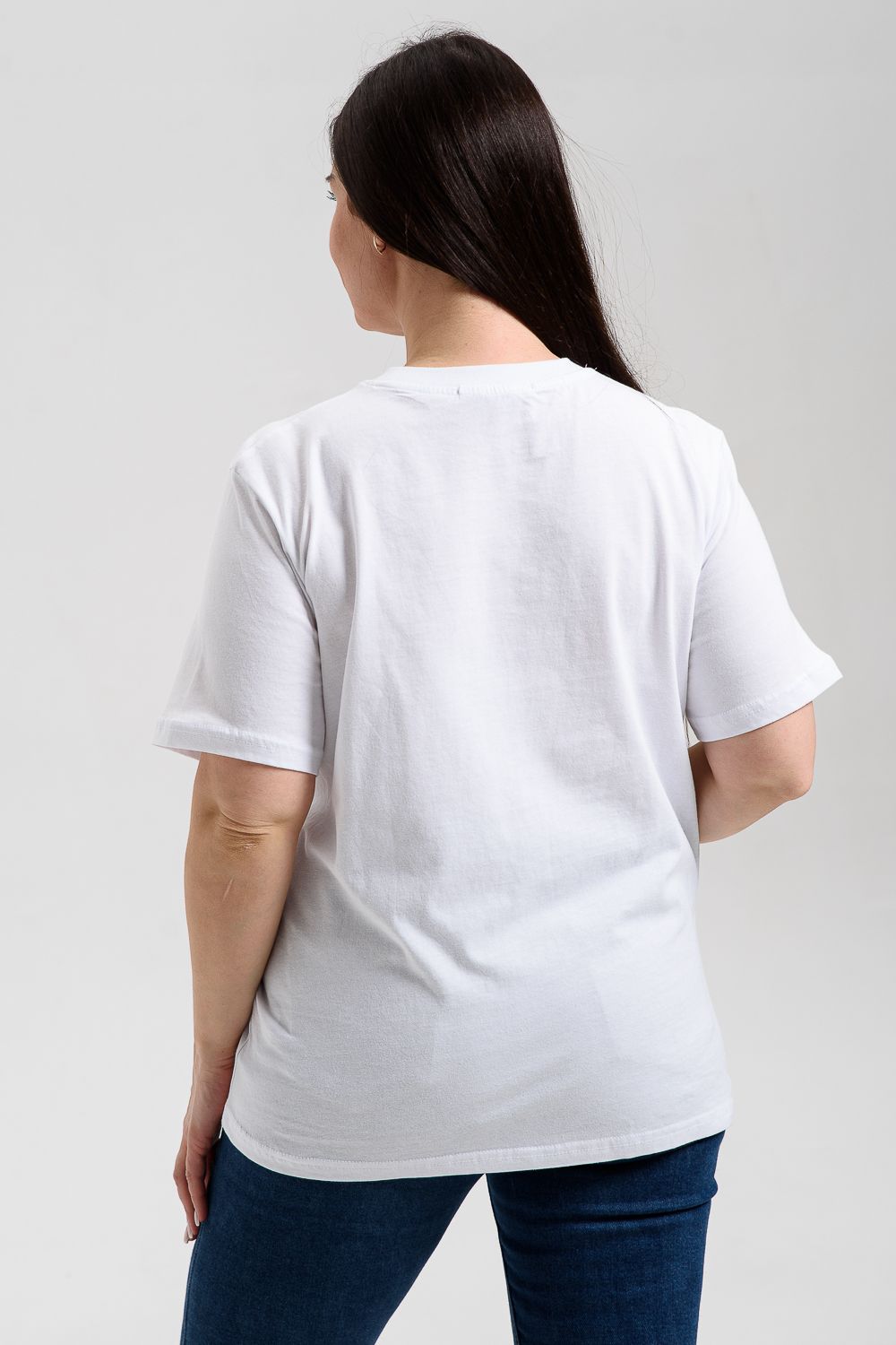 Ищете красивую и универсальную базовую одежду? Тогда вам понравится хлопковая футболка из коллекции нашего бренда Натали. Однотонная модель представлена в модном белом цвете, который уже стал трендом сезона. Сшита из дышащей ткани, в составе 100% хлопок. Плотный и мягкий трикотажный материал высокого качества не дает усадки после стирки. Трендовая футболочка с ярким принтом удобная и красивая одежда для женщин, которая имеет качественный пошив.