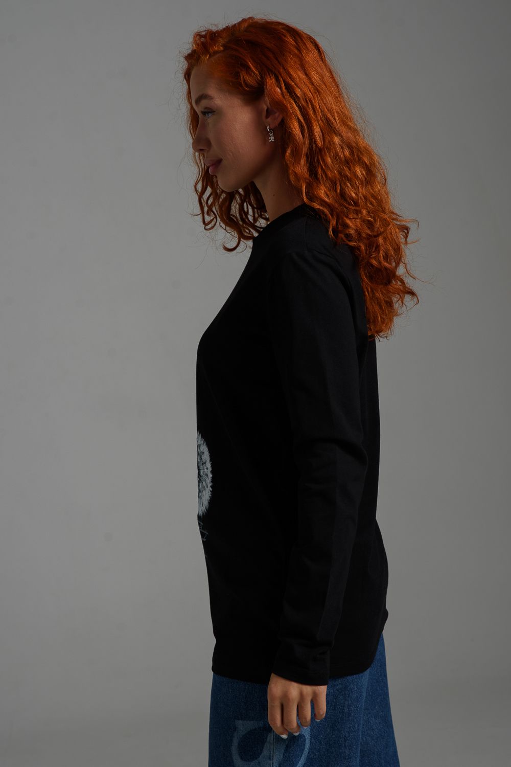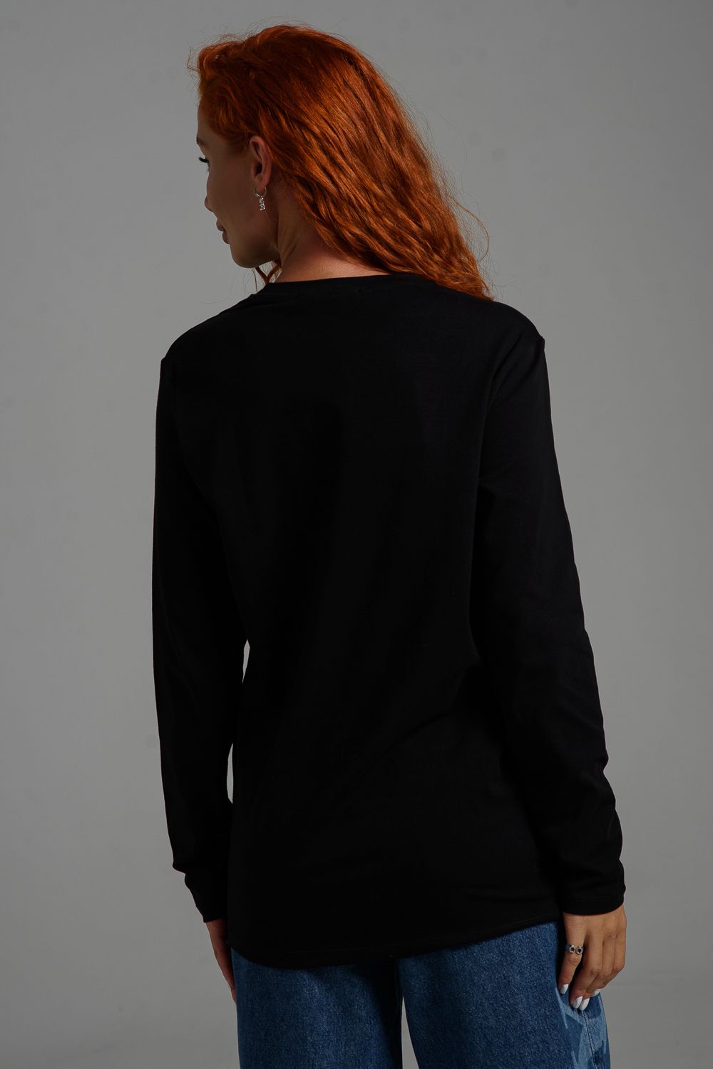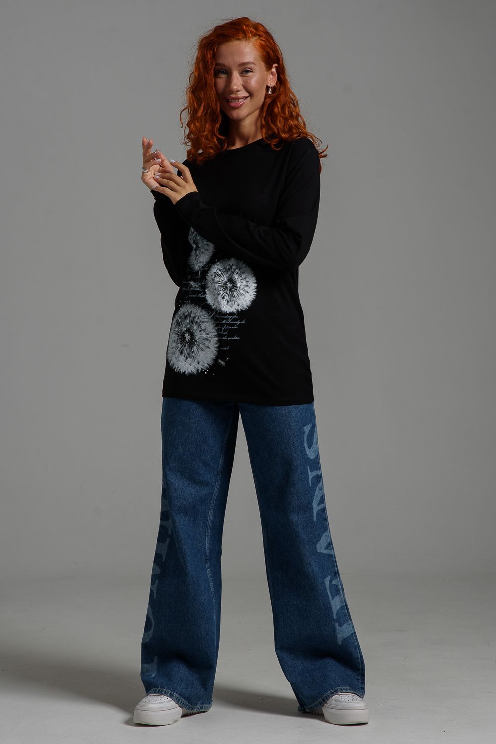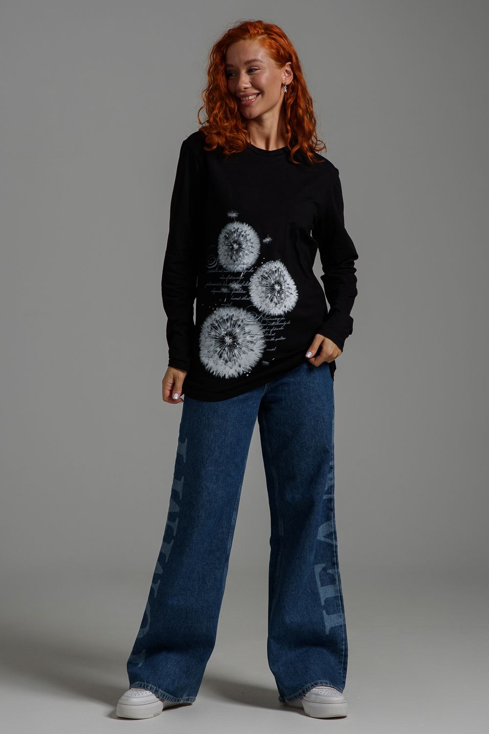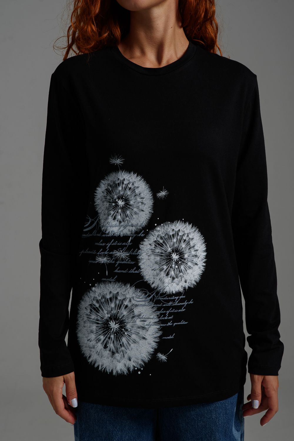 8543 Футболка с длинным рукавом женская - черный+одуванчик