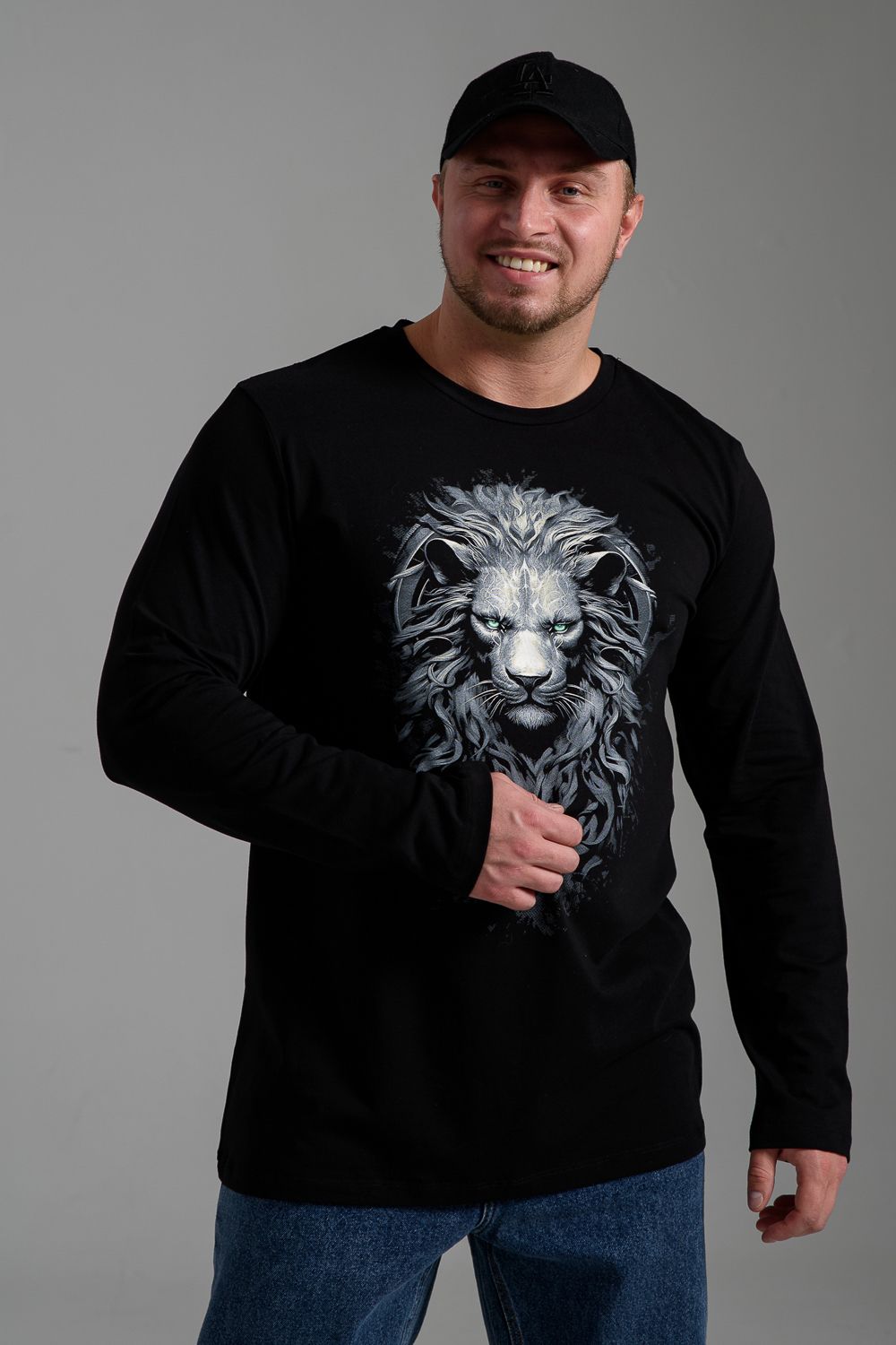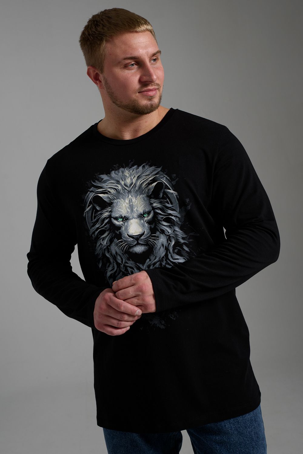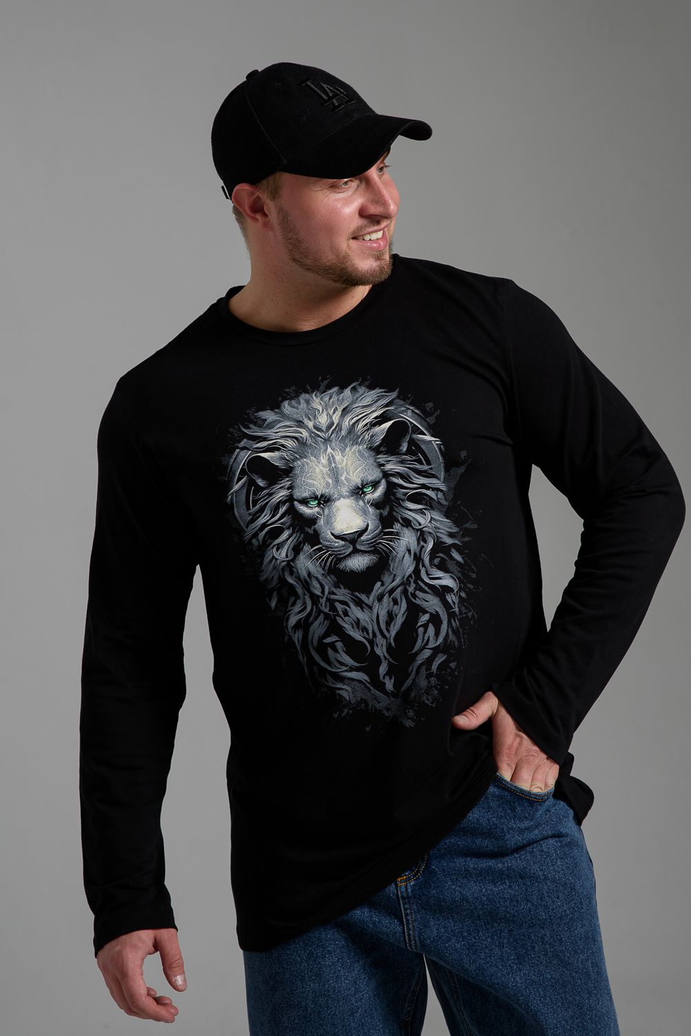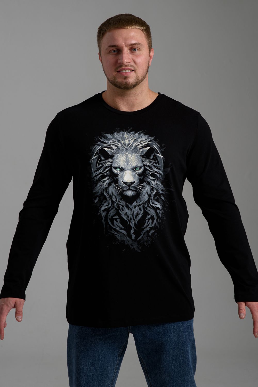 8546 Футболка с длинным рукавом мужская - черный+глаза льва