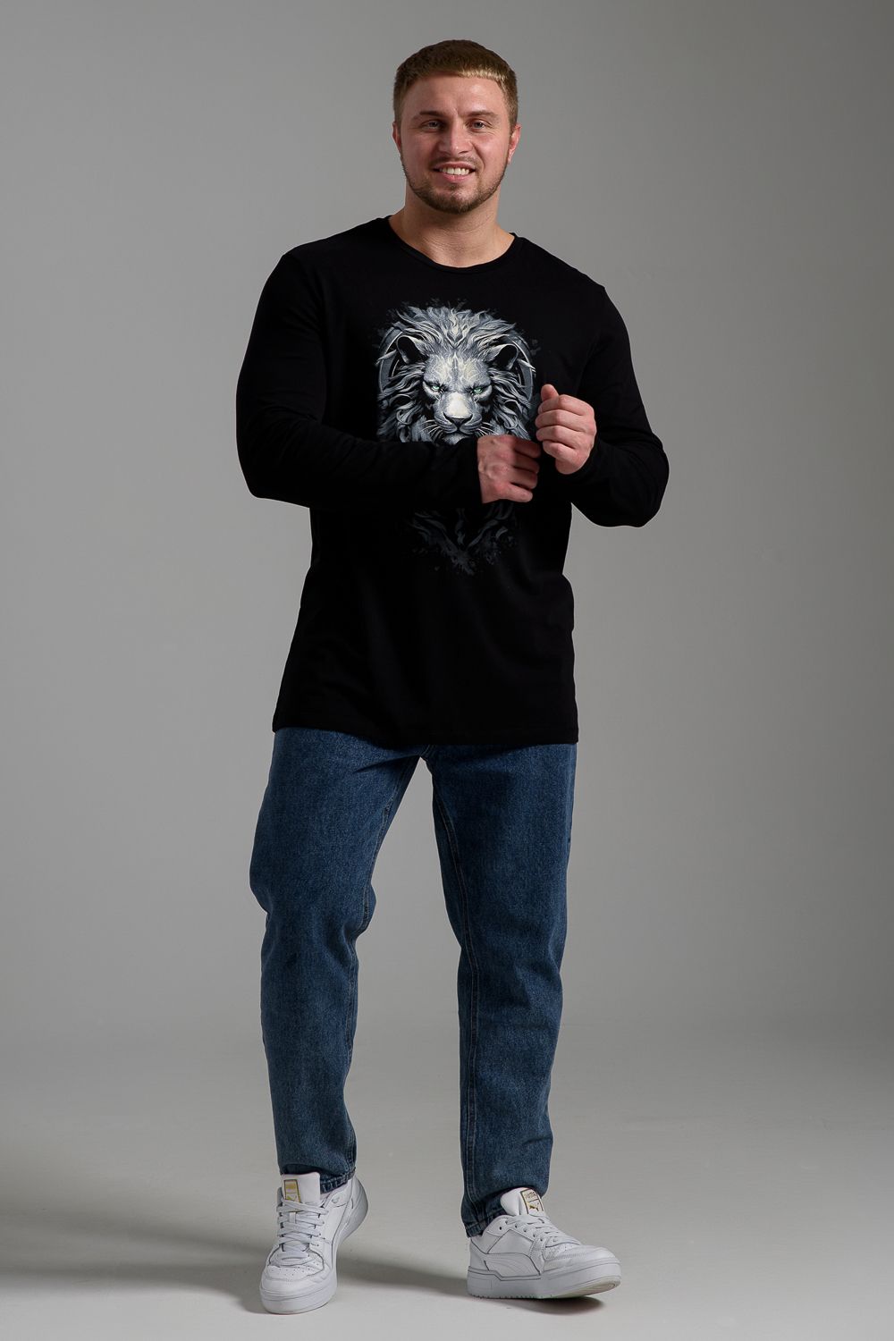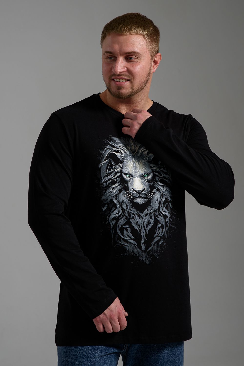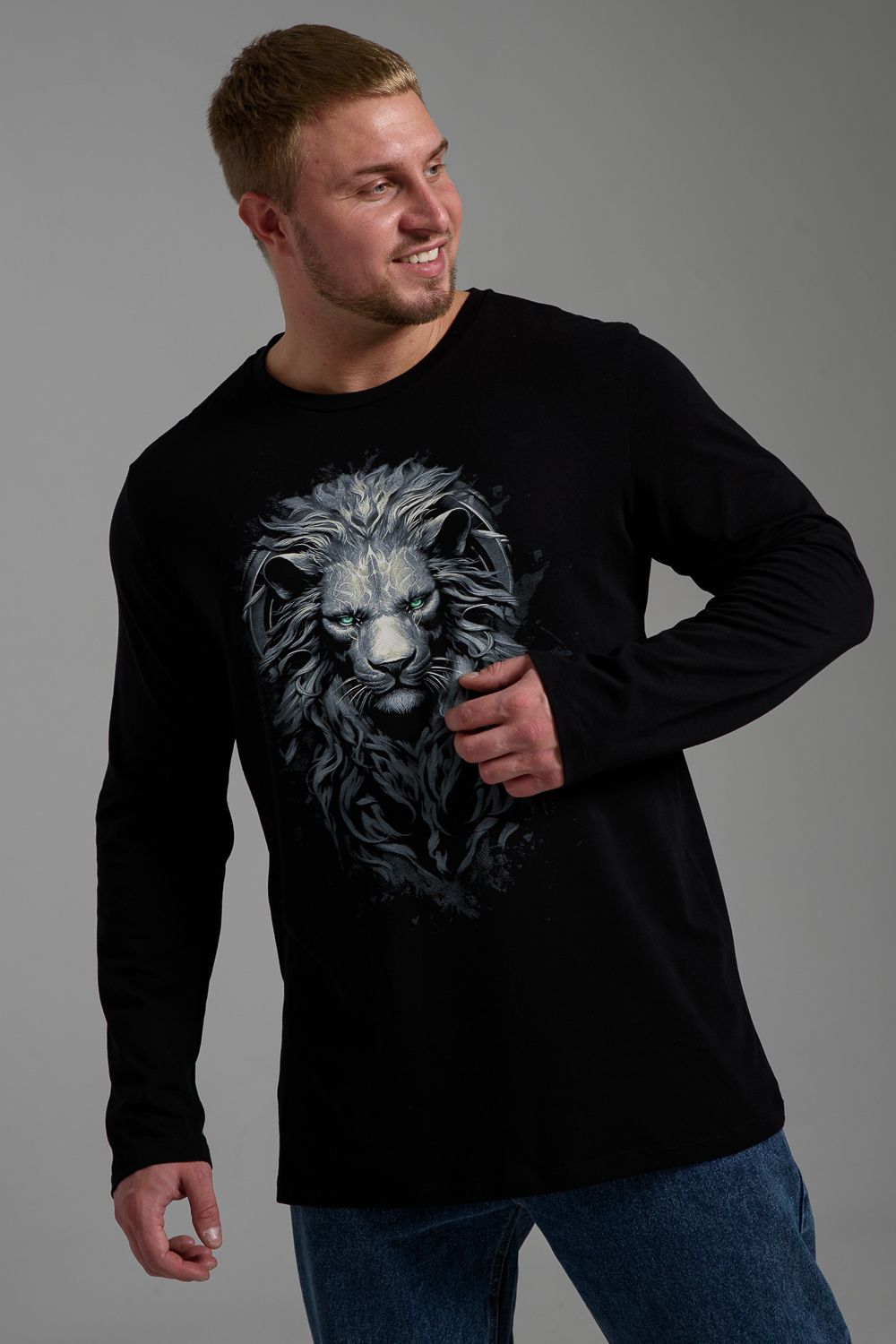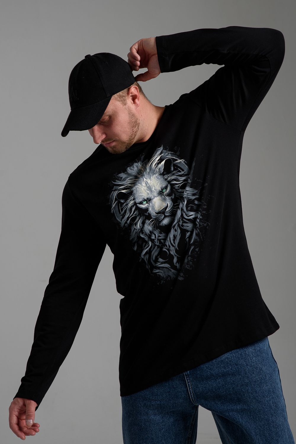 8546 Футболка с длинным рукавом мужская - черный+глаза льва