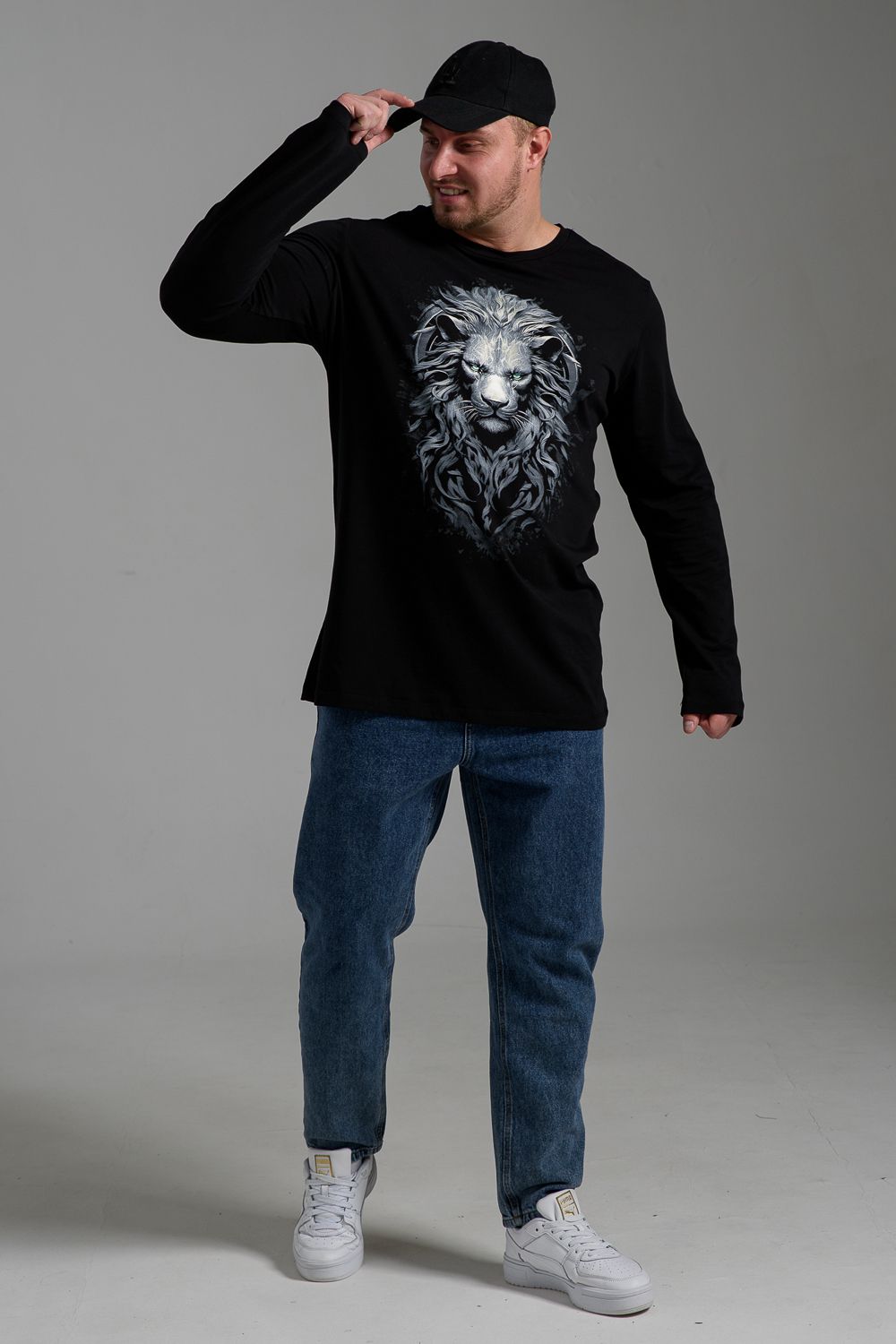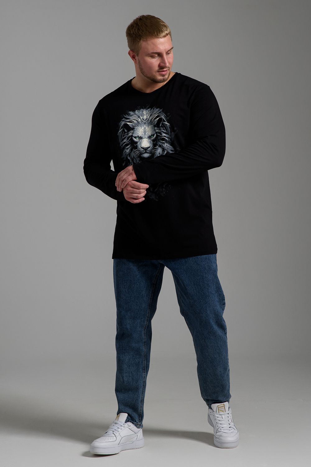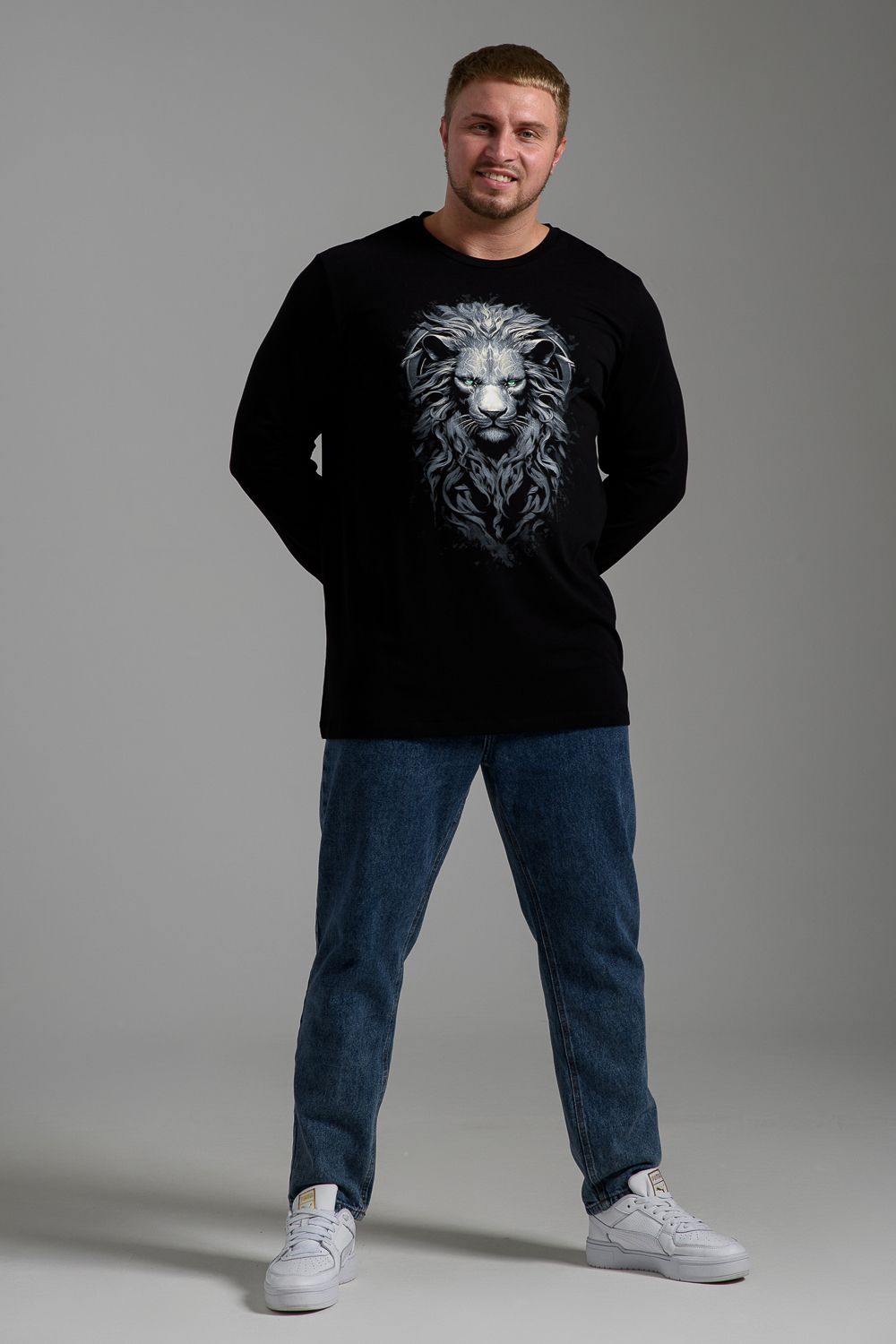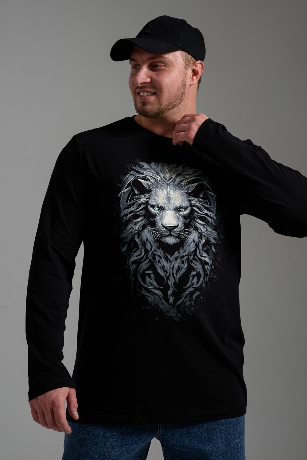 8546 Футболка с длинным рукавом мужская - черный+глаза льва