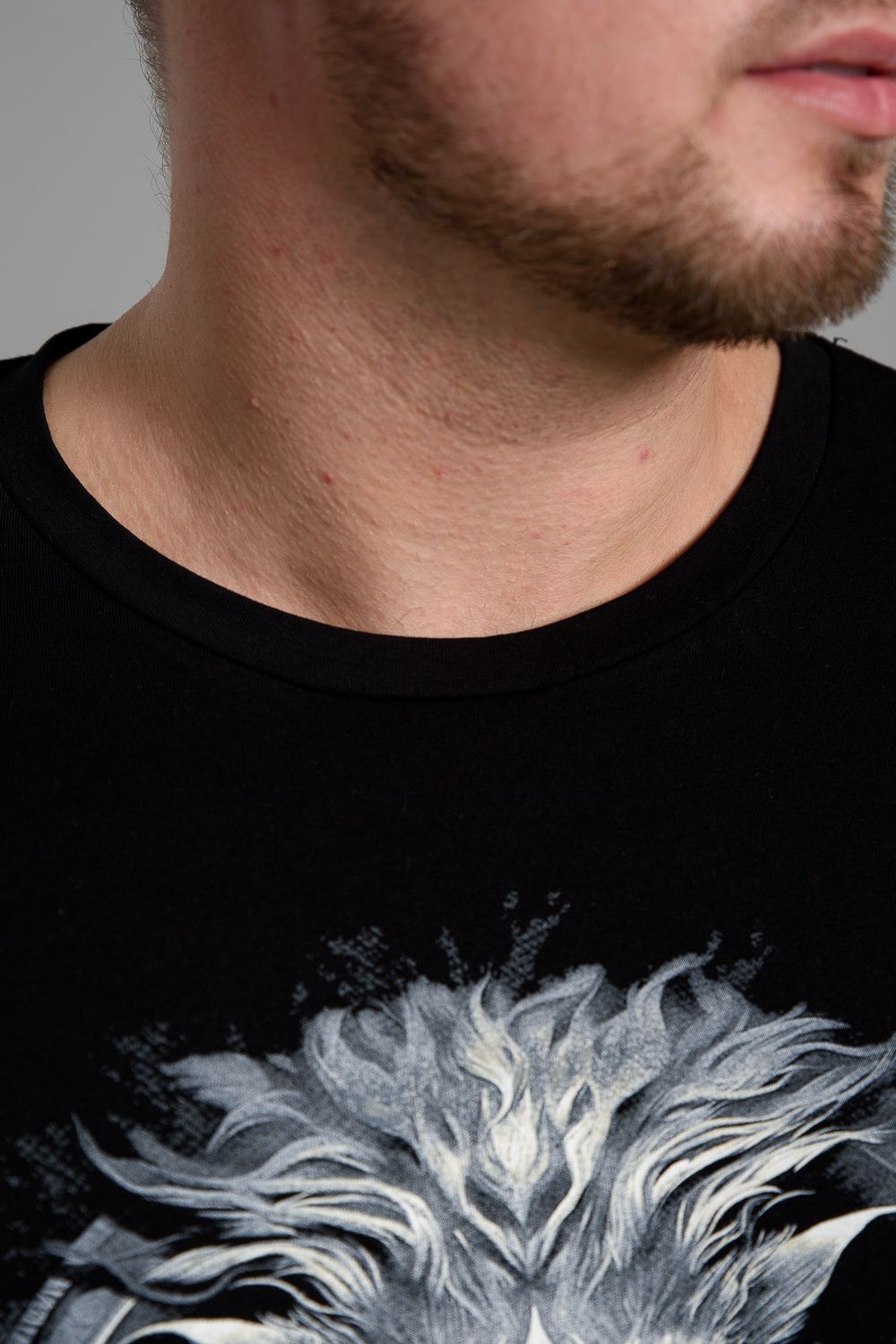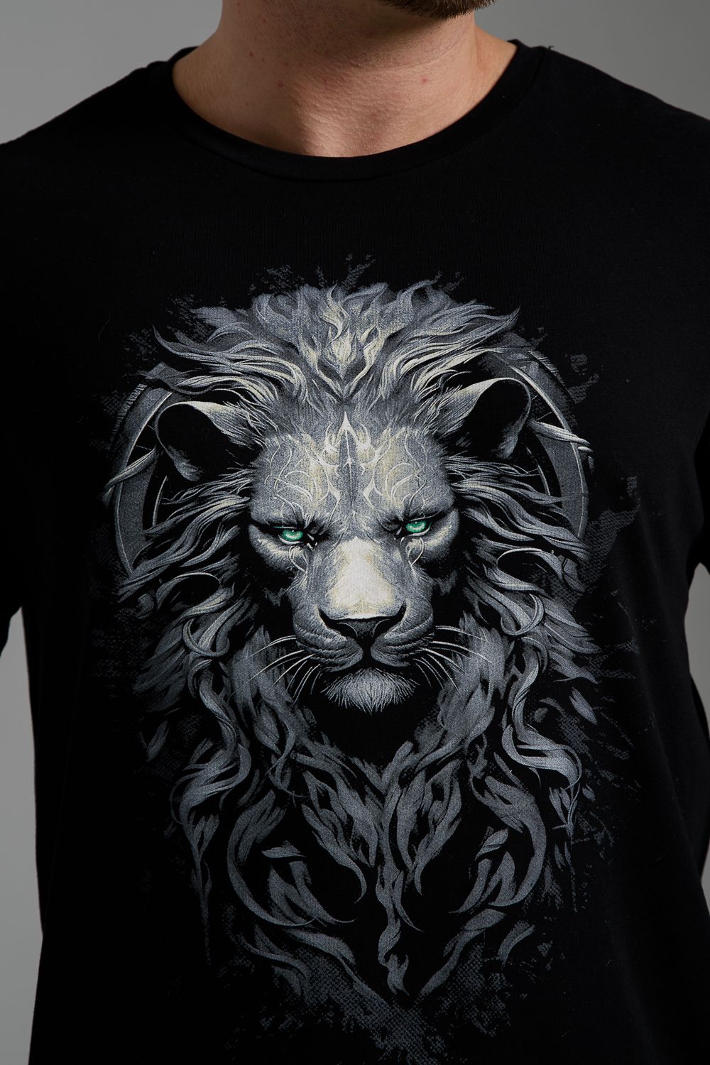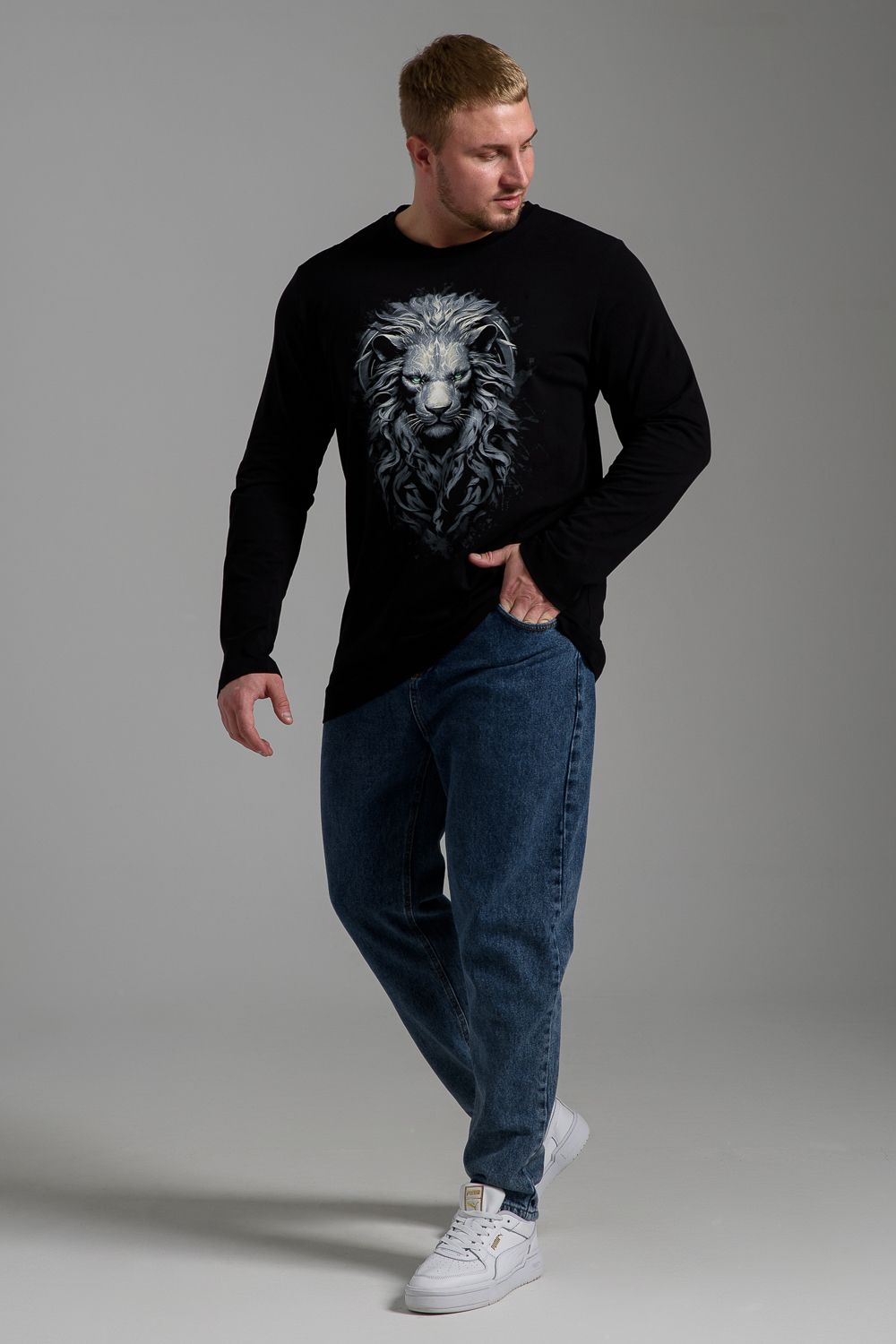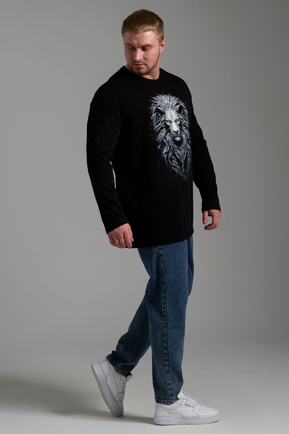8546 Футболка с длинным рукавом мужская - черный+глаза льва