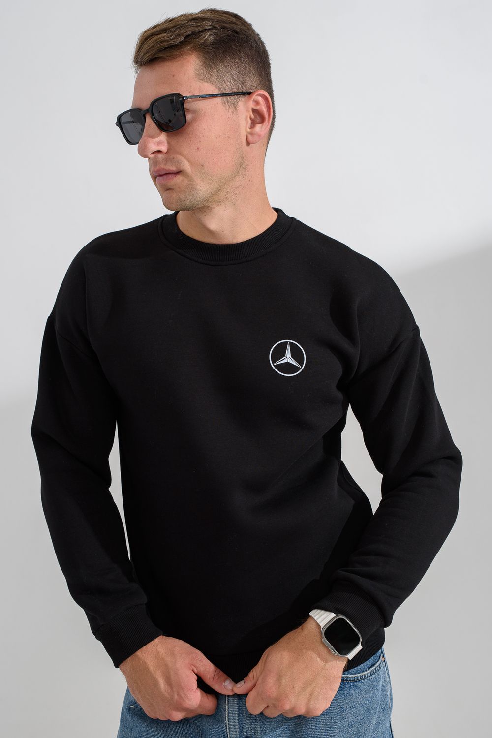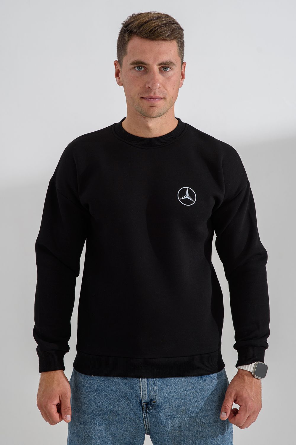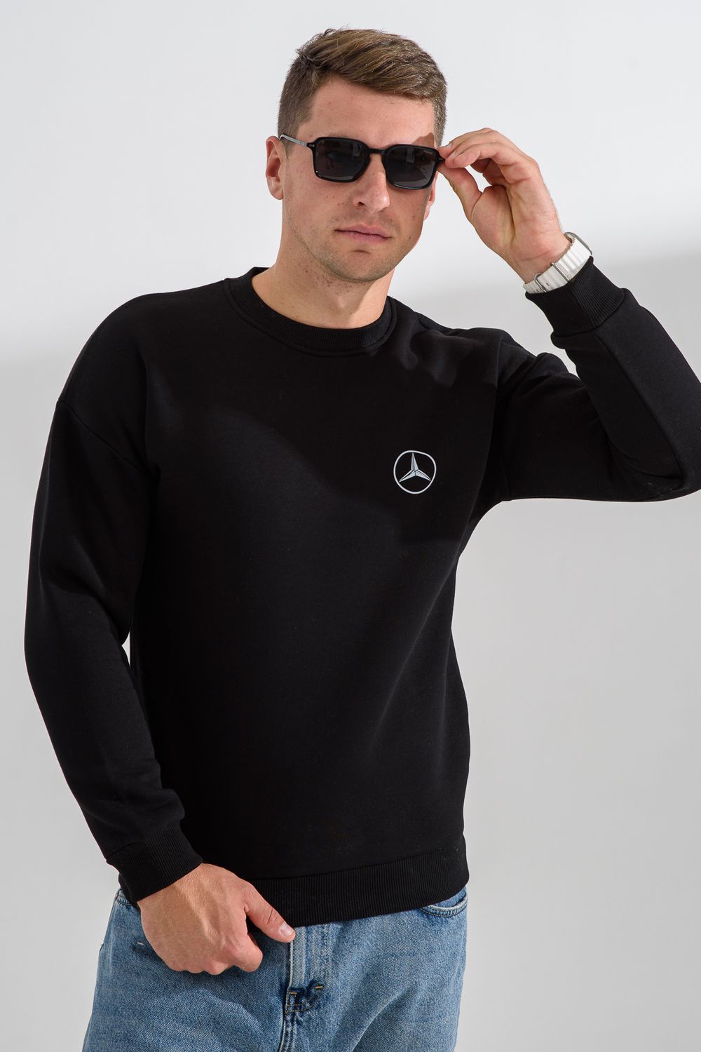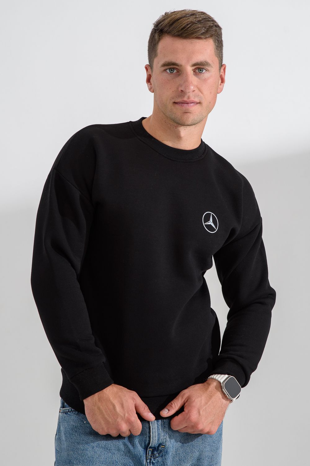 8559 свитшот мужской - черный+мерседес