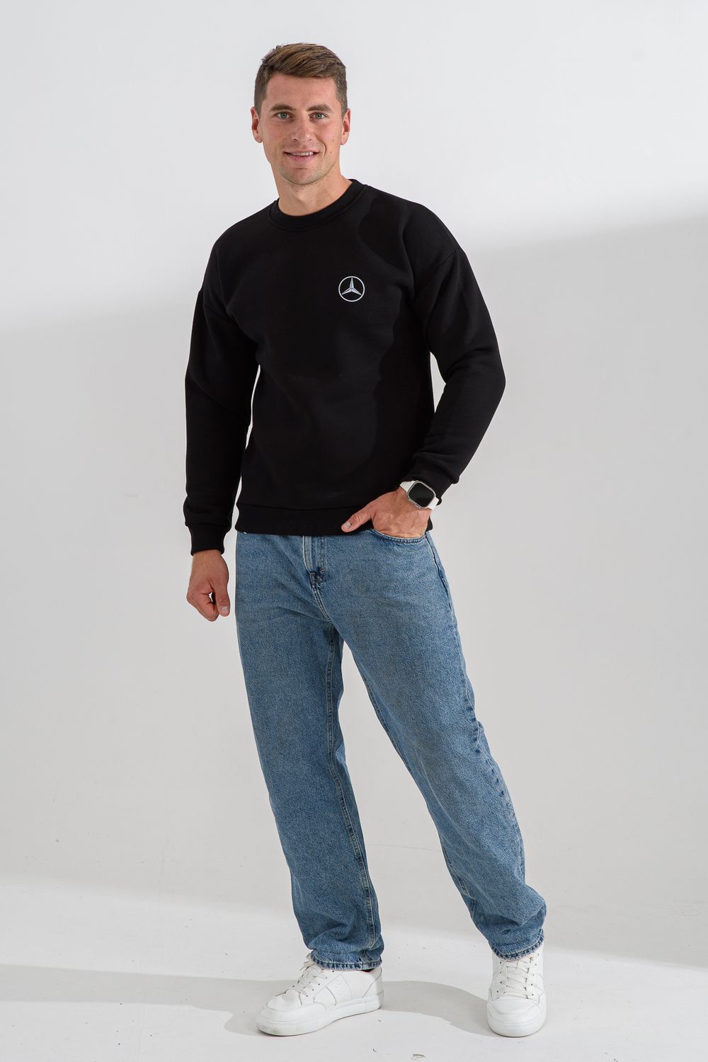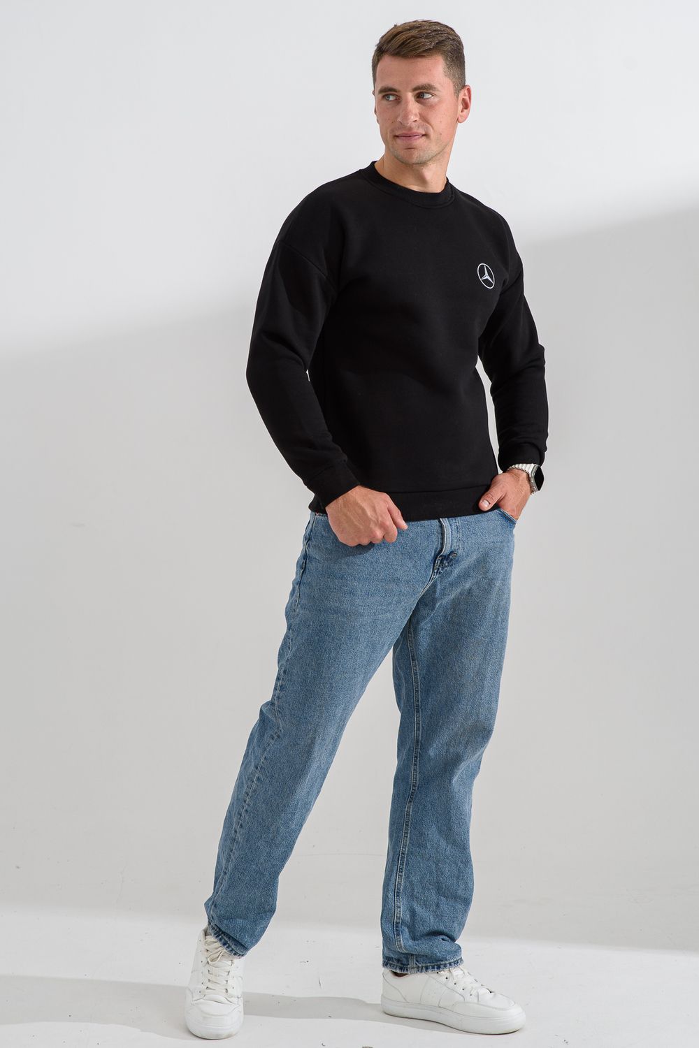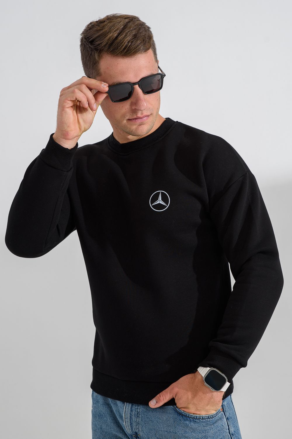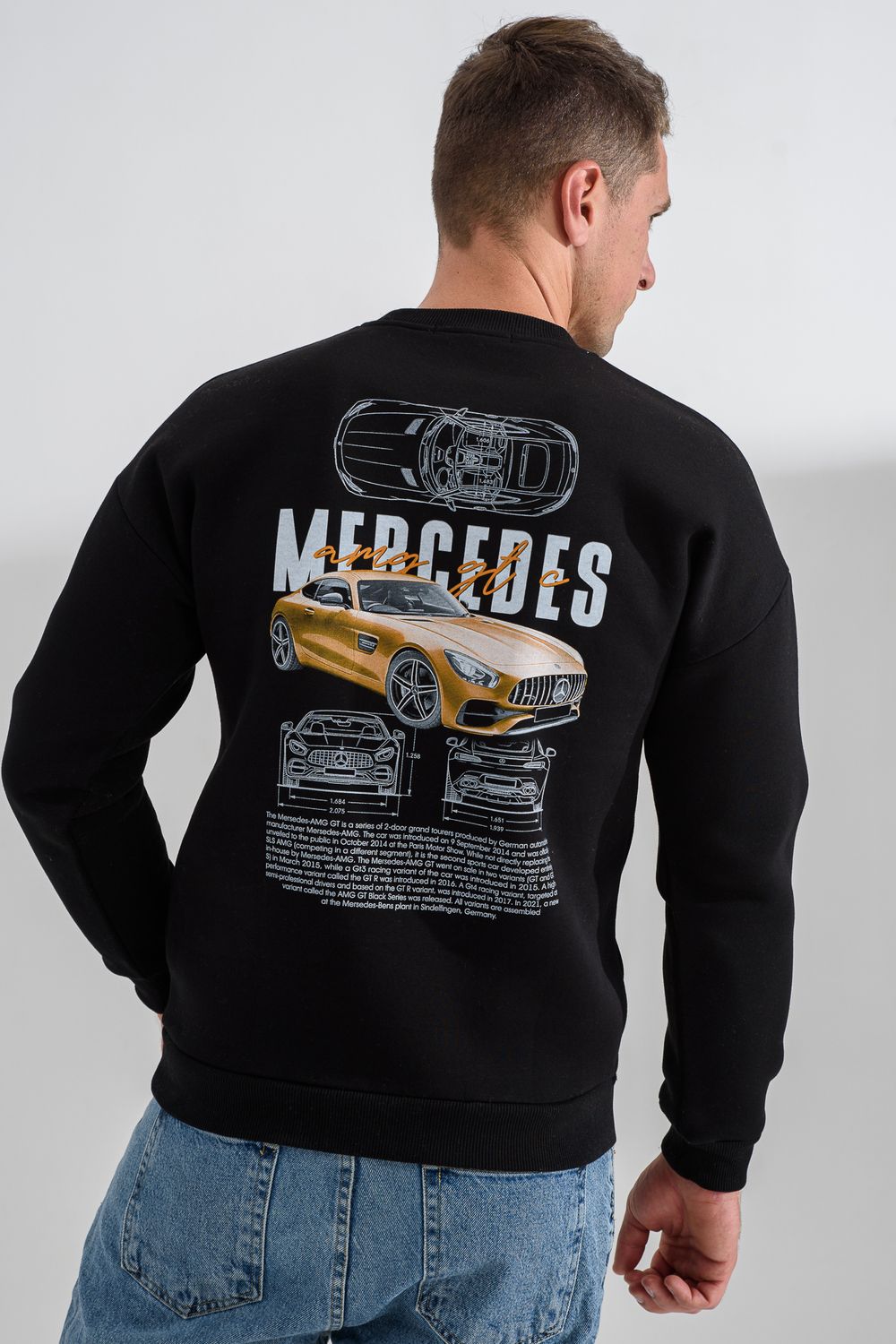 8559 свитшот мужской - черный+мерседес