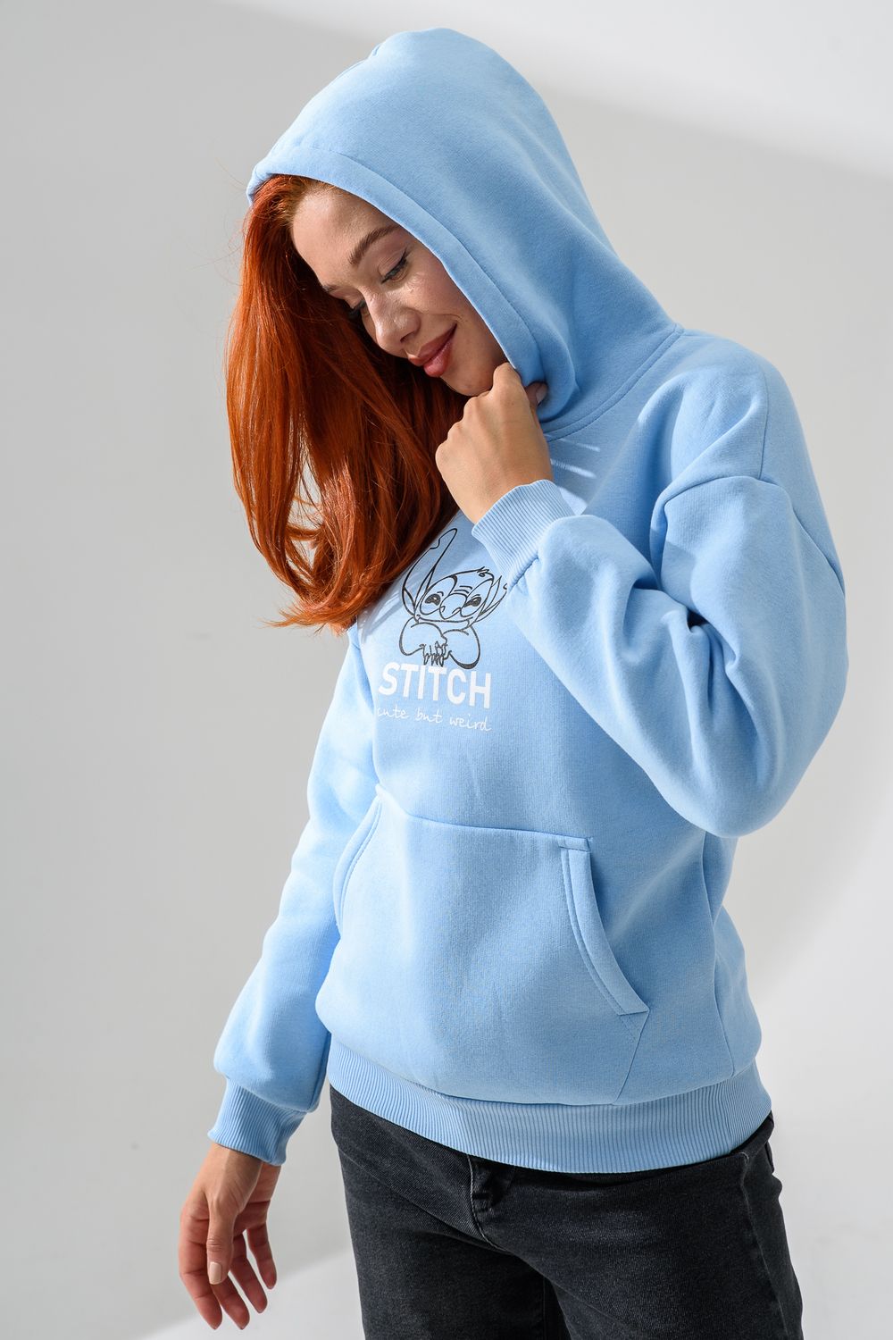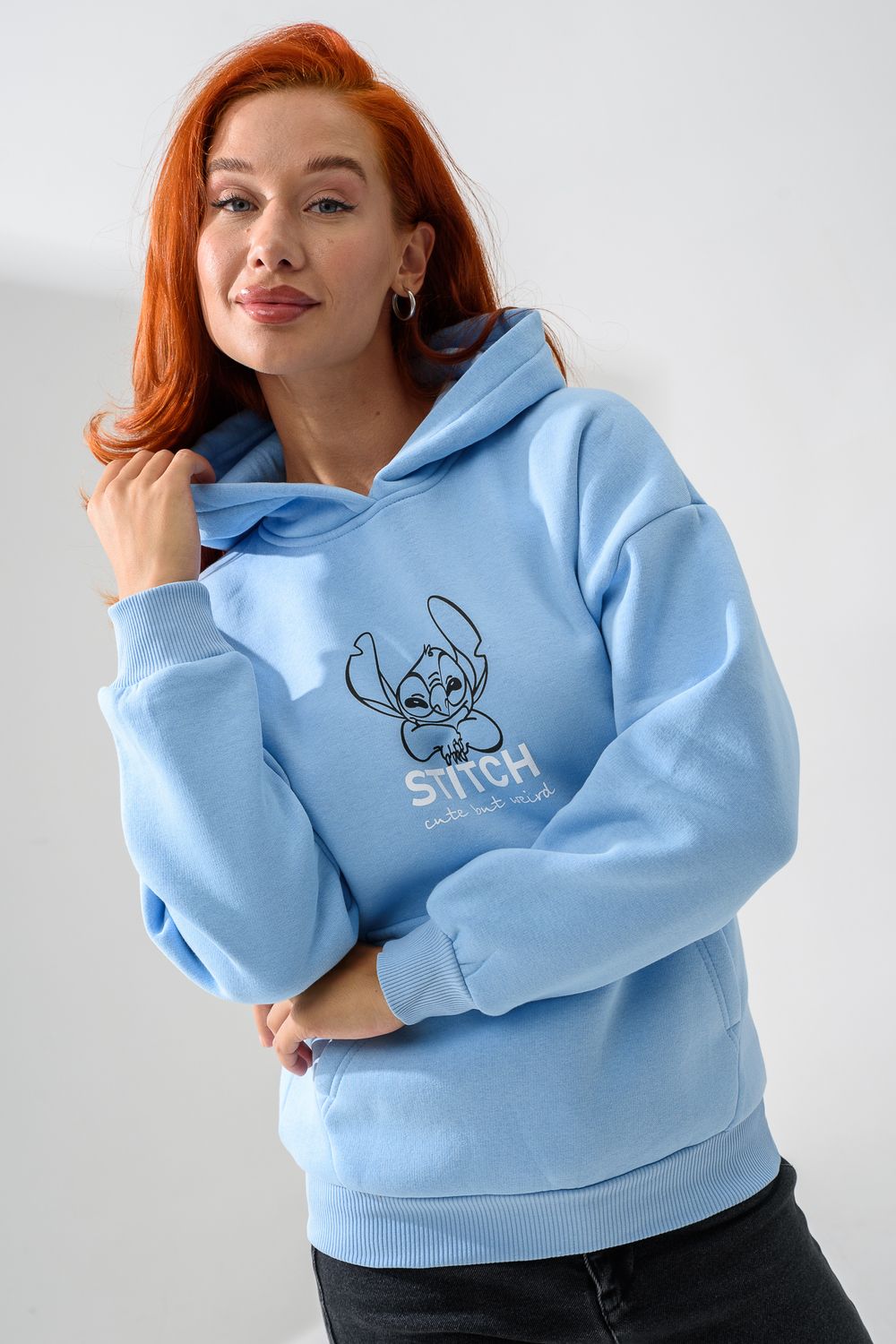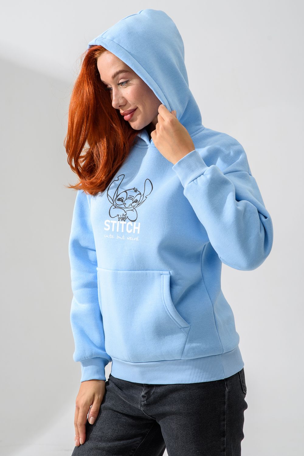 8565 толстовка женская оверсайз - голубой+стич