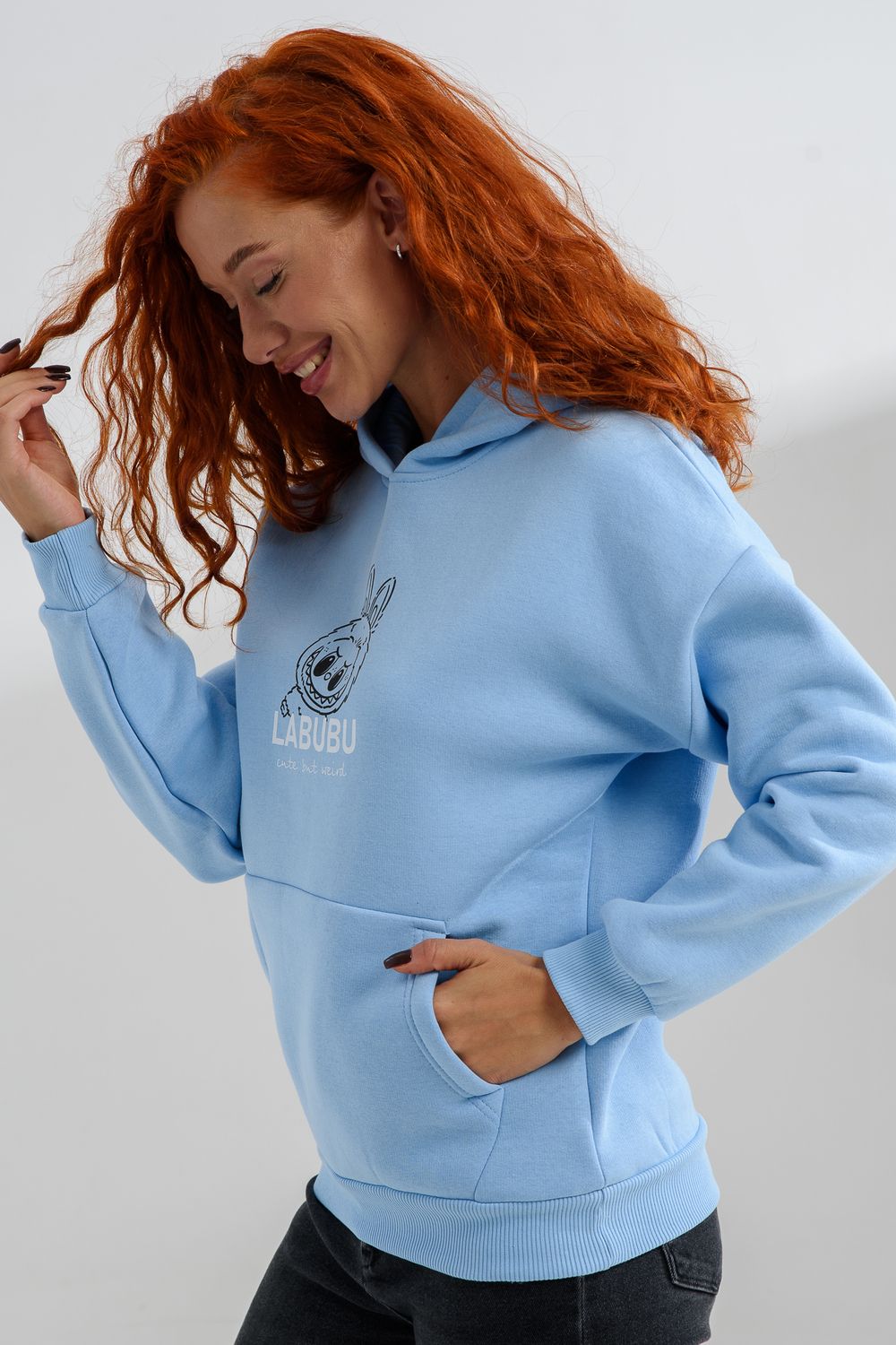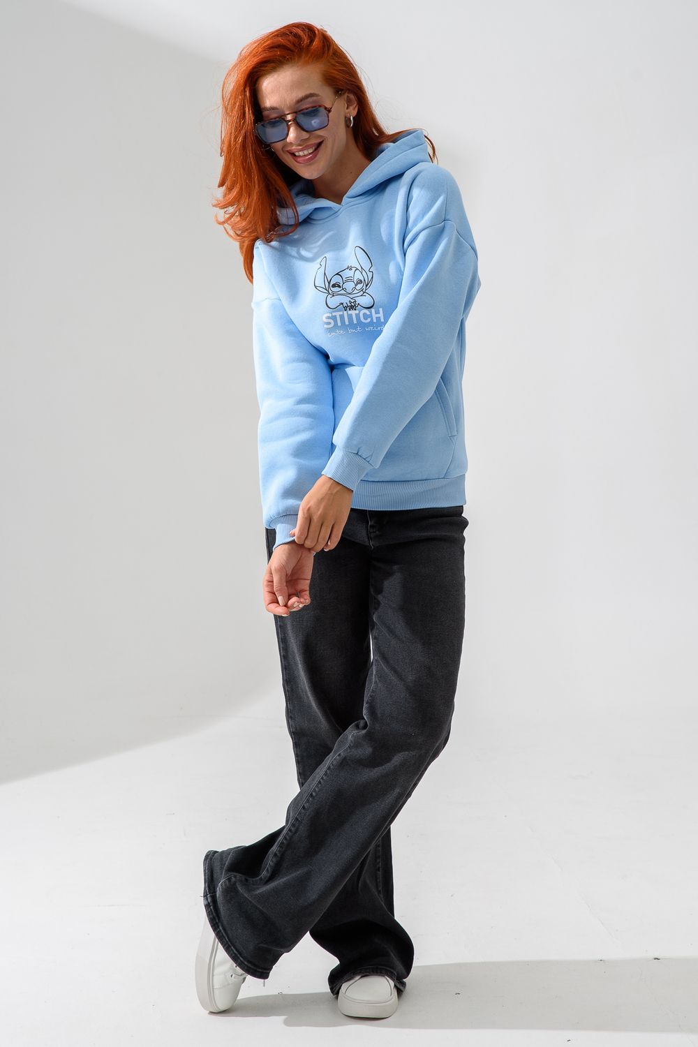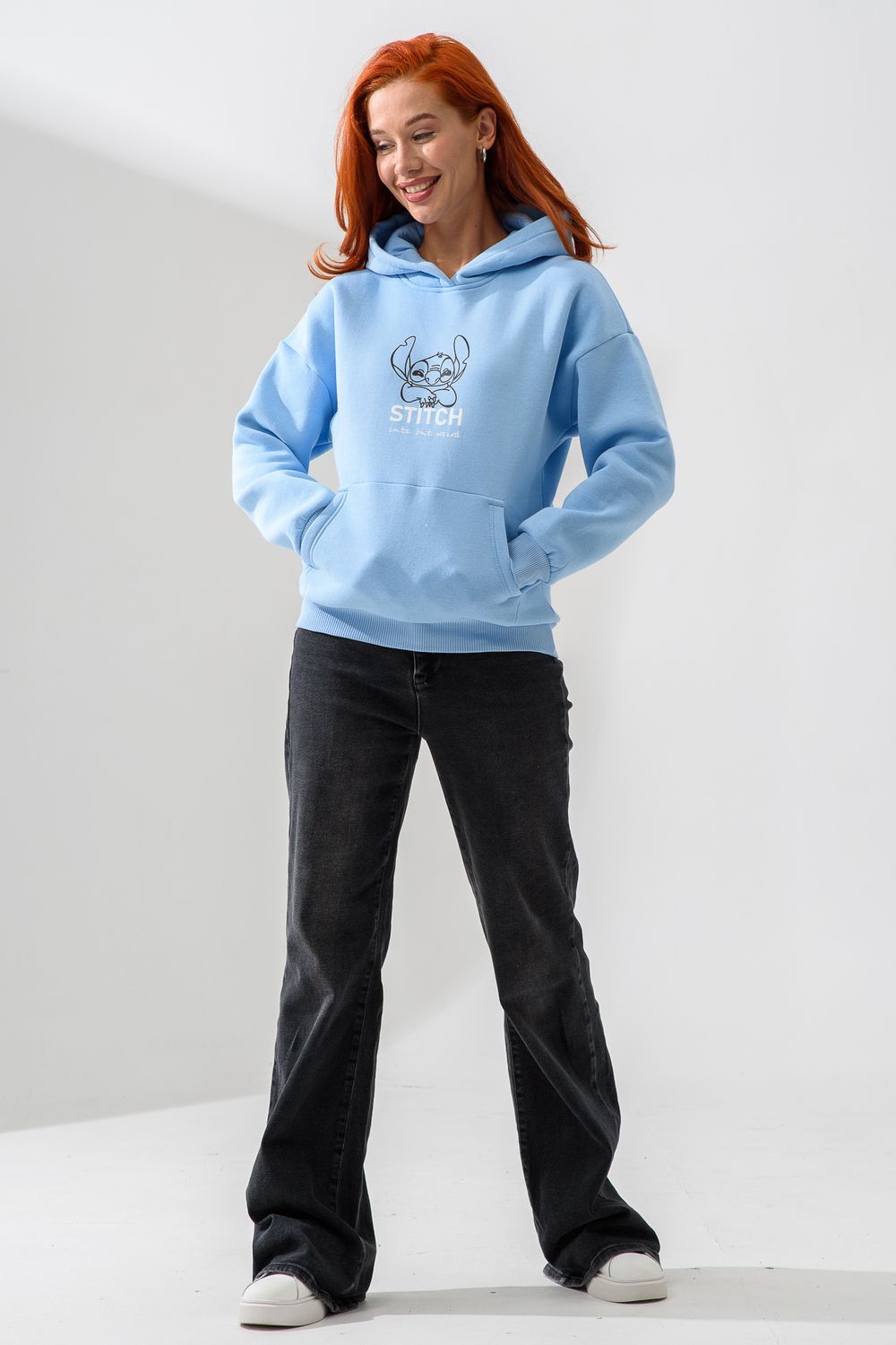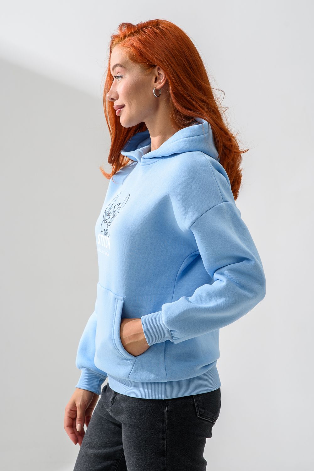 8565 толстовка женская оверсайз - голубой+стич