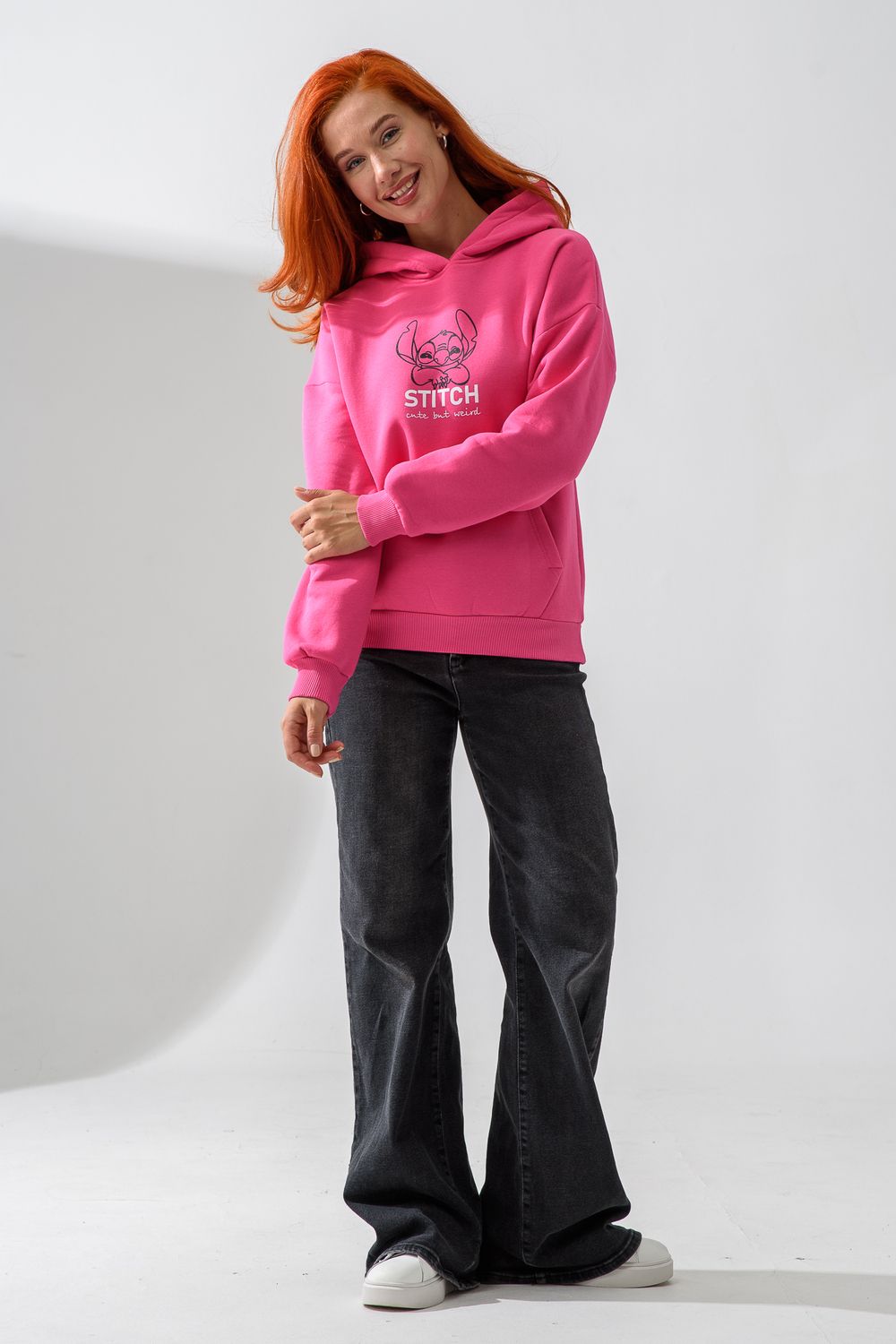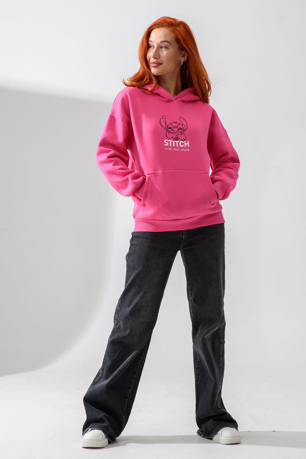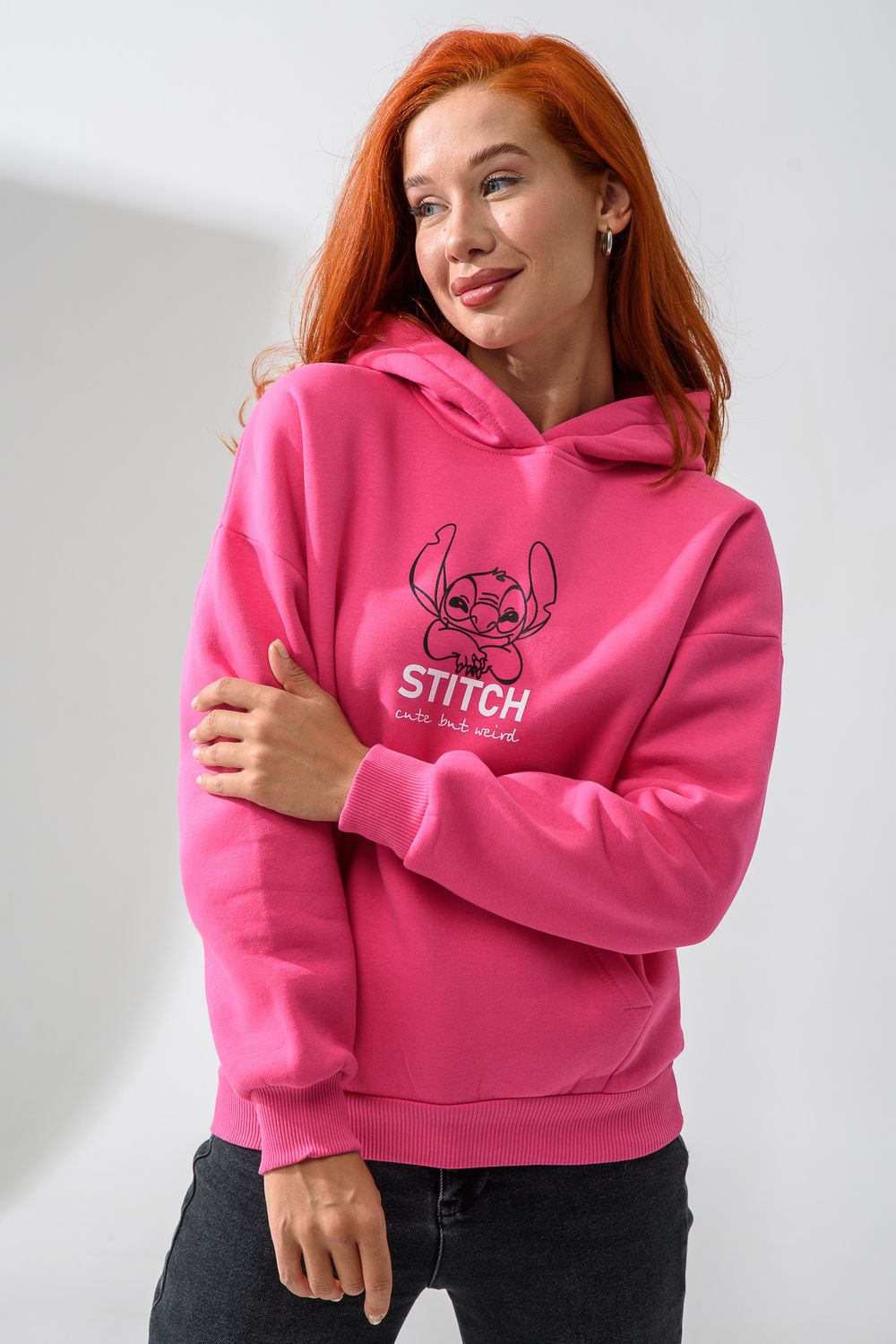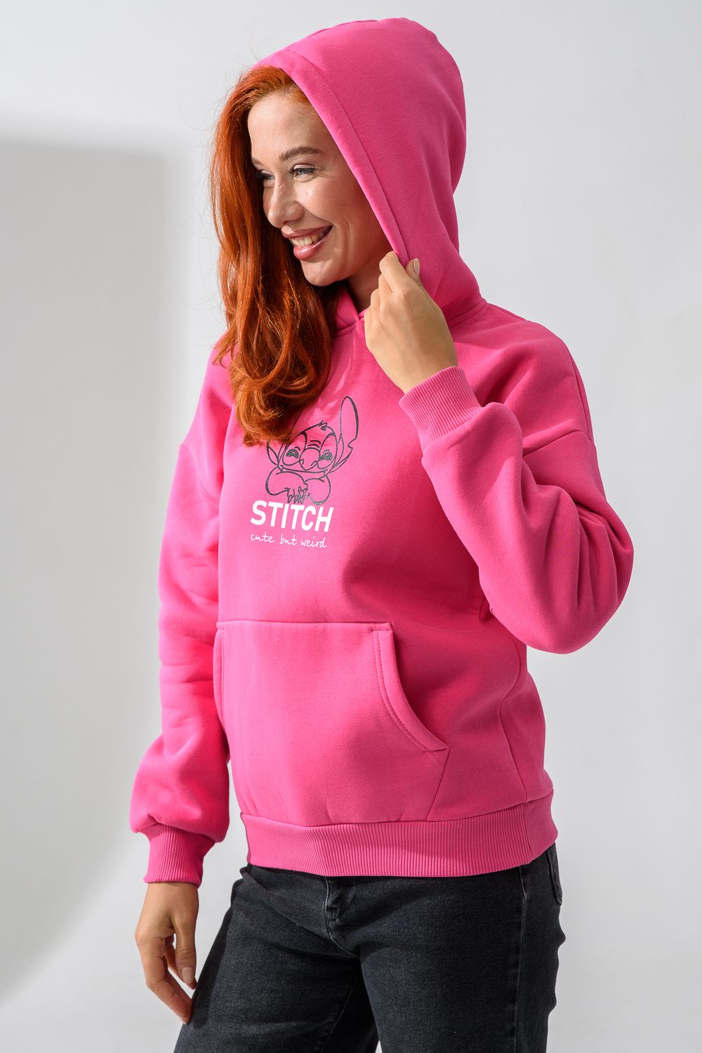 8565 толстовка женская оверсайз - розовый+стич