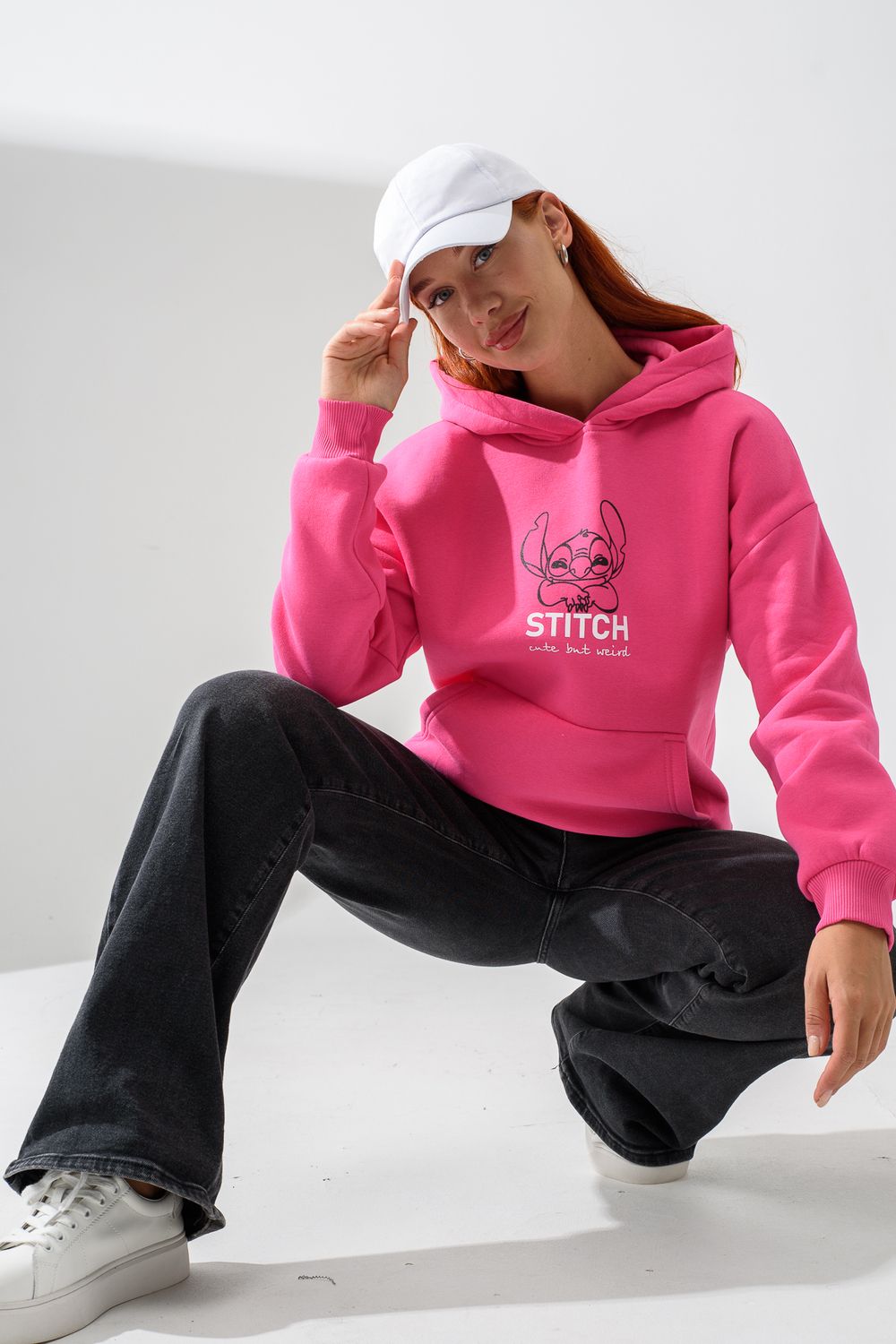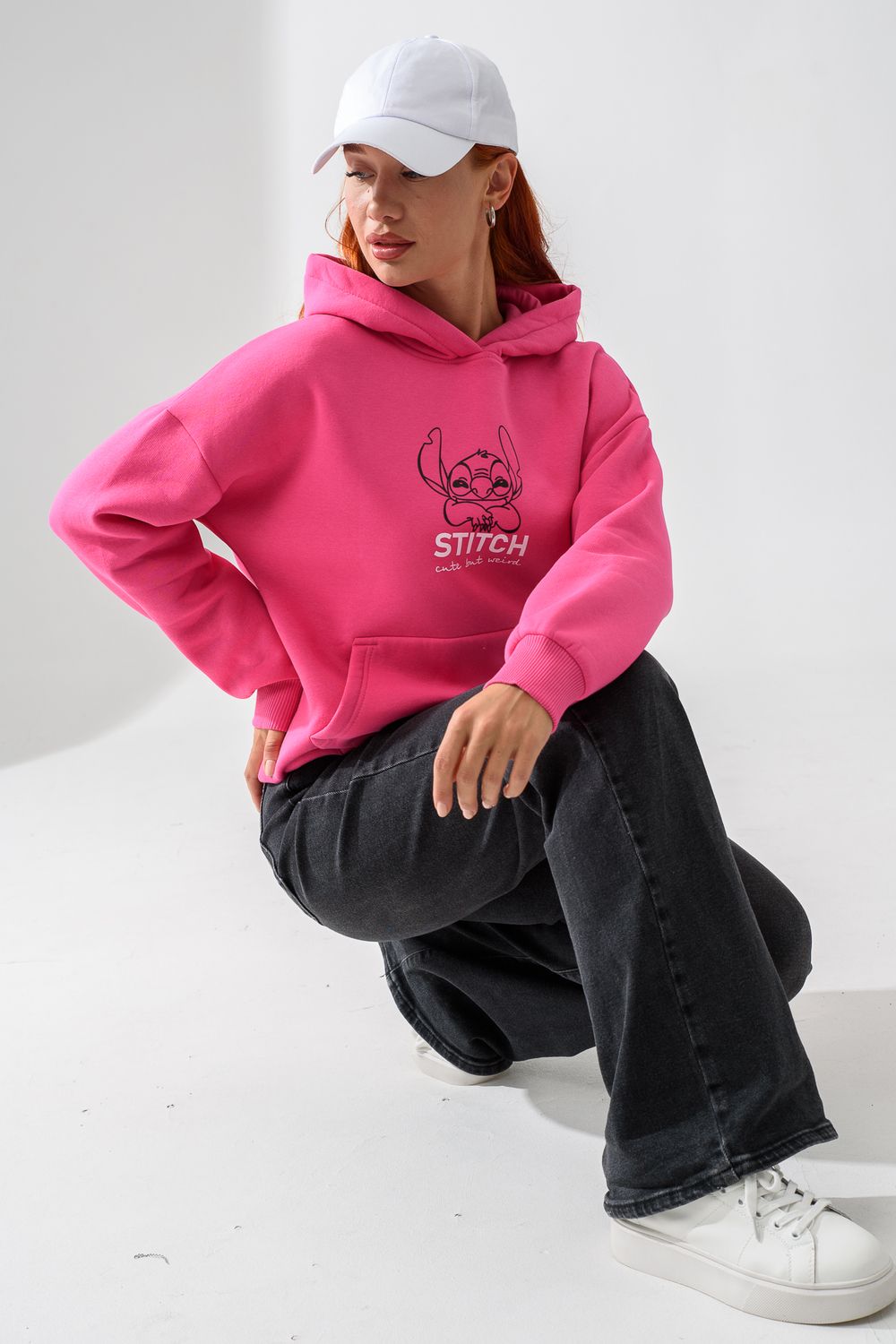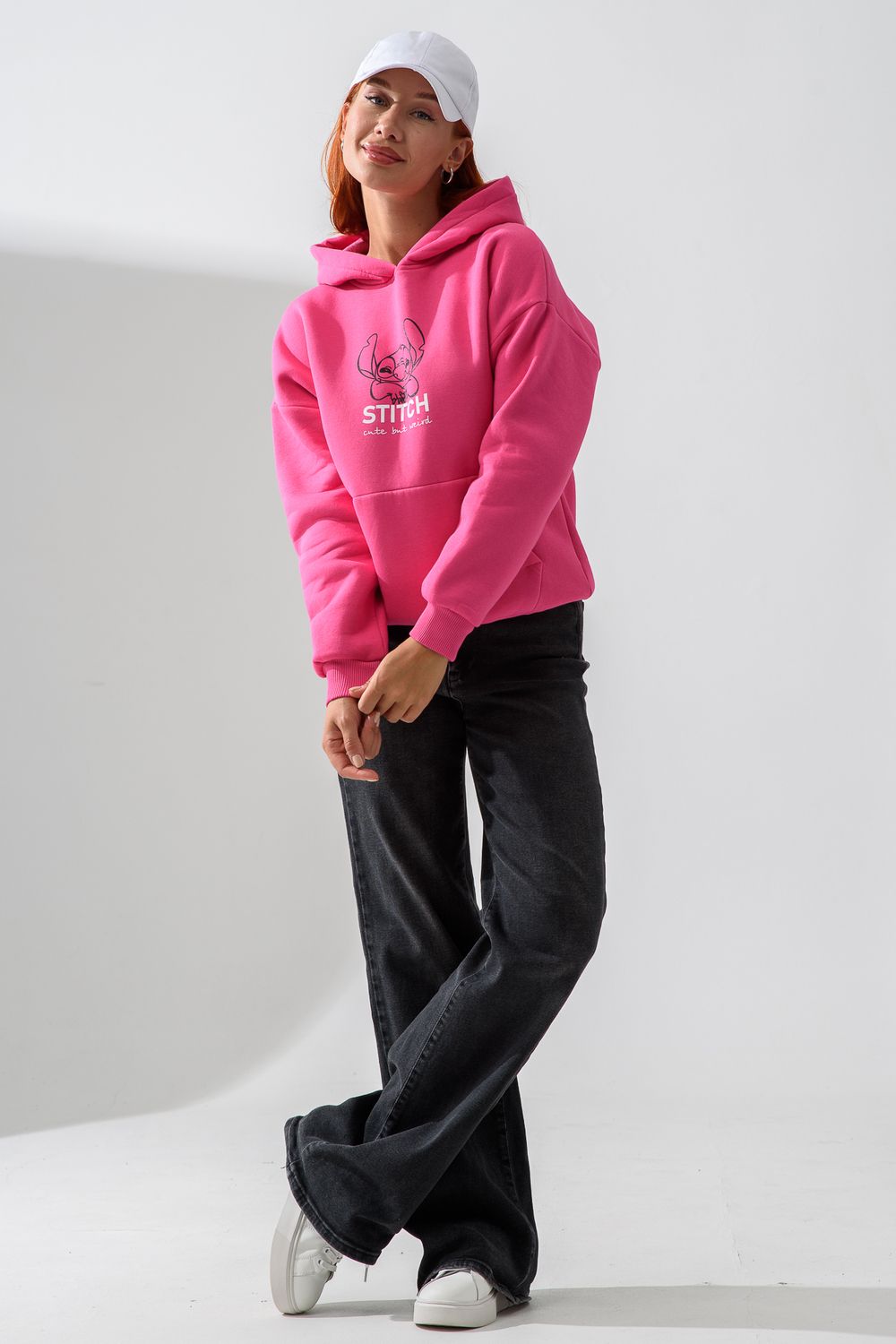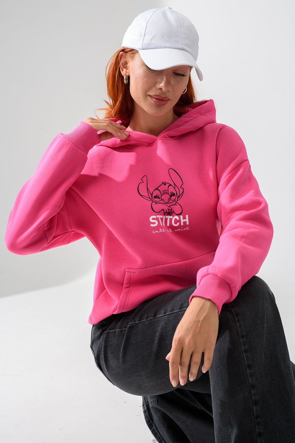 8565 толстовка женская оверсайз - розовый+стич
