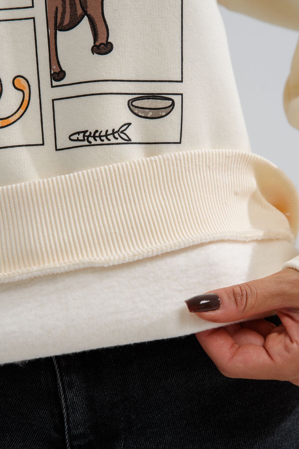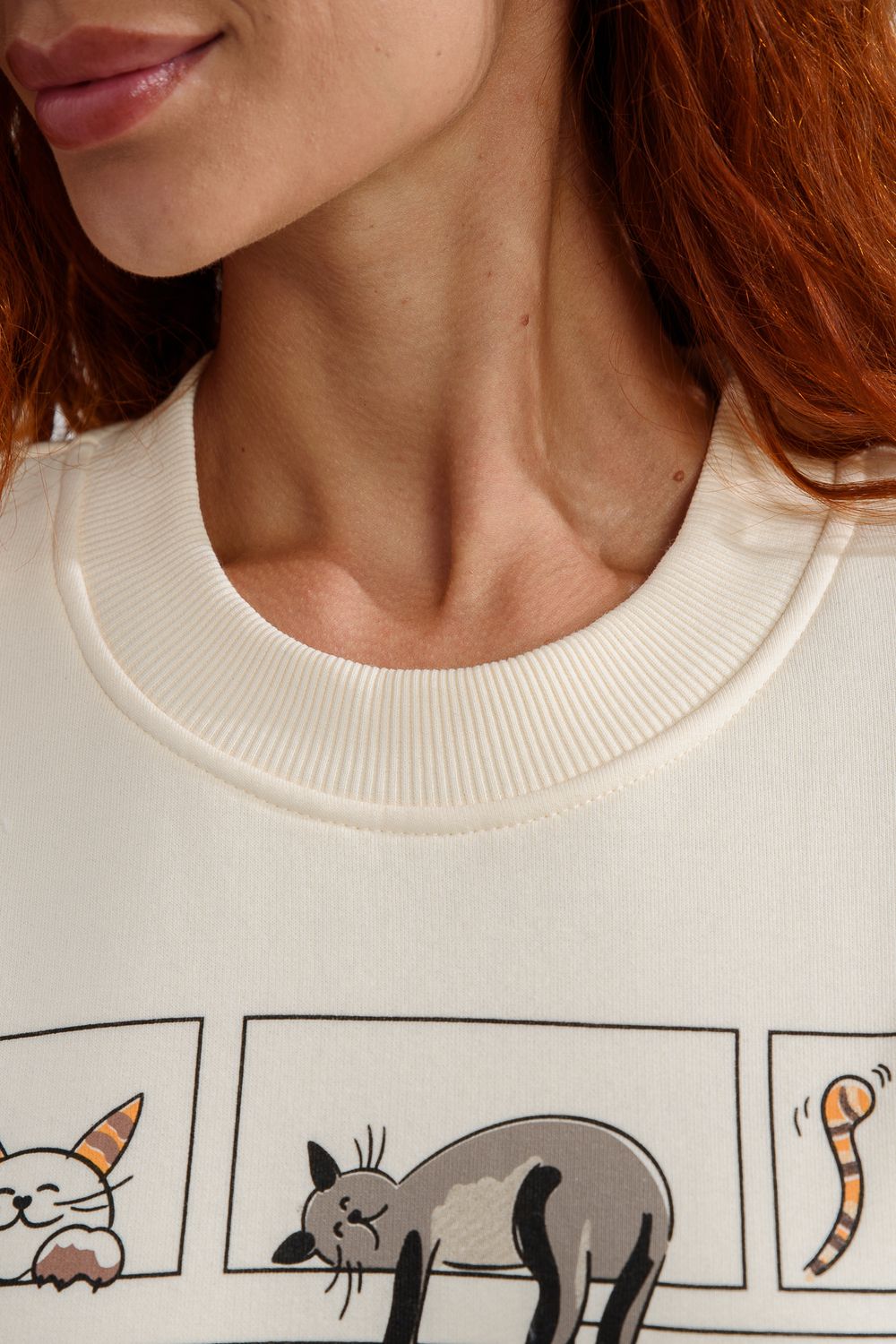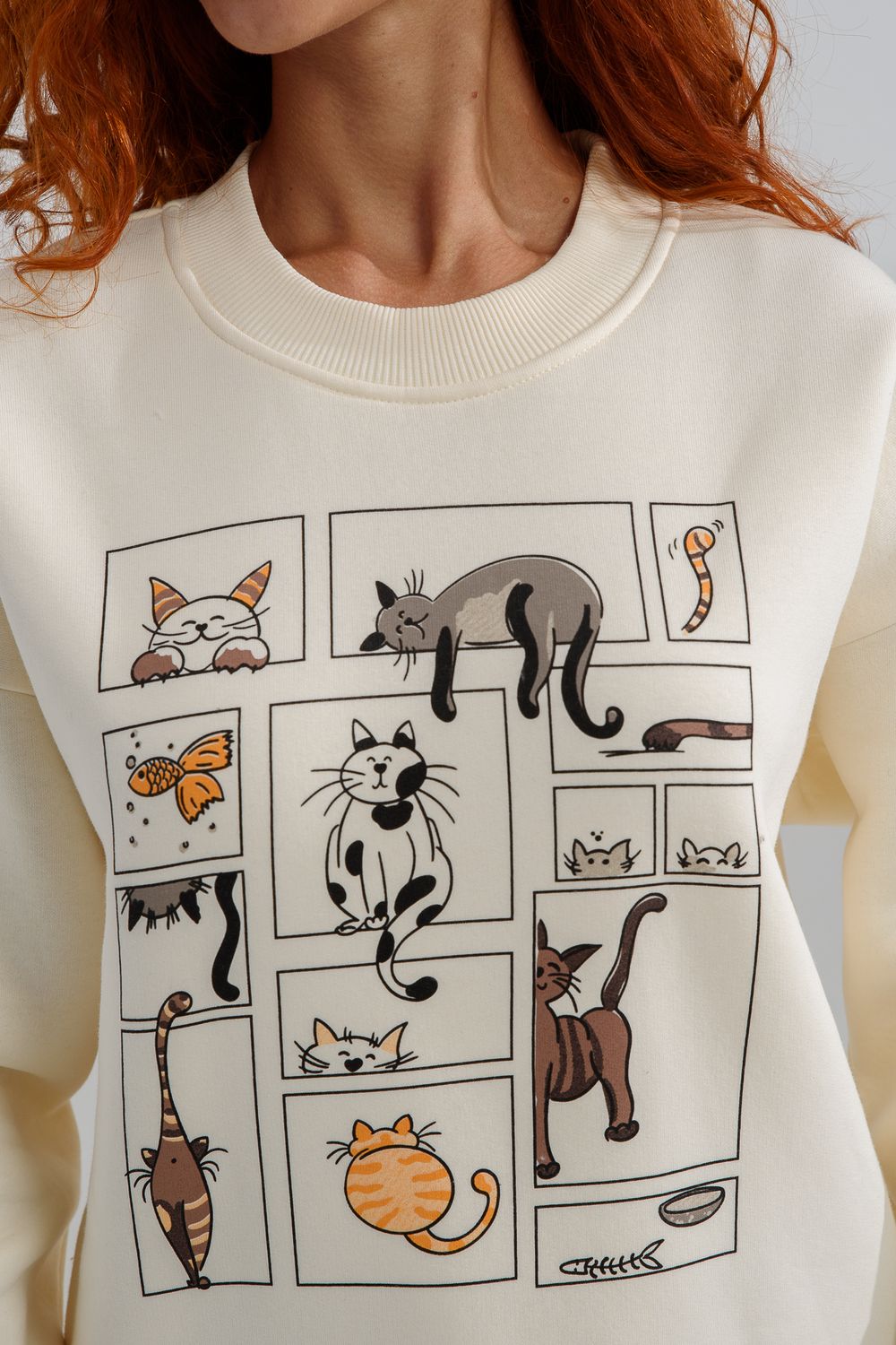 8569 женский свитшот оверсайз - молочный+коты