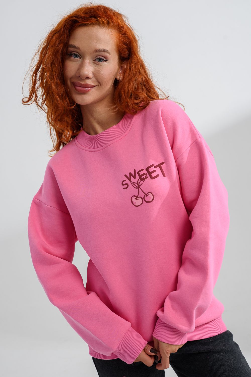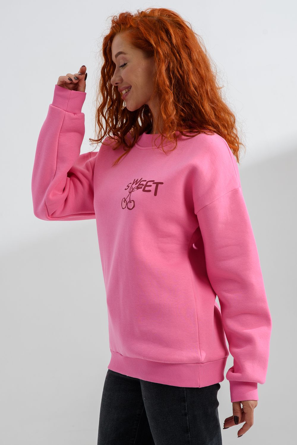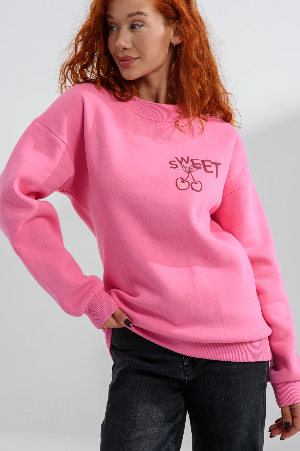 8572 женский свитшот оверсайз - розовый+сладко
