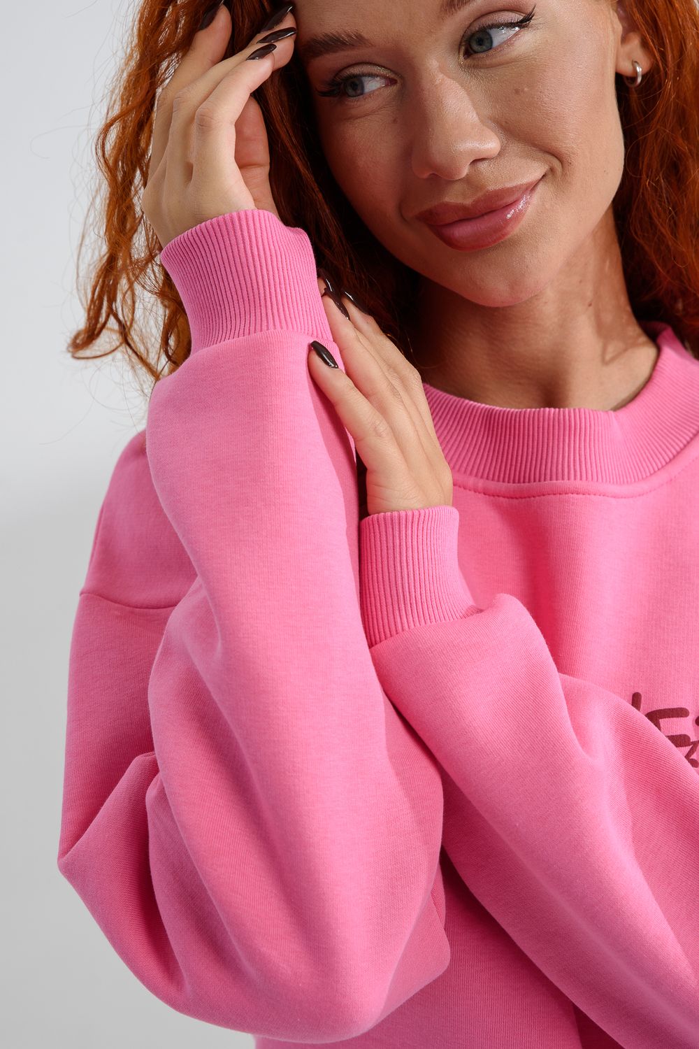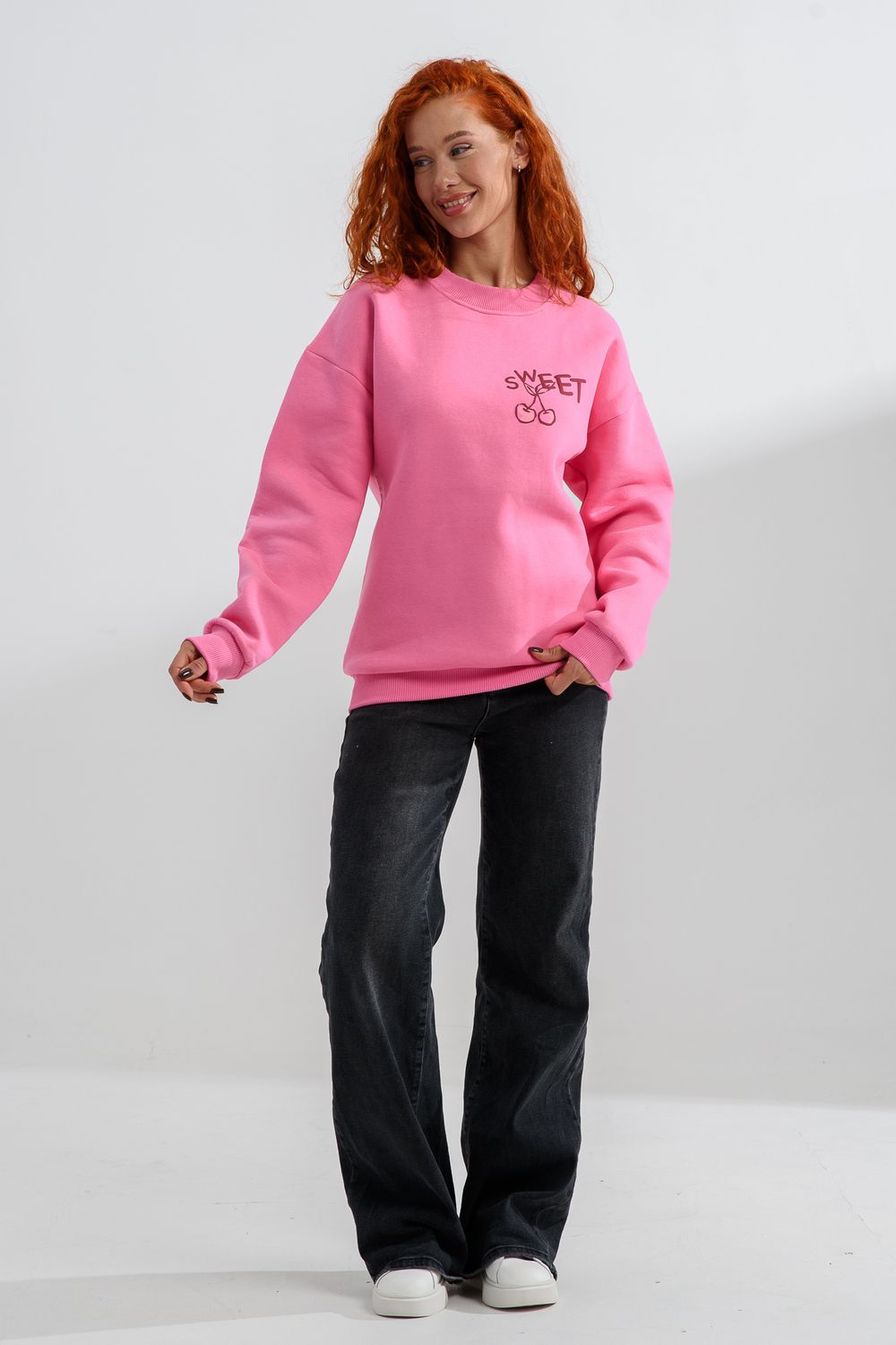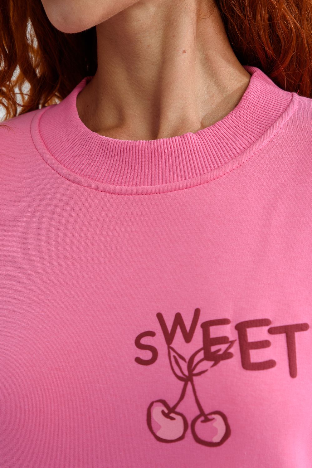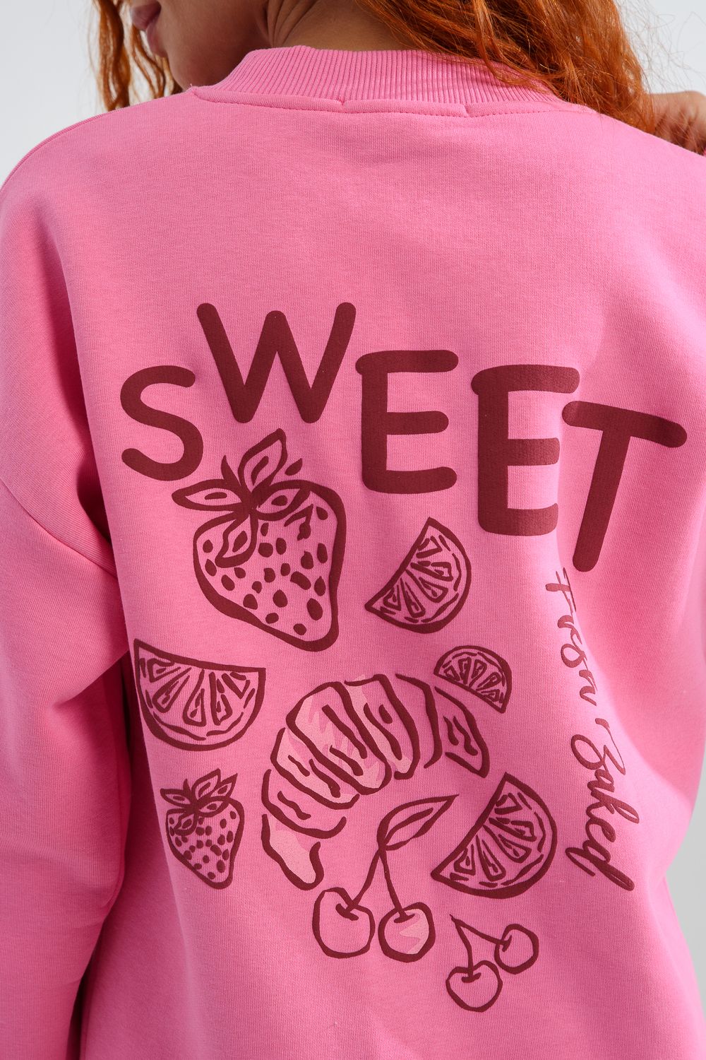 8572 женский свитшот оверсайз - розовый+сладко
