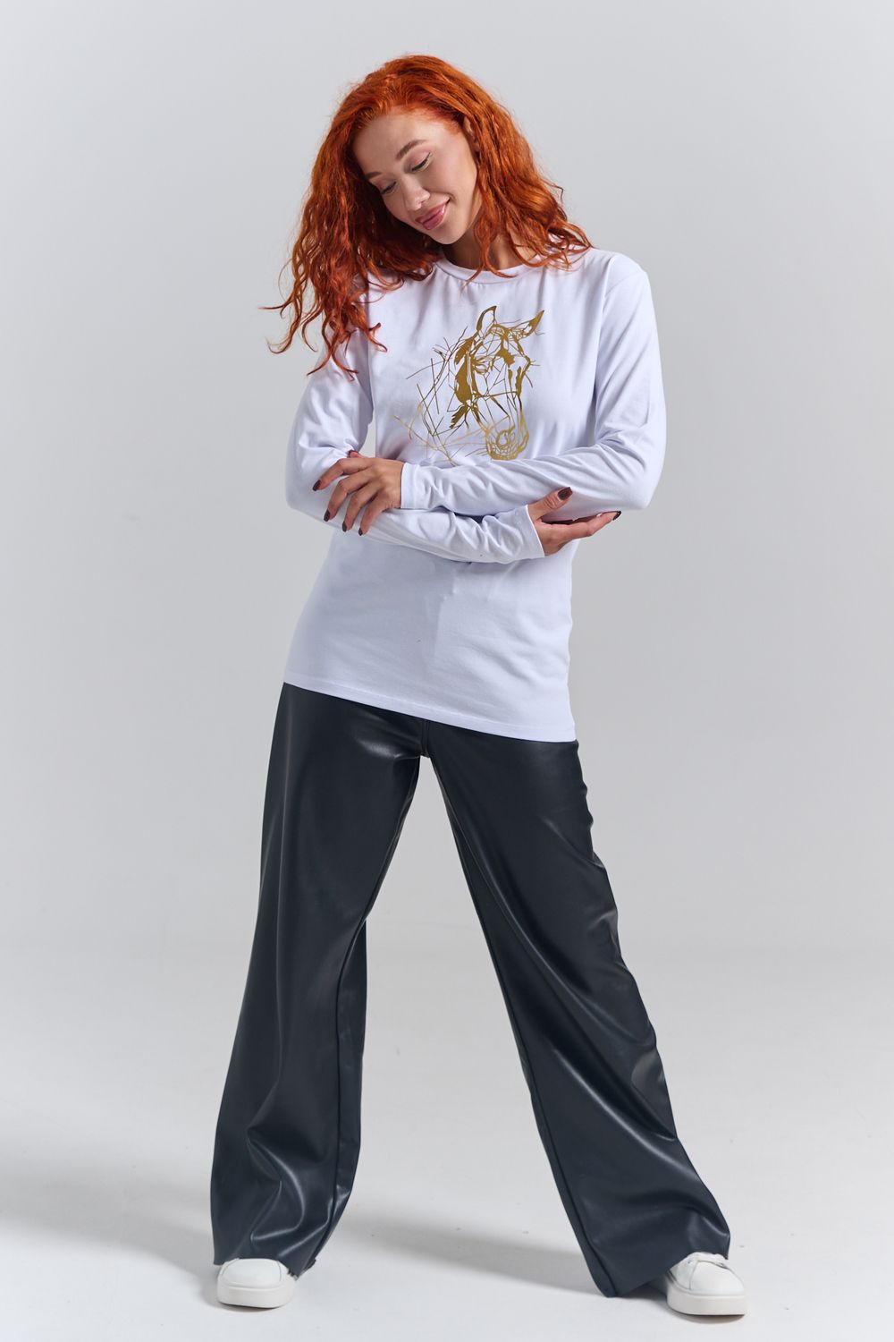 8574 футболка с дл.рукавом унисекс - белый+НГ