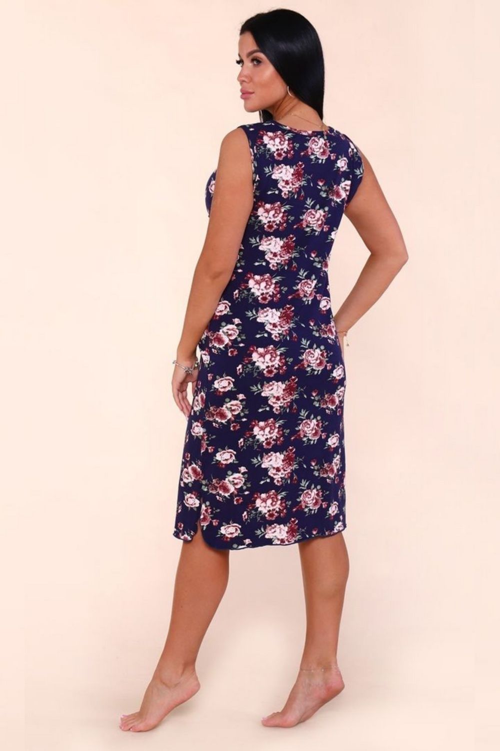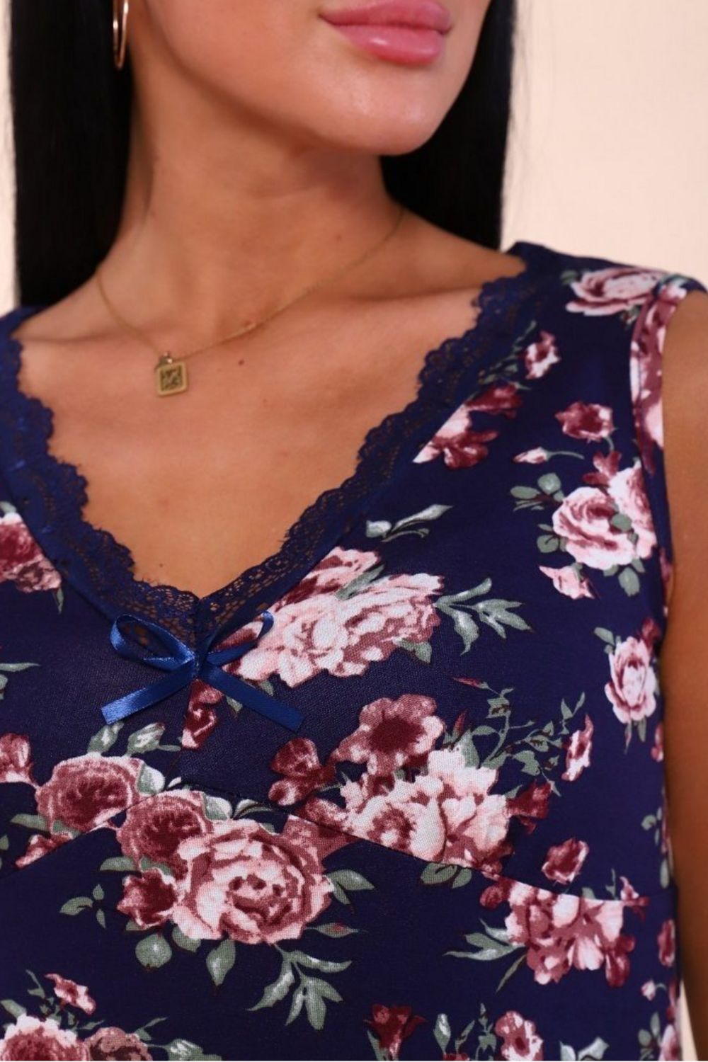 Ночная сорочка с кружевом из вискозы (миди) - маленькая женская радость. Модель выполнена из вискозы (95%) с добавлением эластана (5%). Имеет V-образный вырез, свободный покрой и кружевные декоративные элементы. Длина сорочки — миди. Доступна в богатом темно-синем цвете и размерах (от 48 до 58).