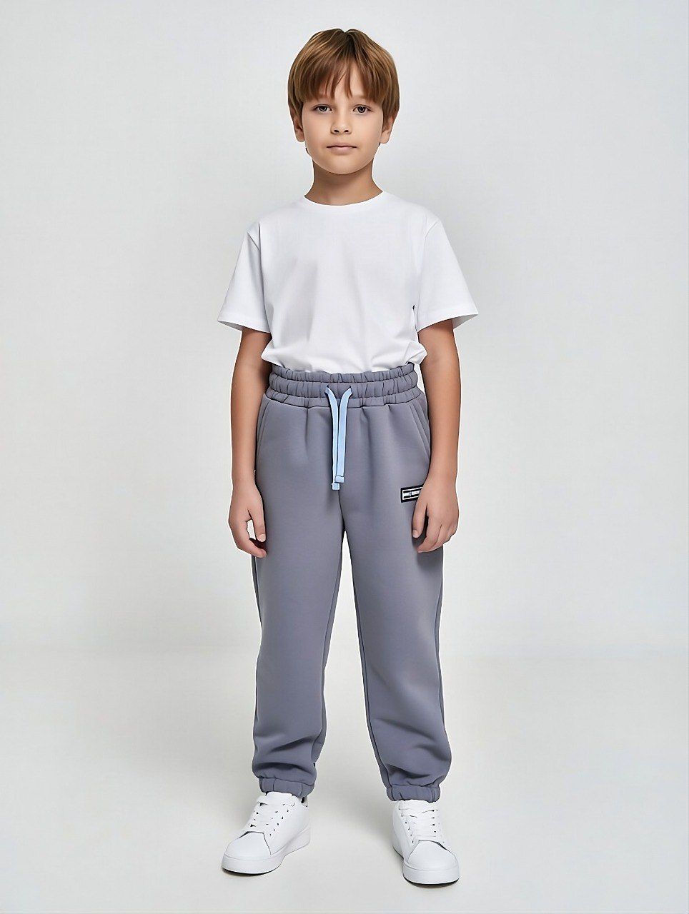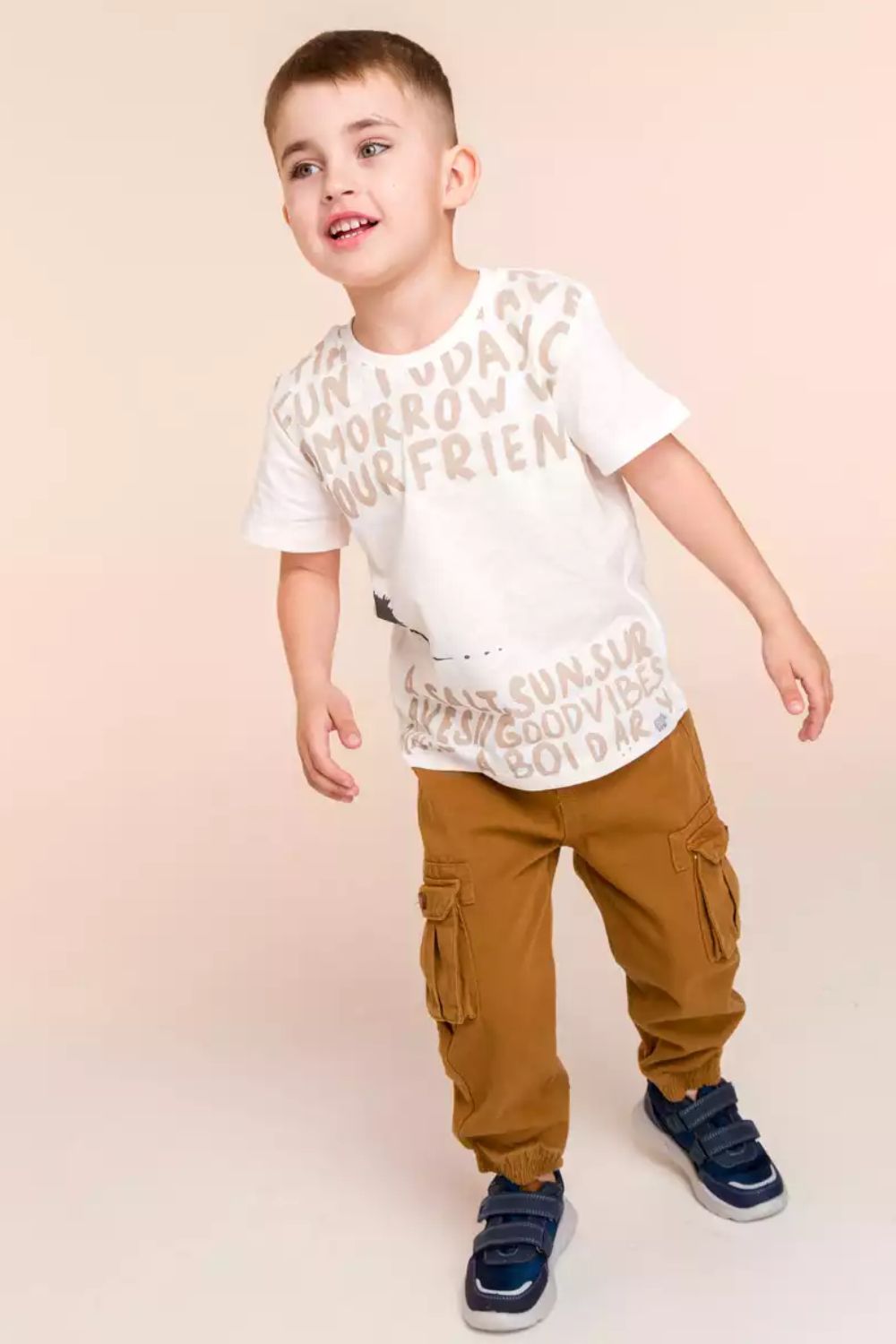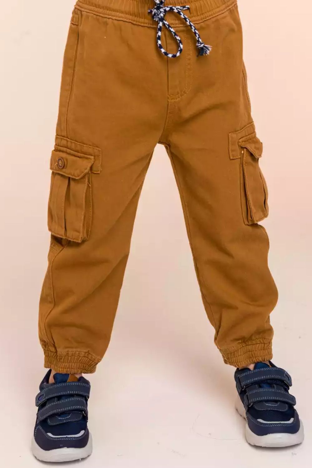 Модные брюки для вашего мальчика выполнены из натурального 100% хлопка. Модель дополнена карманами.По низу брючин расположены манжеты.В поясе вставлена эластичная резинка и контрастный регулировочный шнурок.