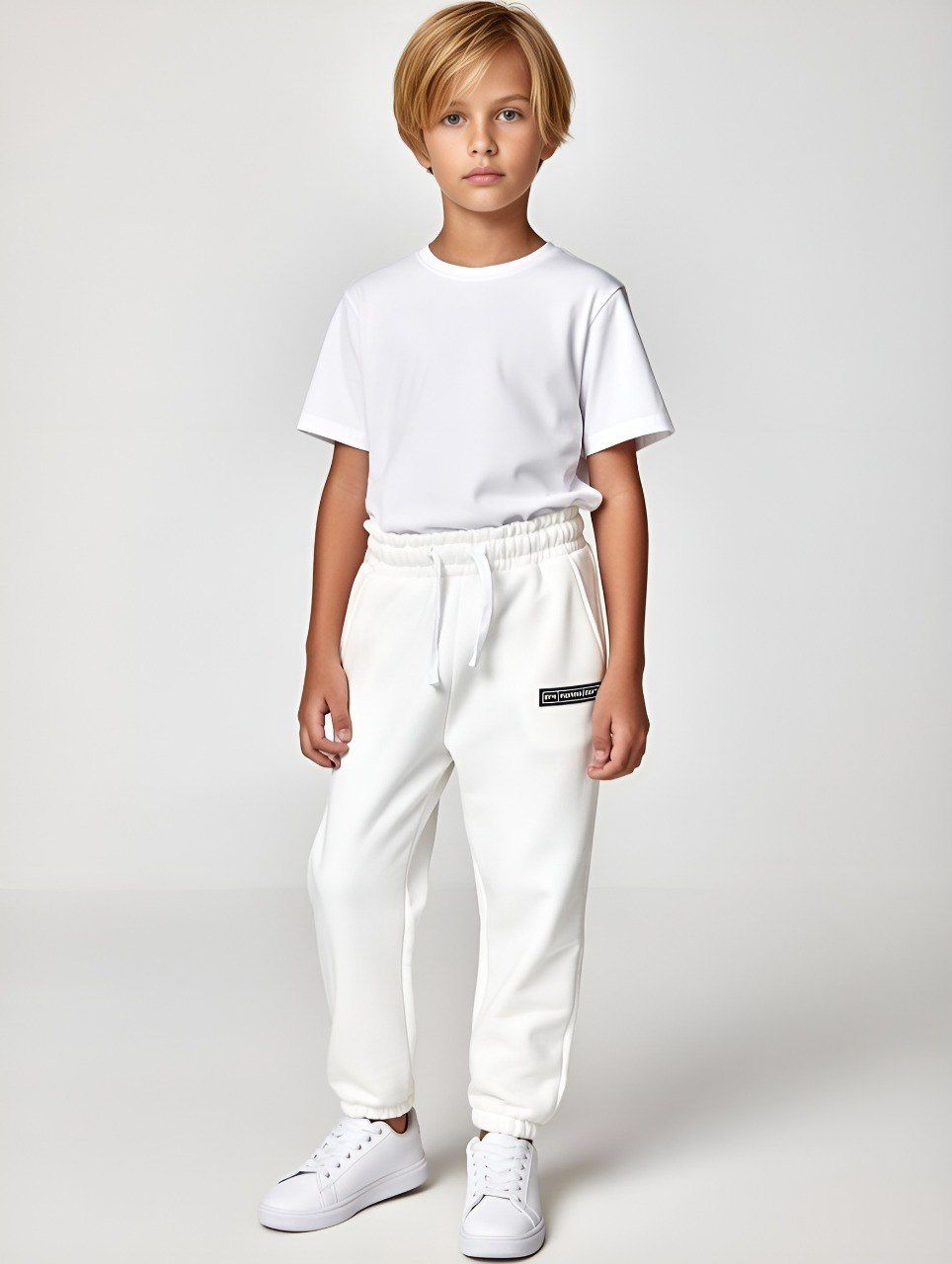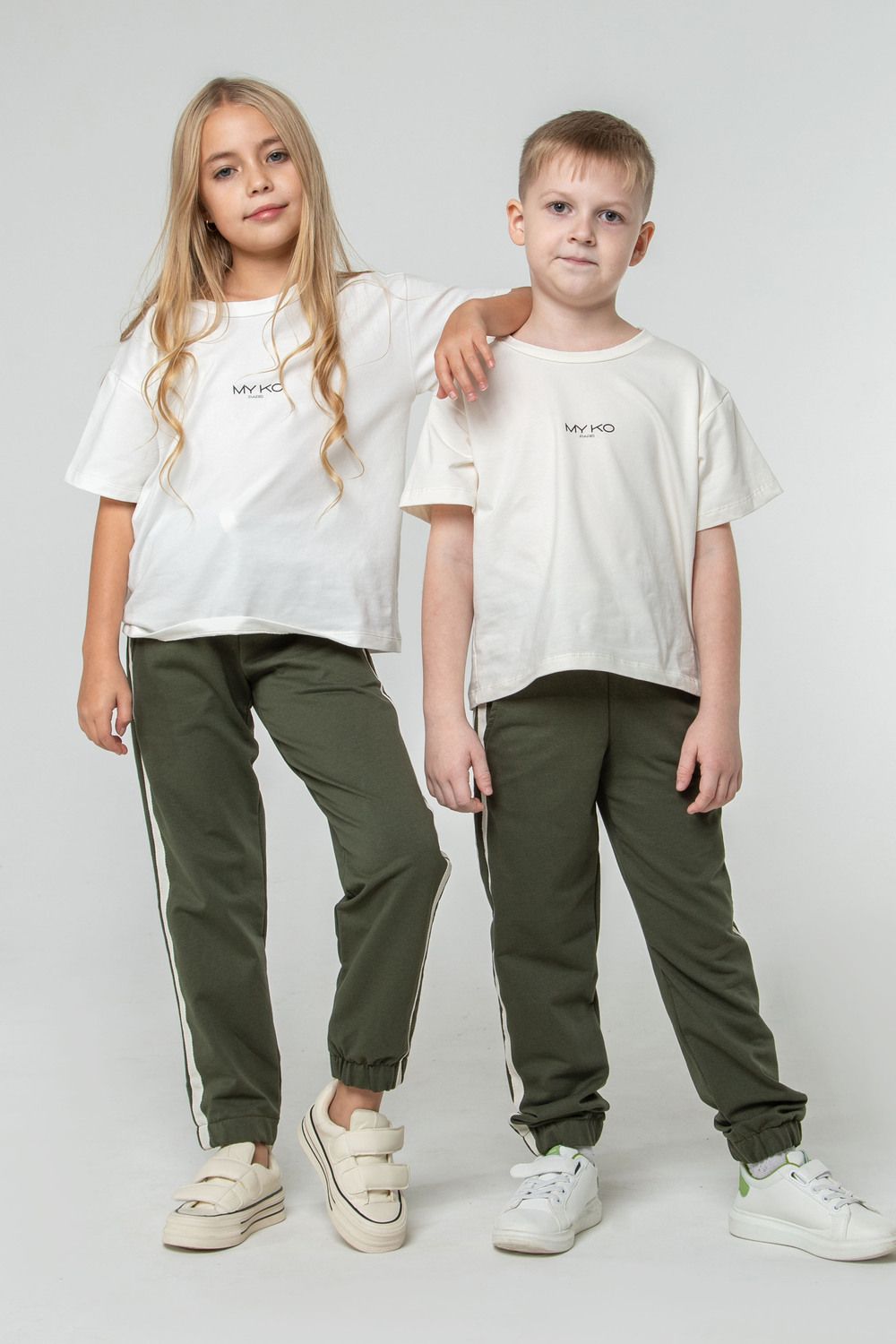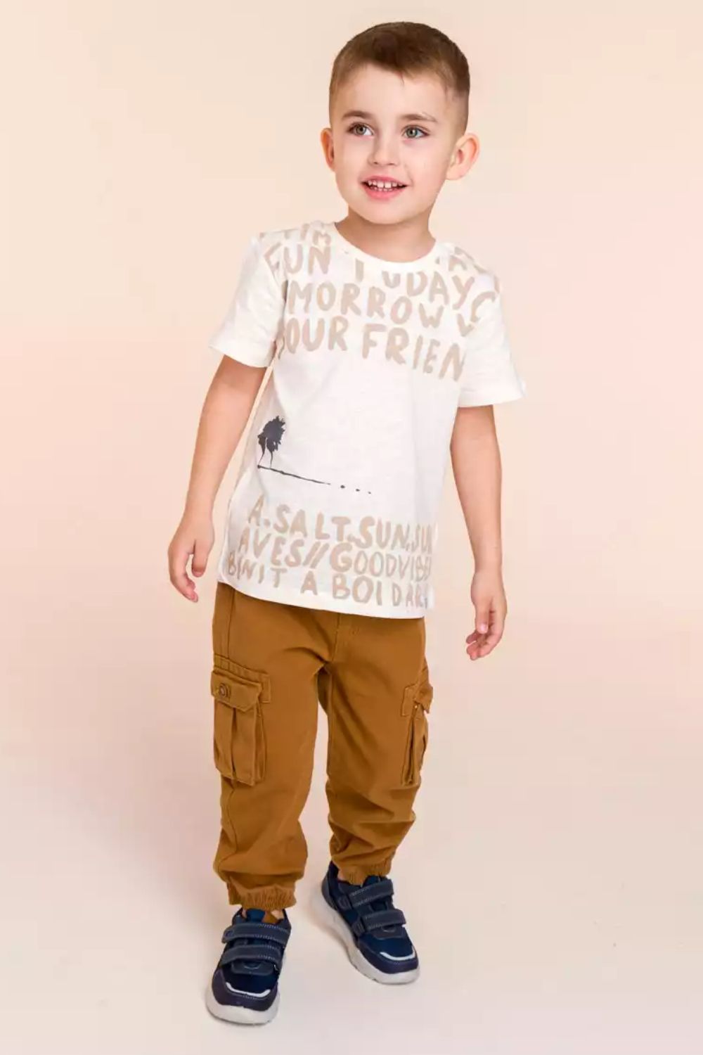 Модные брюки для вашего мальчика выполнены из натурального 100% хлопка. Модель дополнена карманами.По низу брючин расположены манжеты.В поясе вставлена эластичная резинка и контрастный регулировочный шнурок.
