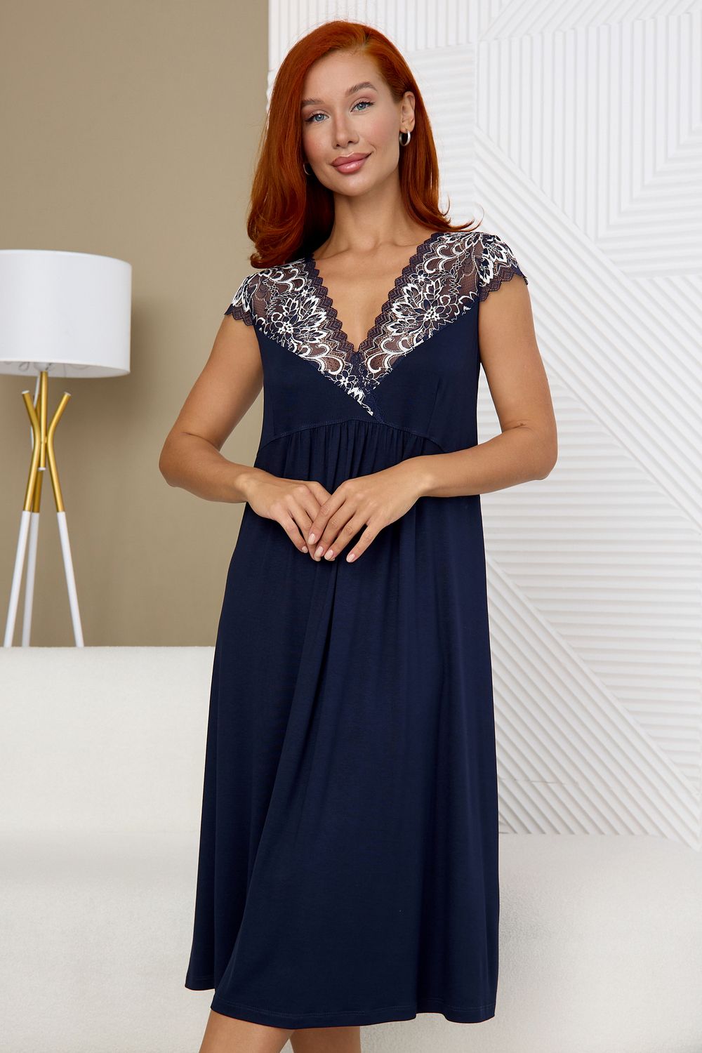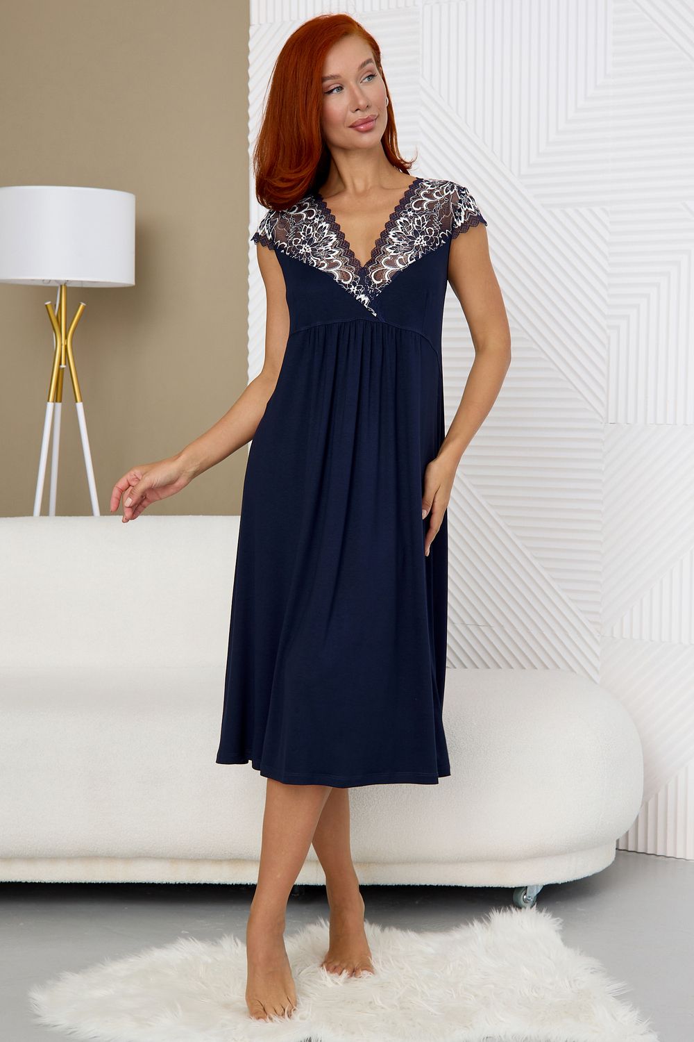 Ночная сорочка женская длинная из вискозного полотна. Ночнушка А-силуэта полуприталенного кроя. Эффектная и стильная рубашка для сна и отдыха – отличный наряд для дома. Рукав крылышком и глубокий вырез горловины сделаны из эластичного кружева. Кружевной вырез подчеркивает зону декольте. Состав ткани 92 % вискоза и 8 % эластан. Ночнушку удобно надеть и для сна и использовать как домашнее платье. Натуральная шелковистая ткань позволяет коже дышать, превращает сорочку в комфортную одежду для дома. Эластичное и эффектное кружево добавляет сексуальности и женственности. Она понравится тем, кто ищет удобную и красивую ночную одежду. Данная модель подходит для девушек и женщин всех возрастов, благодаря крою подойдет для беременных и кормящих мам.