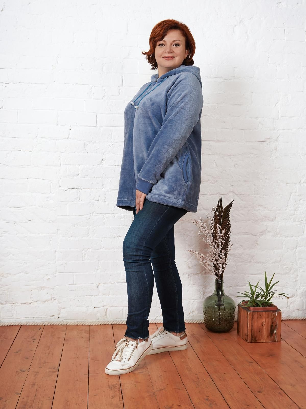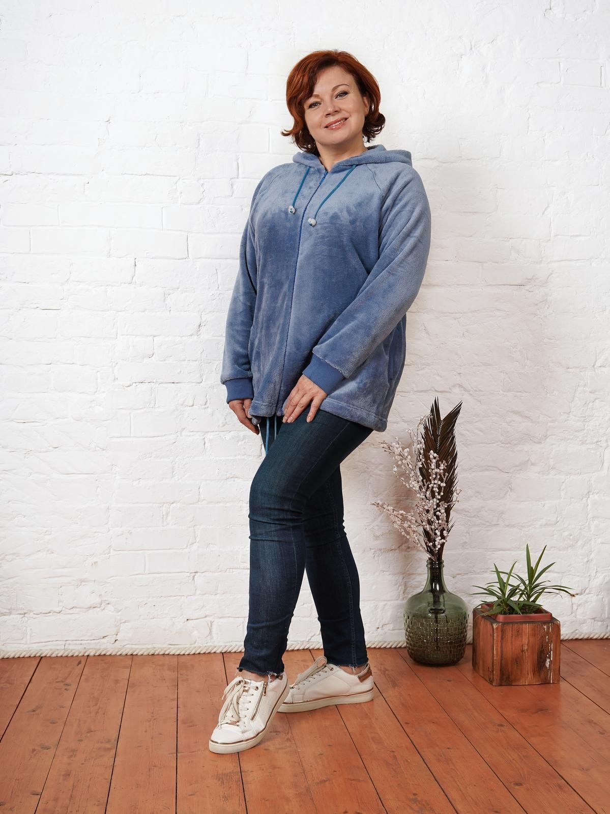 Практичная и качественная толстовка из велсофта. Застежка - молния, есть два боковых кармана, сзади вместительный капюшон. Удобна в повседневной носке. Свободная, легкая и не сковывает движения.