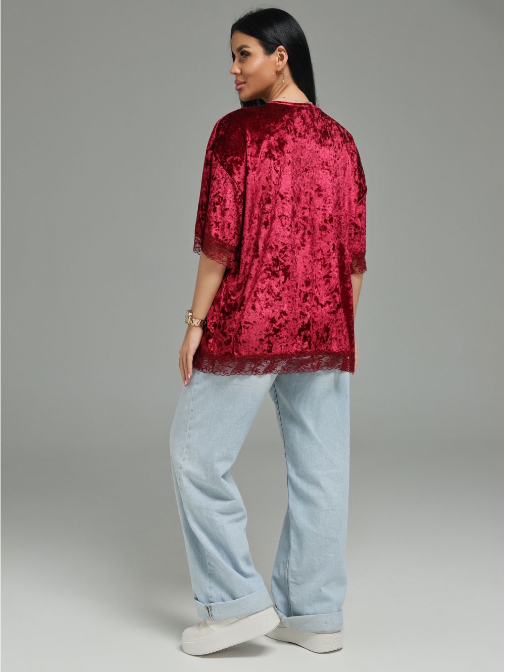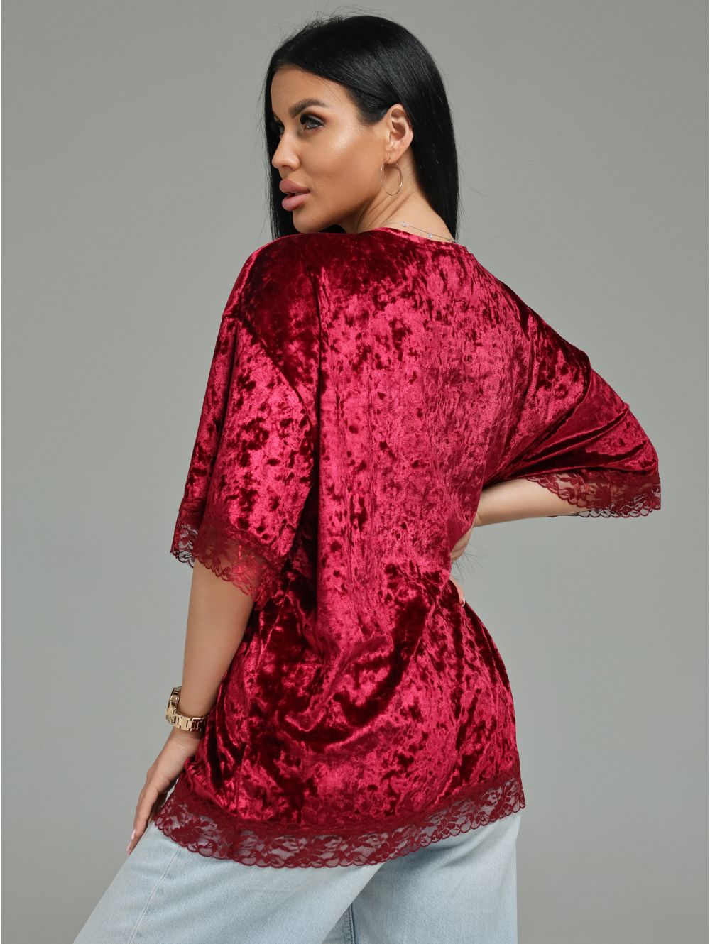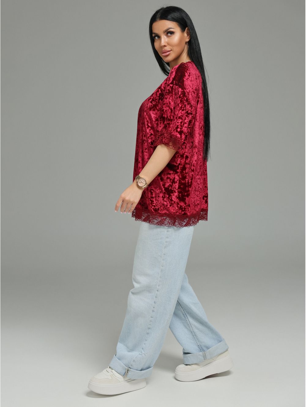 Женская футболка оверсайз из бархата с кружевной отделкой.
