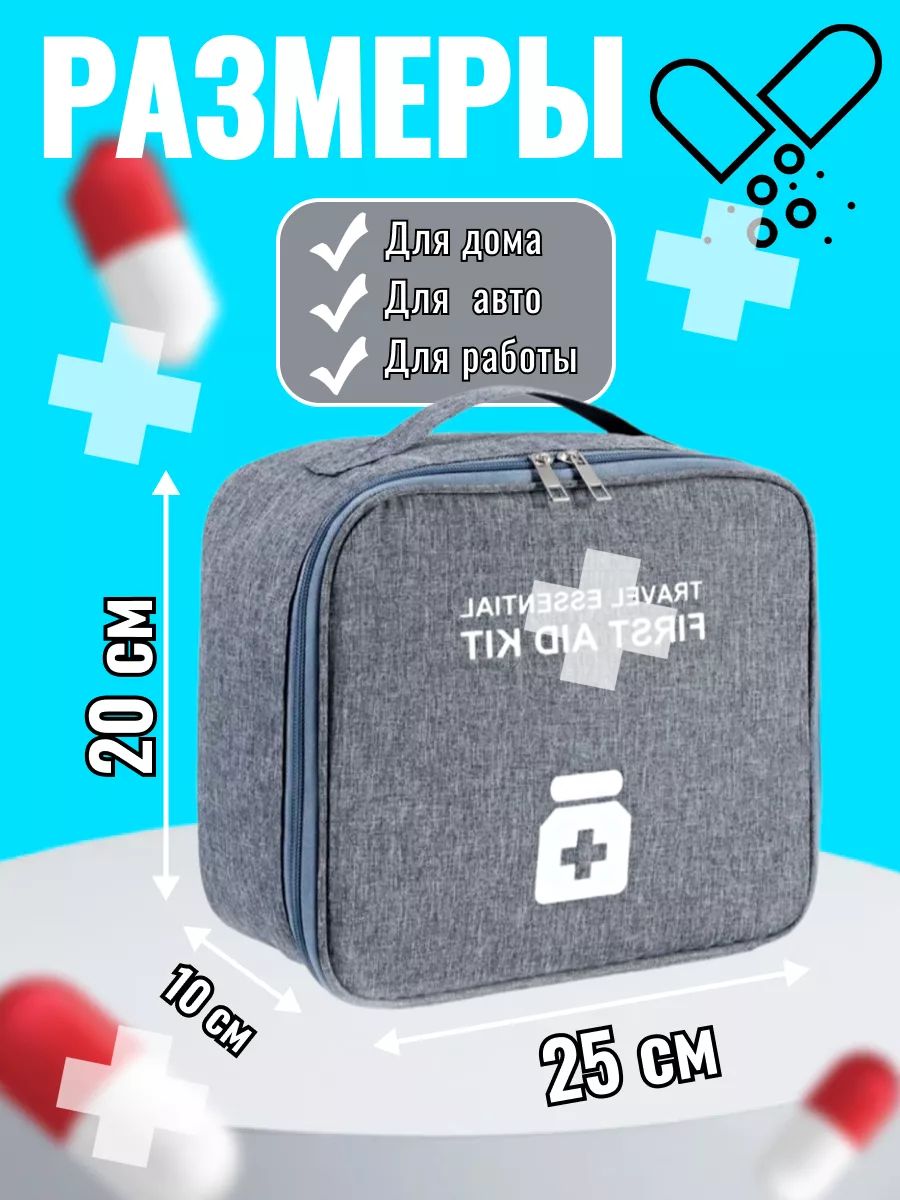 Аптечка домашняя для хранения лекарств это неотъемлемый аксессуар, который должен присутствовать в каждом доме, автомобиле и во время путешествий. Органайзер из водонепроницаемой ткани. Размер 25*22*11см. Контейнер, специально разработан для медицинских изделий. Благодаря своей функциональности, компактности, аптечка для дома станет незаменимой помощницей в любых ситуациях. Благодаря органайзеру, препараты всегда будет легко найти нужное. Аптечка дорожная предназначена так же для путешествий. Внутри удобные отделения, одно большое отделение и пять небольших отсеков. Аптечка автомобильная особенно важный аксессуар, который должен находиться в каждом автомобиле. Авто аптечка способствует сохранению вашего здоровья и безопасности во время дальних, ближних поездок. Внутри можно хранить все необходимые лекарства и расходные материал для оказания первой медицинской помощи.