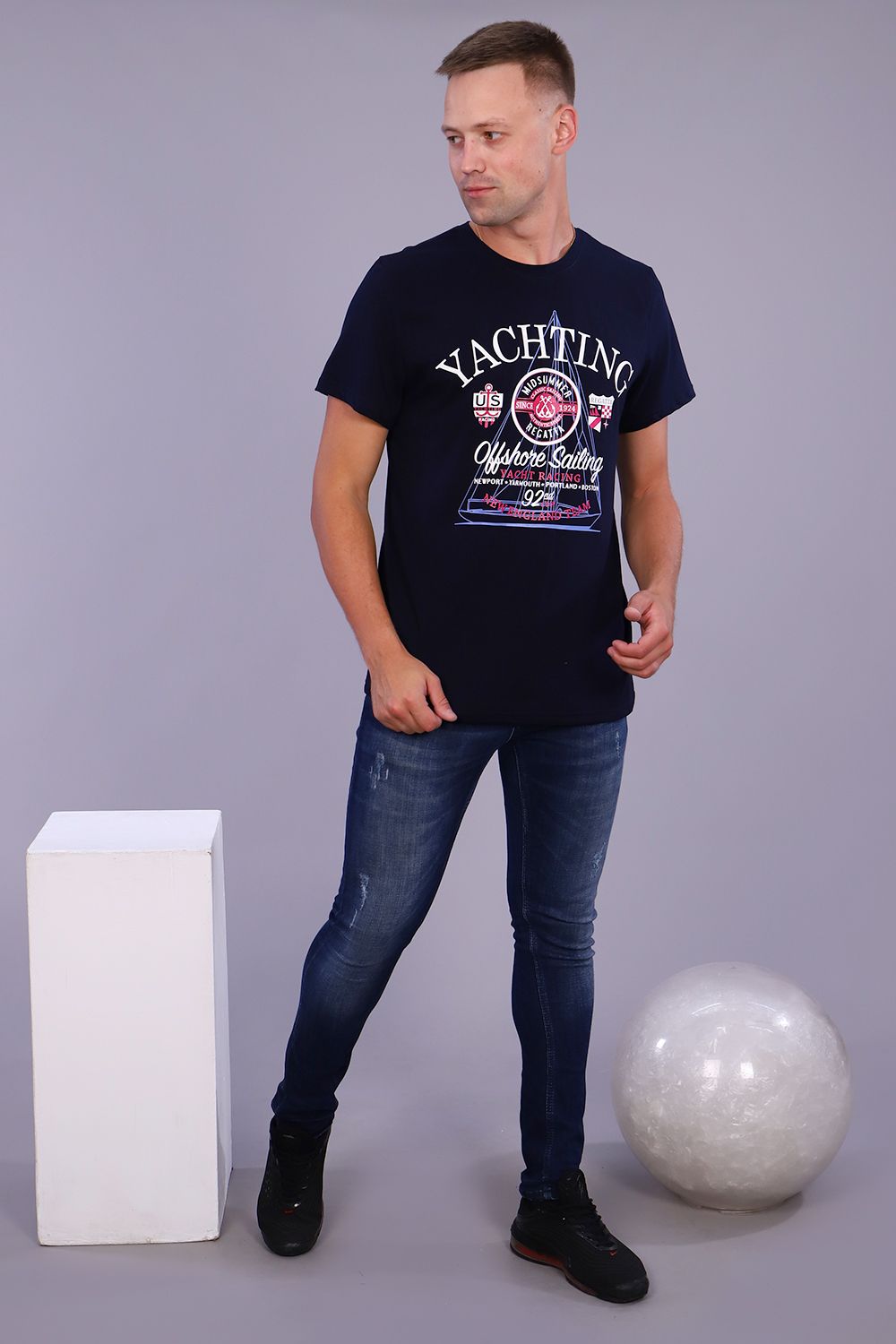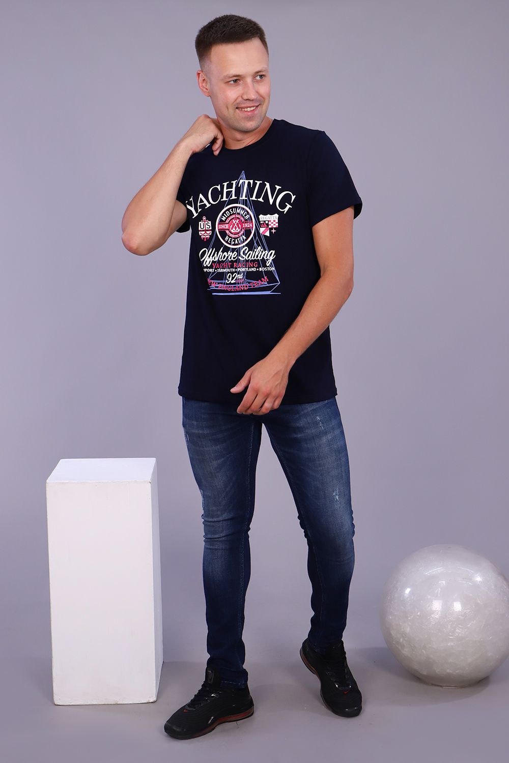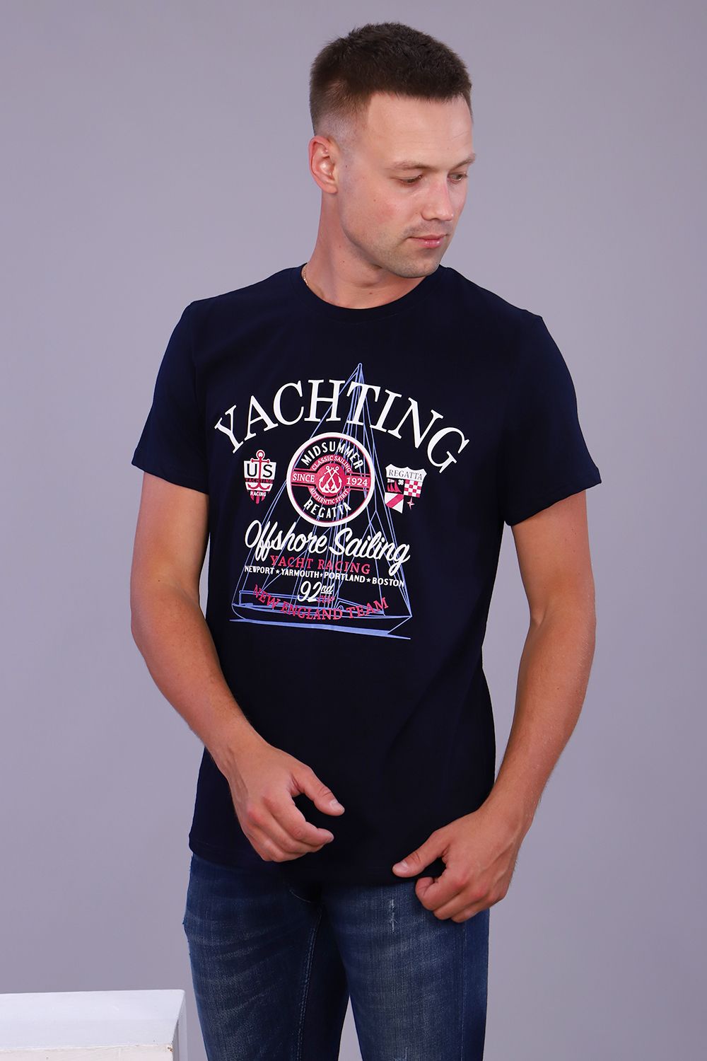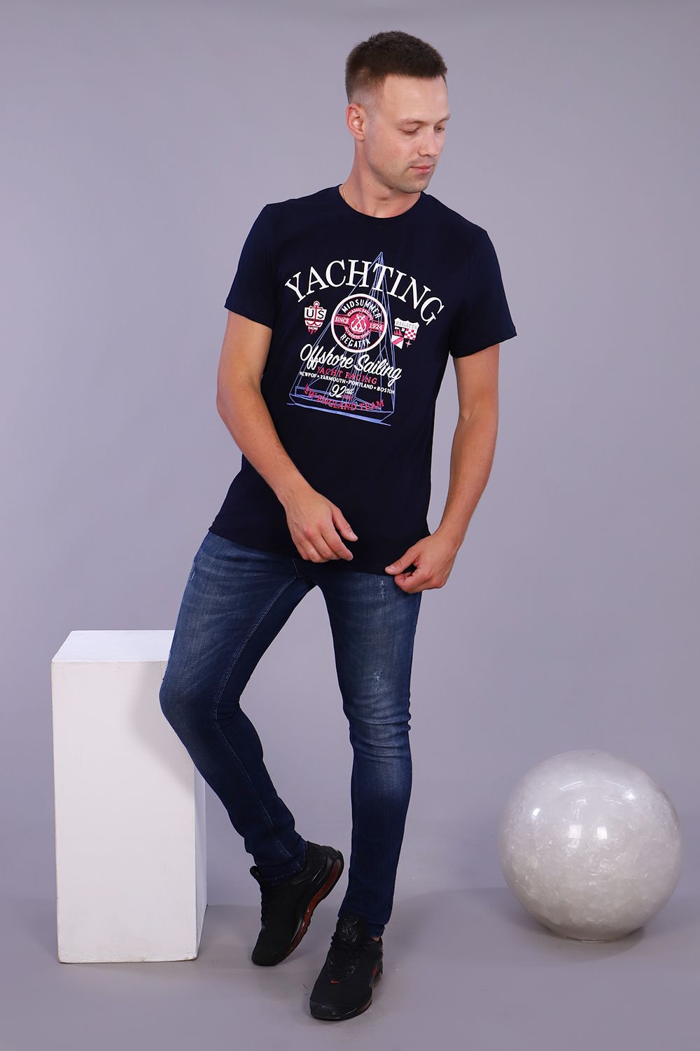 Футболка мужская с коротким рукавом. Данная модель выполнена из трикотажного полотна кулирка (хлопок 100%). На полочке присутствует принт в области груди. Рукава короткие, горловина круглая обработана кантом.