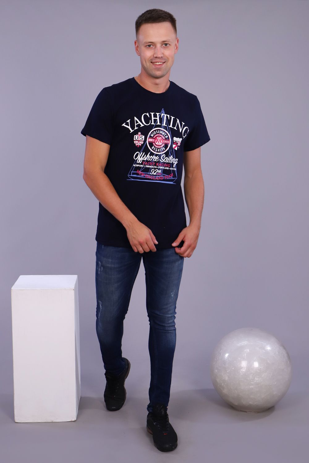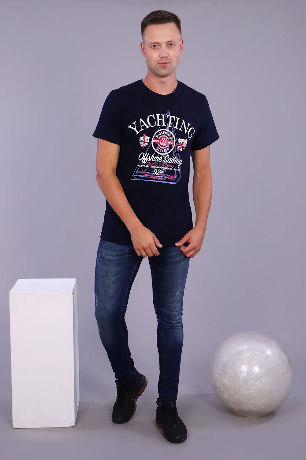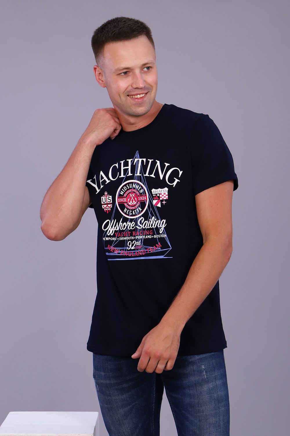 Футболка мужская с коротким рукавом. Данная модель выполнена из трикотажного полотна кулирка (хлопок 100%). На полочке присутствует принт в области груди. Рукава короткие, горловина круглая обработана кантом.