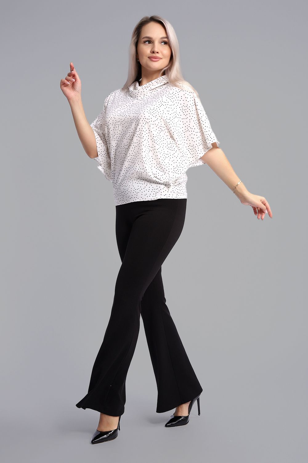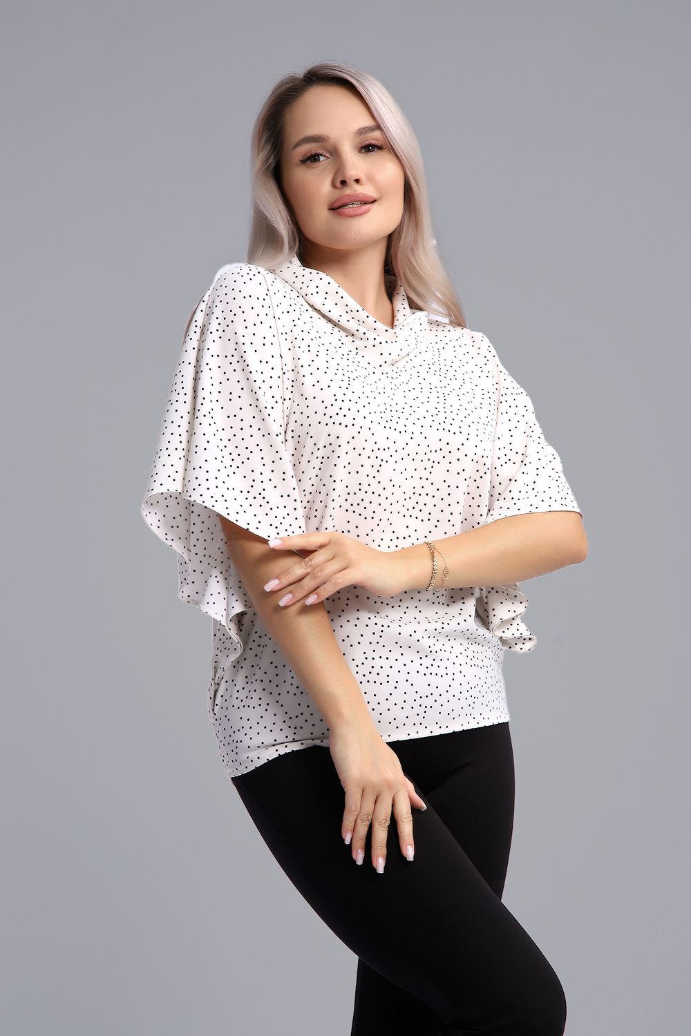 Очаровательная, очень женственная блузка из легкой, струящейся ткани - индо. В составе ткани есть вискоза, поэтому она абсолютно не электризуется и не мнется. Благодаря крою "летучая мышь" блузка будет отлично смотреться на любой фигуре, скроет недостатки и подчеркнет достоинства. Ее можно комбинировать и с юбкой, и с брюками. Воротник "хомут" добавляет образу элегантности. Базовые расцветки изделия легко впишутся в ваш гардероб.