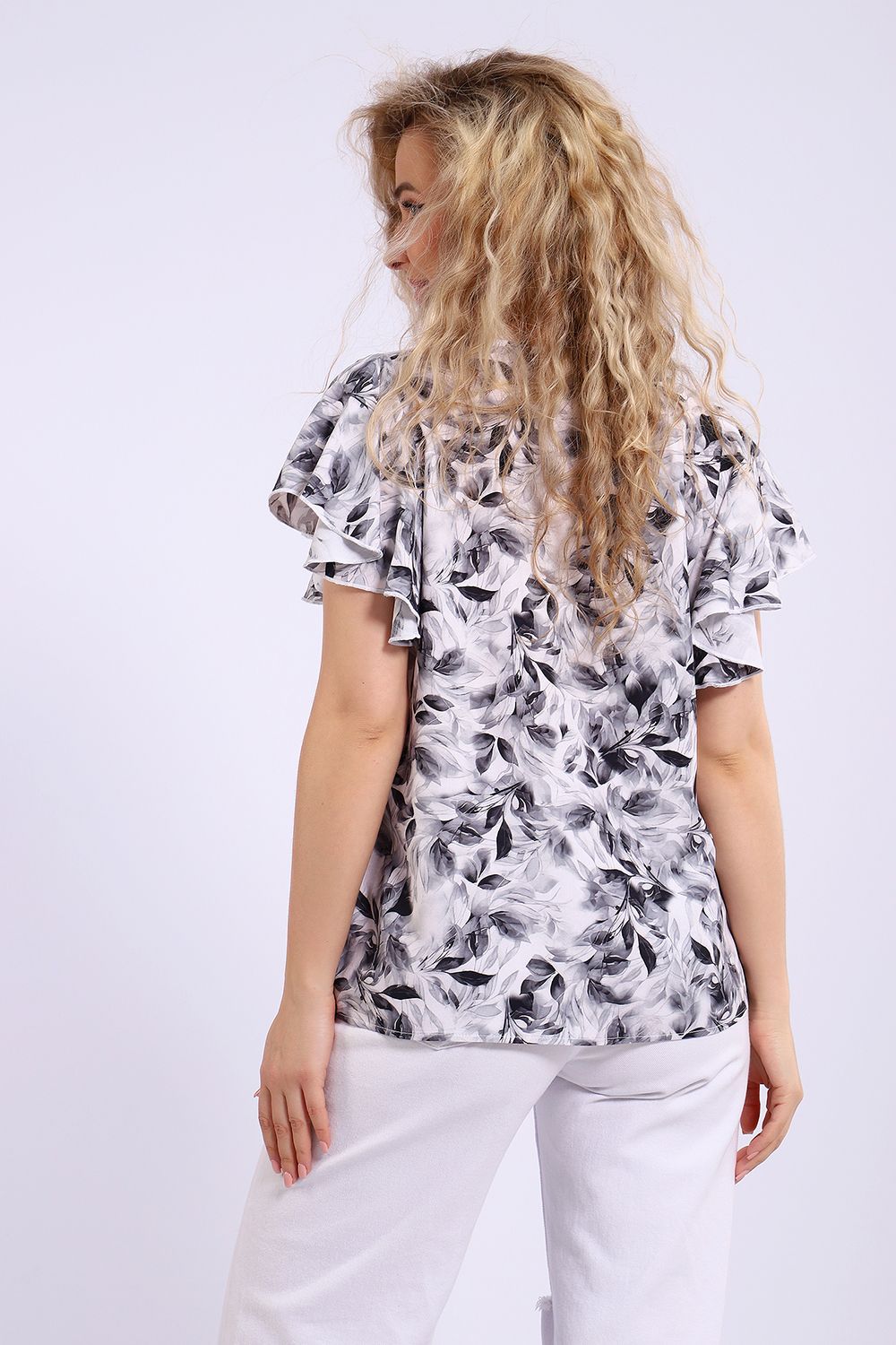 Очаровательная женственная блузка для летнего отдыха и не только. Выполнена из натуральной ткани штапель, что обеспечивает комфорт и удобство при носке. Блузка свободного кроя, слегка расклешенная, подходит на любую фигуру. Штапель отлично драпируется, поэтому объемные рукава-крылышки лежат красивыми складками, придавая блузке нарядный вид. Округлая горловина обработана косой бейкой, рукава - краевой спецмашиной. Длина изделия до линии бедра. Черно-белая гамма расцветок позволит комбинировать блузку с юбкой или брюками разных цветов.