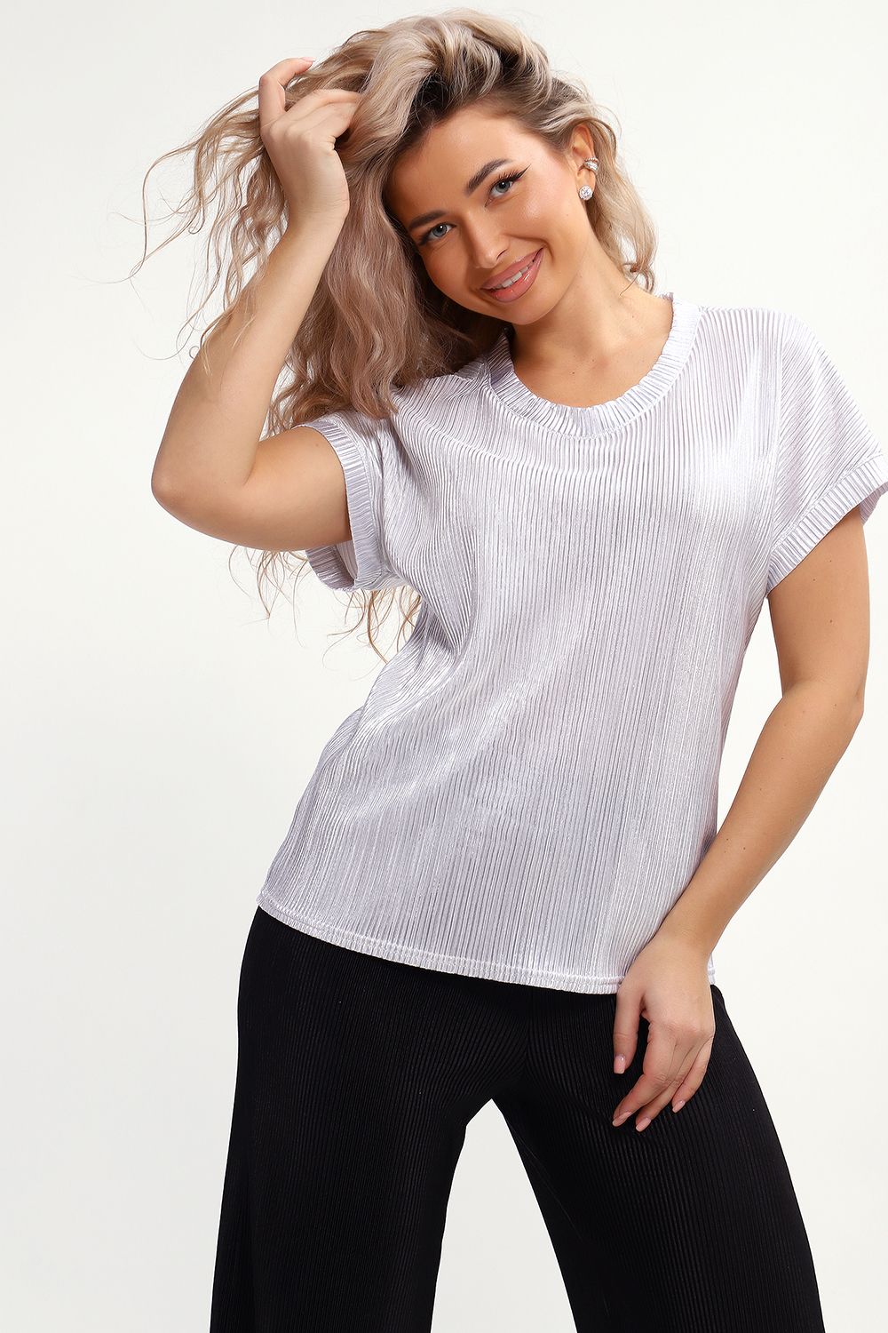 Стильная нарядная блузка, сочетающая в себе комфорт и элегантность. Благодаря свободному крою, блузка создает легкий силуэт и деликатно скрывает особенности фигуры. Добавляет изюминку изделию блестящая ткань с прочным напылением фойл, которое отлично держится на ткани после стирки. Ткань атлас гофре приятна на ощупь, хорошо тянется, не мнется, держит форму. Блузка смотрится и как офисная, и как вечерняя модель, а также это отличный вариант для летнего наряда. Округлая горловина, обработанная обтачкой, подчеркивает женственность образа, спущенный рукав не стесняет движений. Нарядная блузка позволит вам эффектно выглядеть не только на праздничных мероприятиях, но и в будни.
